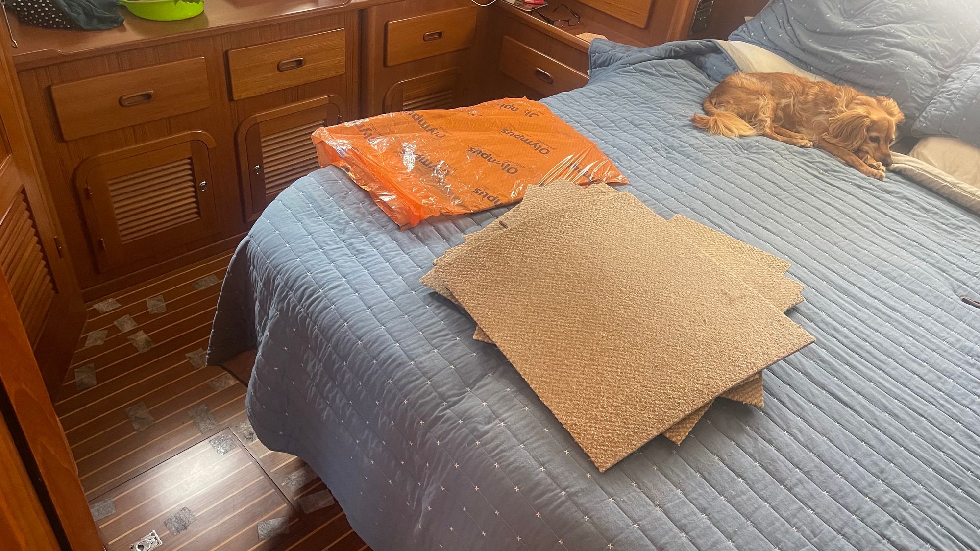 A big chore we completed on Saturday was removing the last of the carpet tiles from the main cabin. They were getting filthy and are hard to keep clean with the dog. Now we're back to the lovely wooden floor similar to the salon in the bedroom. We're going to get a couple of rugs for the floor which will keep it all looking smart while being easy to clean!