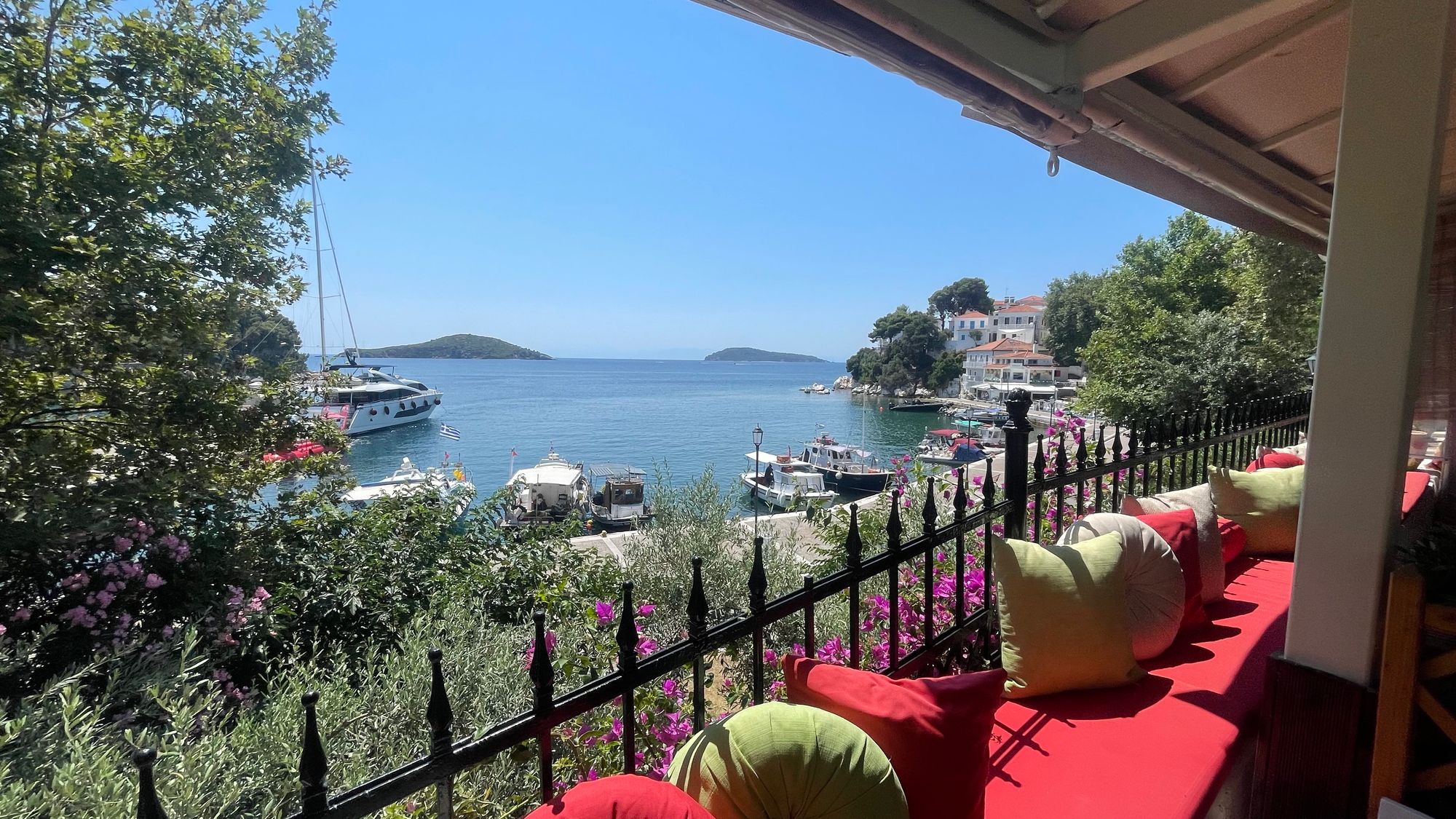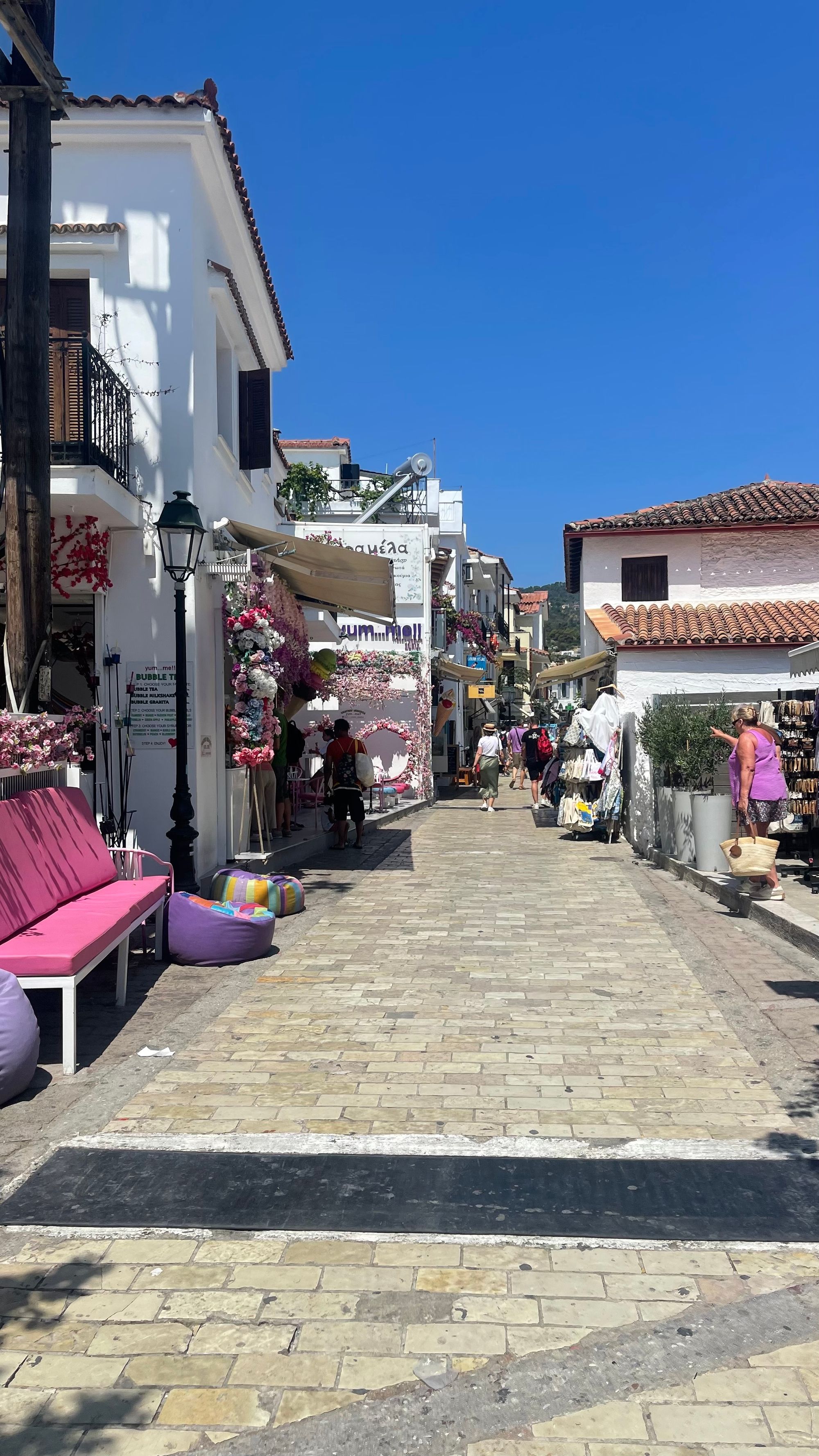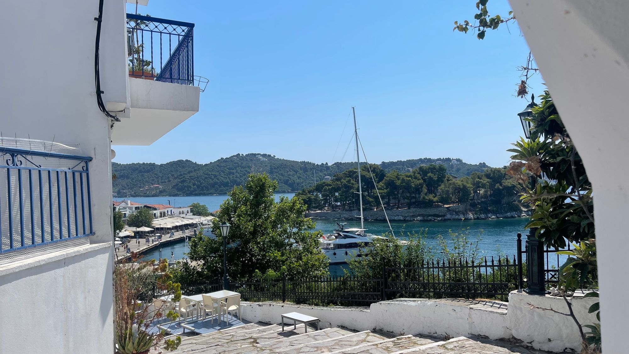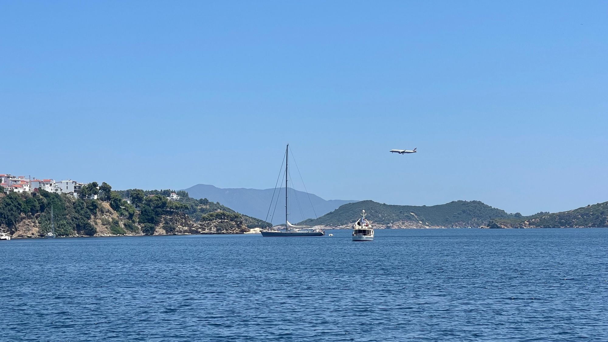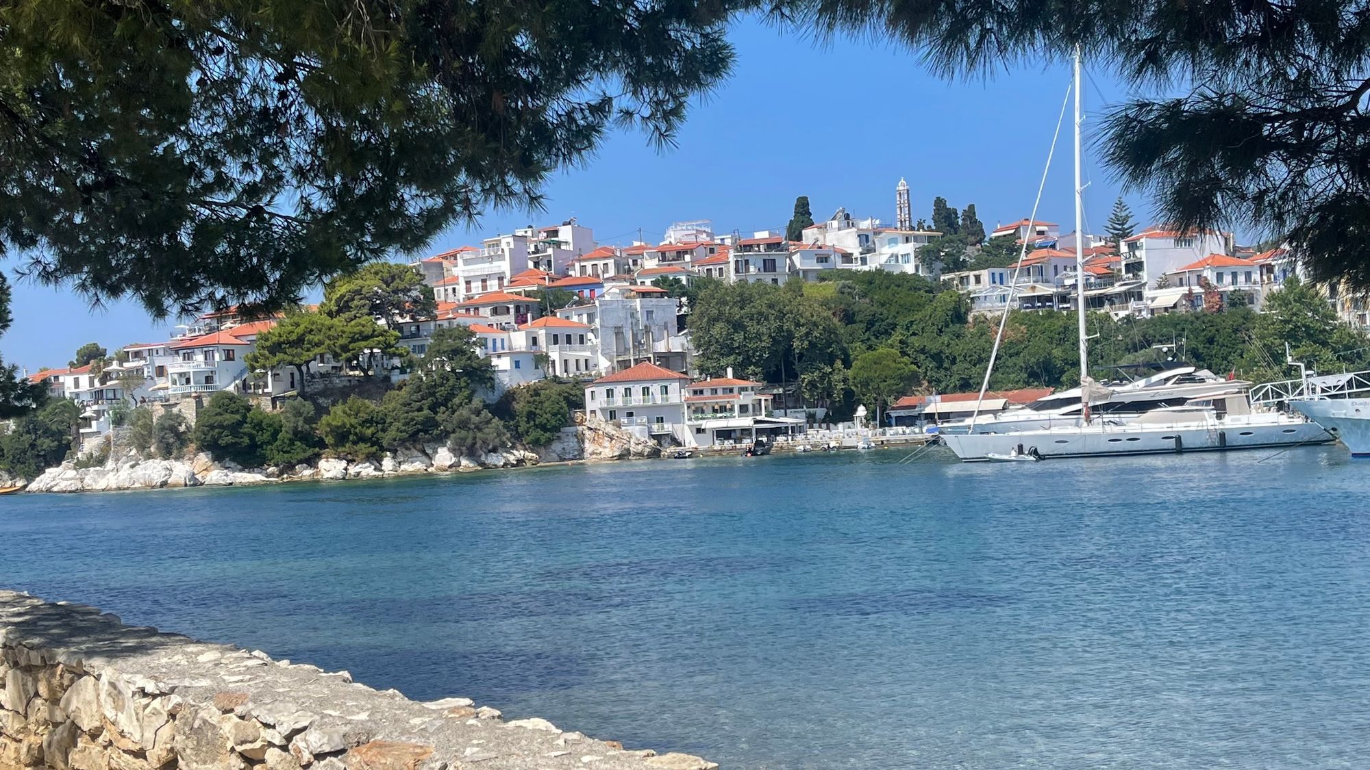 Skiathos is a lovely island. Honestly if you wanted to design the "perfect" holiday island, this one is right up there. Temperature is warm, but cooler than the mainland. No big crazy winds. Cute village with lots of touristy stuff and heaps of cafes. Crystal clear seas. If I had one complaint from a boat perspective it's that the anchorages are scenic but not overly protected - they tend to only have shelter from a few directions.