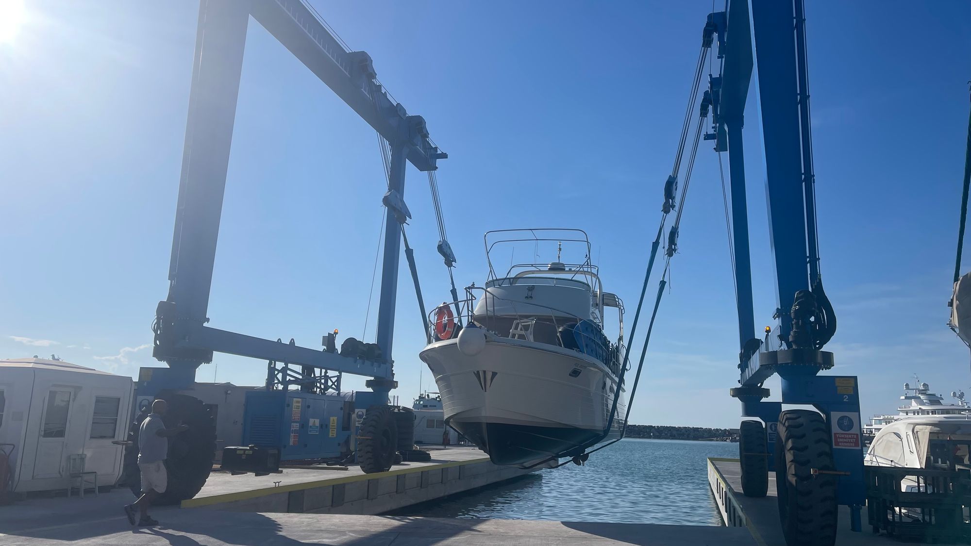 On Monday afternoon, after a quick washdown of both the decks by the painters and the hull by me, Matilda was ready to splash again. We moved out of the apartment, and once we were ready to go, she was quickly back in the water. The original plan was to try and leave on Monday afternoon, but unfortunately, we needed to spend one extra day to complete the work.