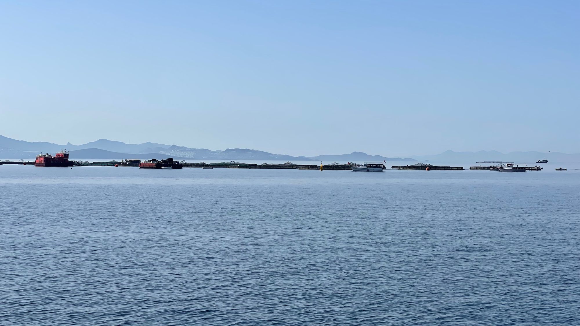 Fish farms galore! And lovely smooth water...