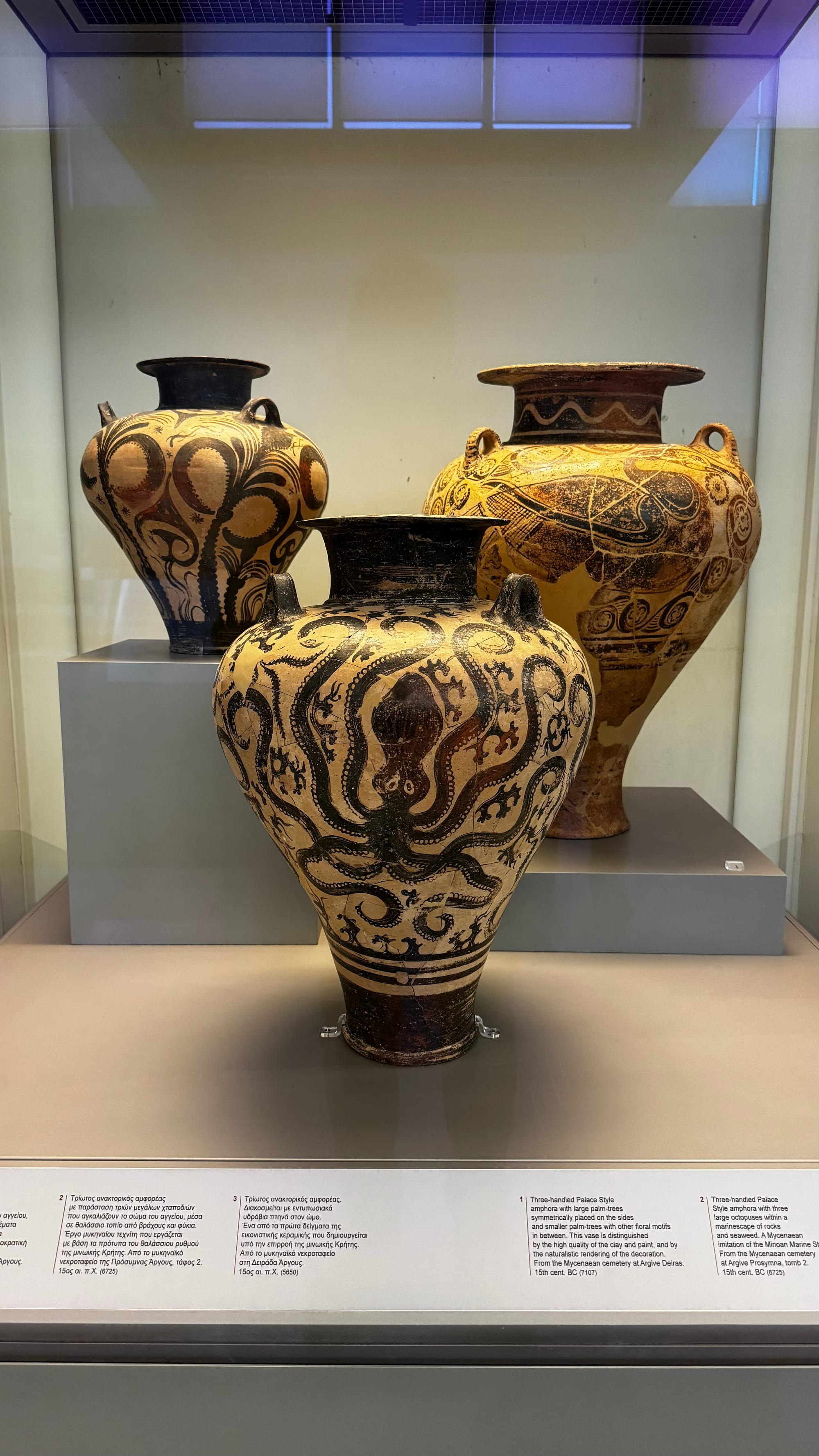 We visited the Benaki Museum which I enjoyed more than I expected. It's one of the lesser visited museums, but if you've spent a bit of time in Greece, it's actually very interesting. It covers Greek civilization and culture chronologically from the earliest neolithic finds right through to the modern ages. It's a large collection, but Benaki focussed on the best examples of each thing which felt special. My personal favourite was the room focussed on Athens and the Acropolis and it was very interesting seeing old drawings from the 17C where you could spot the various landmarks around the city and relate it to what we know now.
