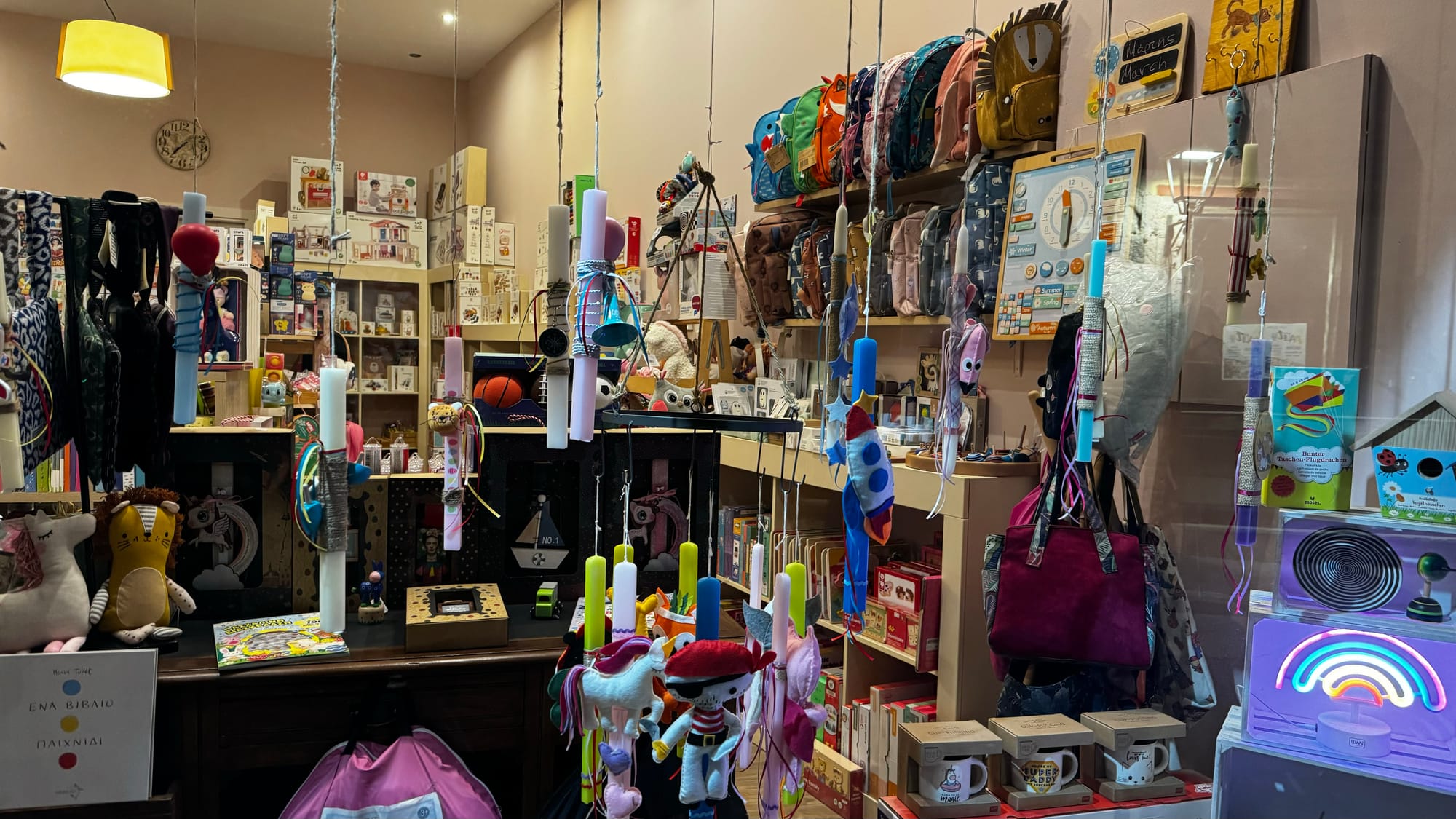 Candles are starting to appear for easter. Gifts are tied to them. Kites flying so high you can't really see them, but the sky is lovely and blue at the moment.