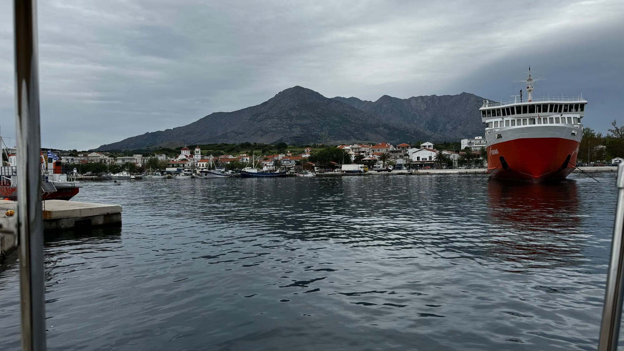 When we left in the morning to cross back to Limnos, this time, unlike the first crossing, where we could see the island the whole way, Samothraki disappeared behind us in the gloom after only a few miles. We travelled in the grey for almost five hours before we saw land again.