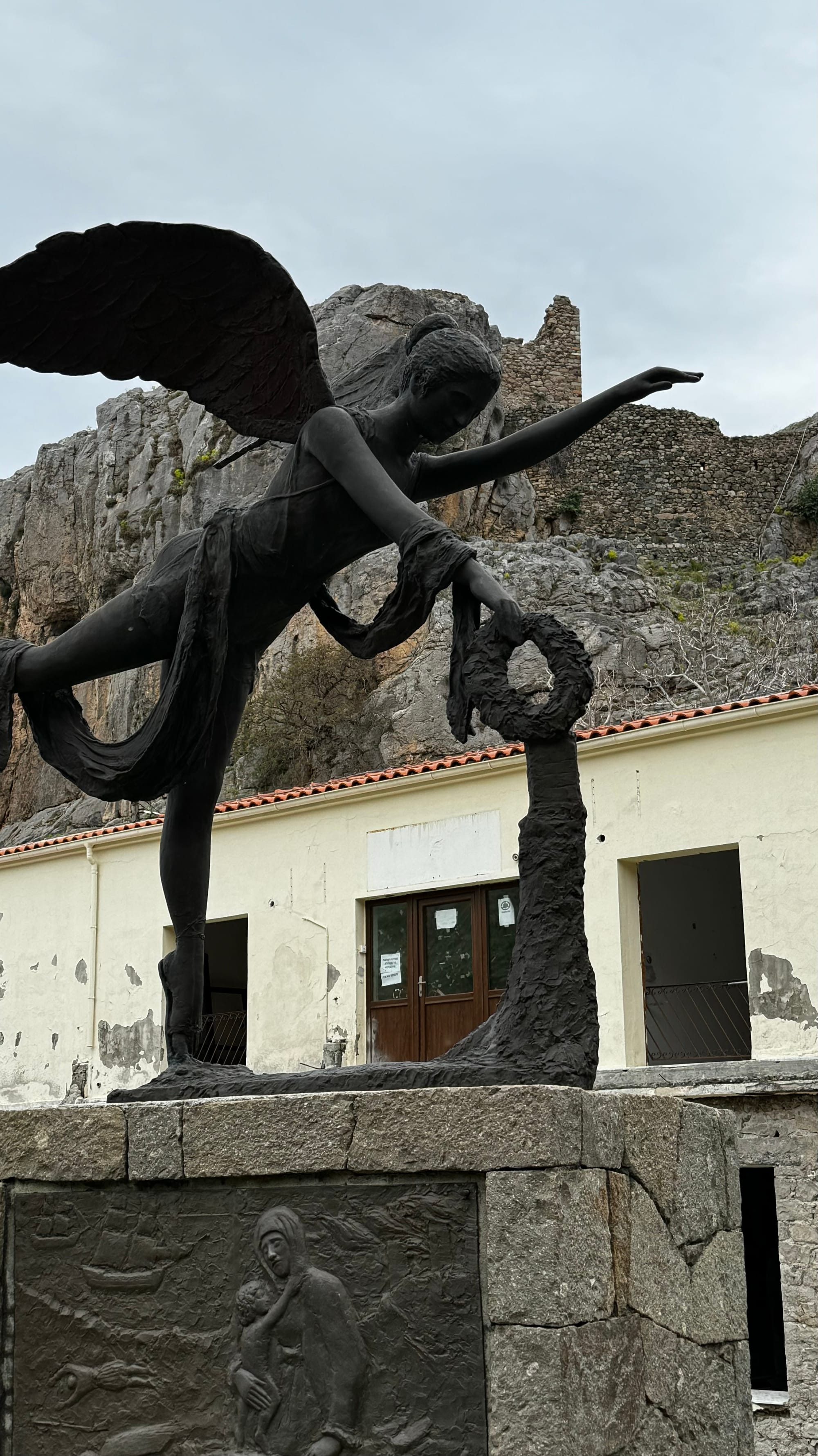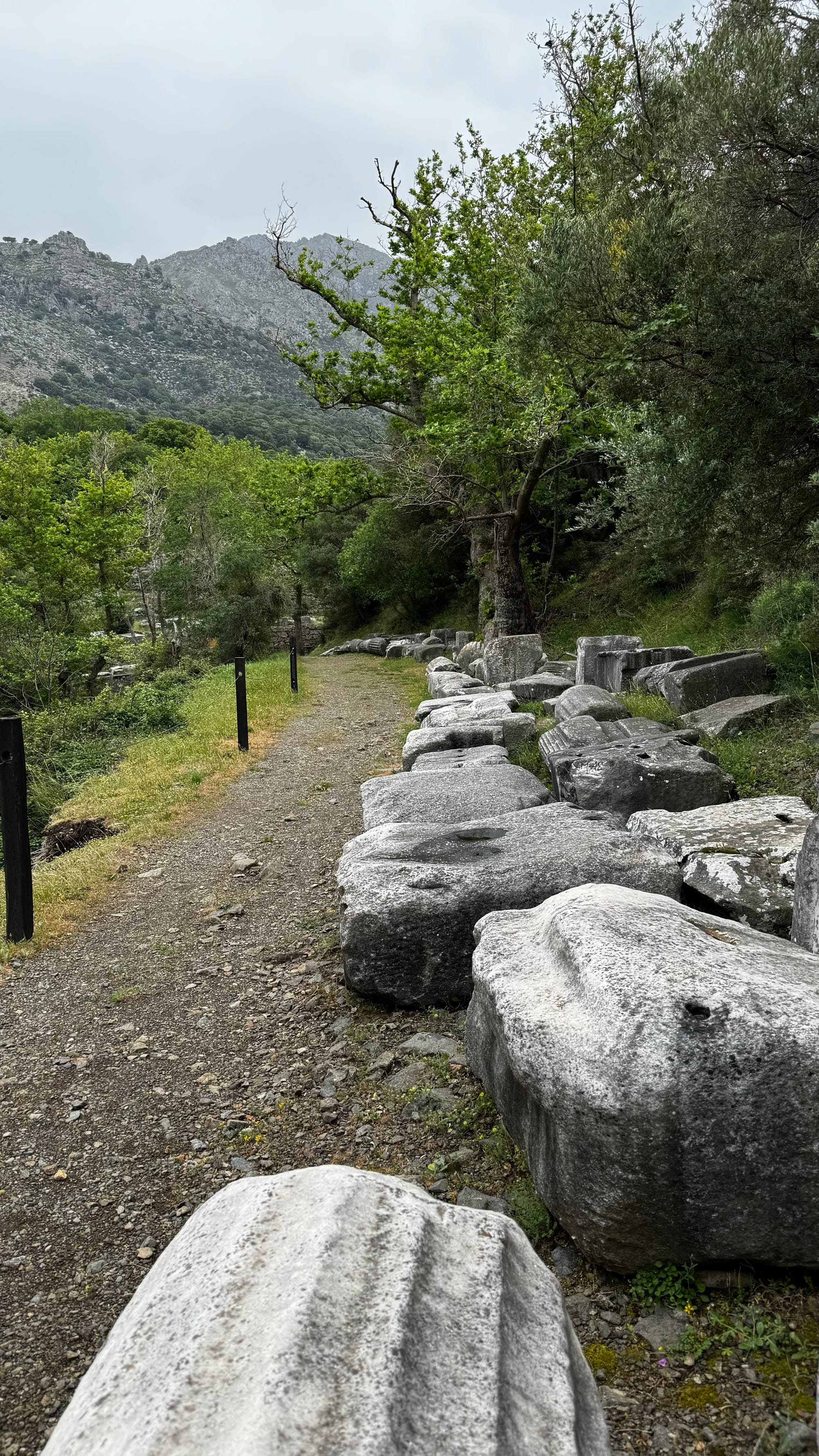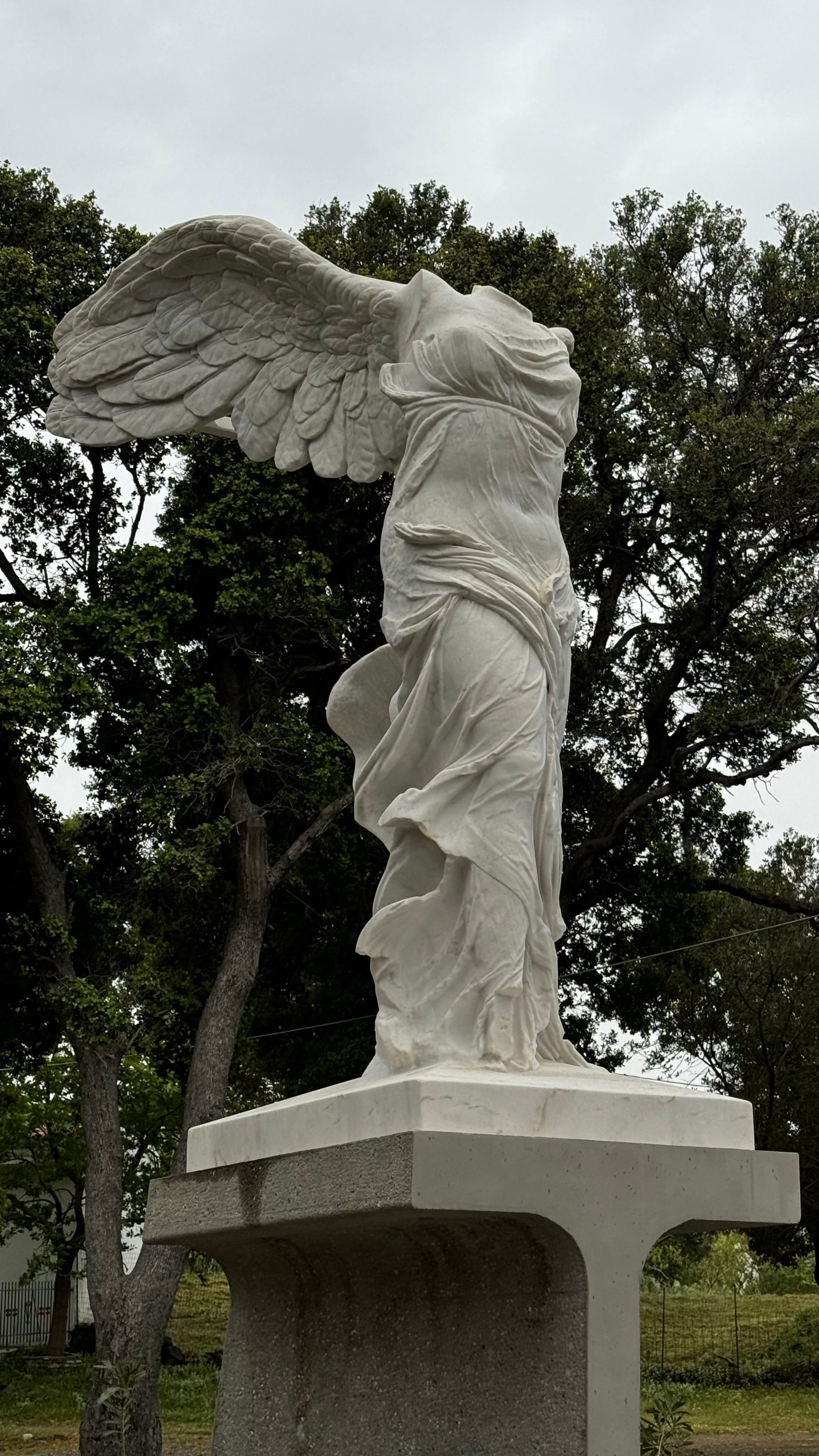 Views around the sanctuary of the gods. The Winged Nike statue is an exact replica of the original in the Louvre. The snail was huge—apparently, they are a local delicacy and appear after the rain. It was a bit larger than a golf ball.