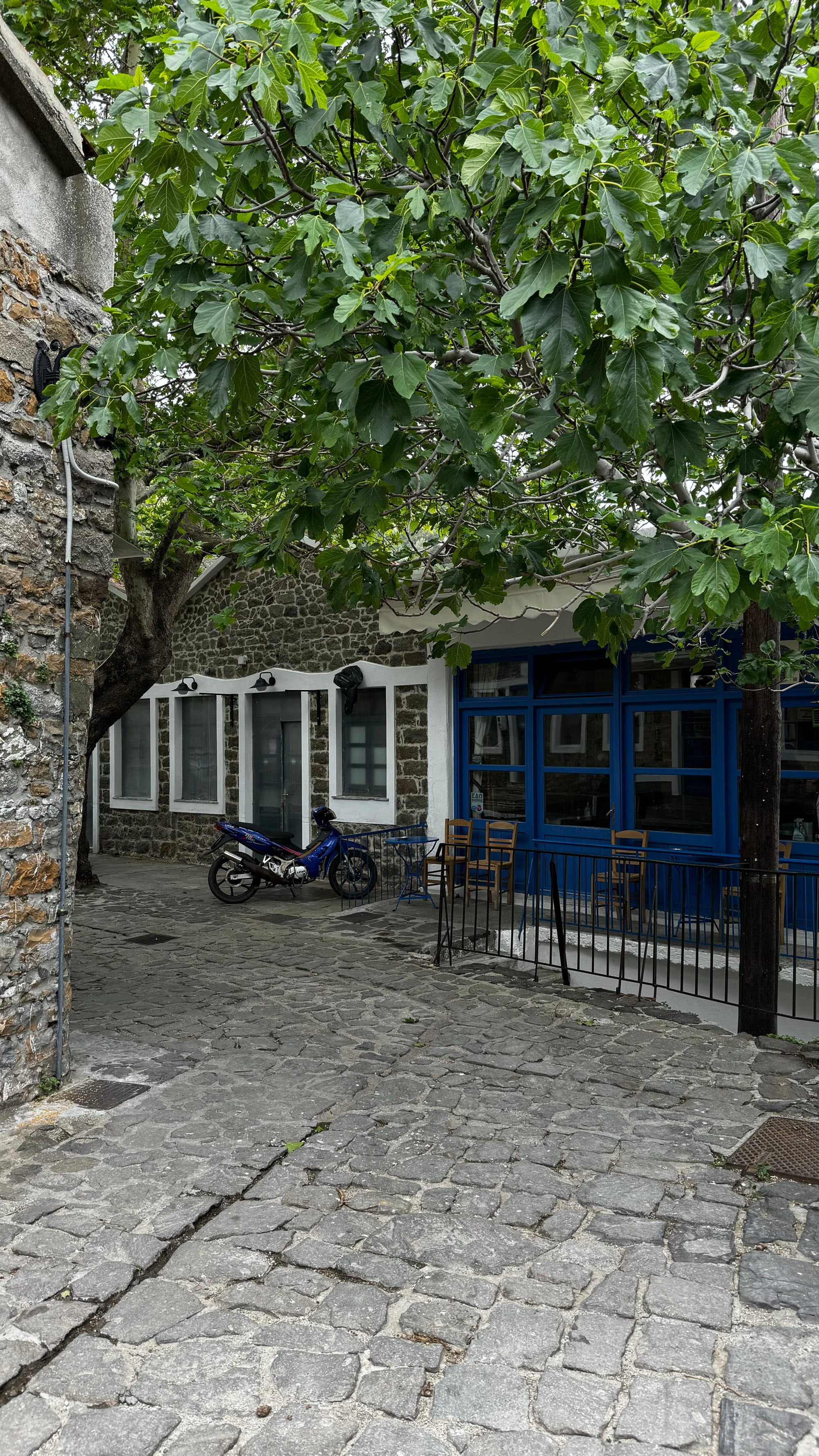 When we arrived, the first thing we did was hire a car. A very friendly man gave us a discount and allowed us to take it that afternoon (so a two-day hire for one day sort of). We explored the port, had a delicious lunch, and then drove up the hill to the Chora (central village), taking a local hitchhiker with us.