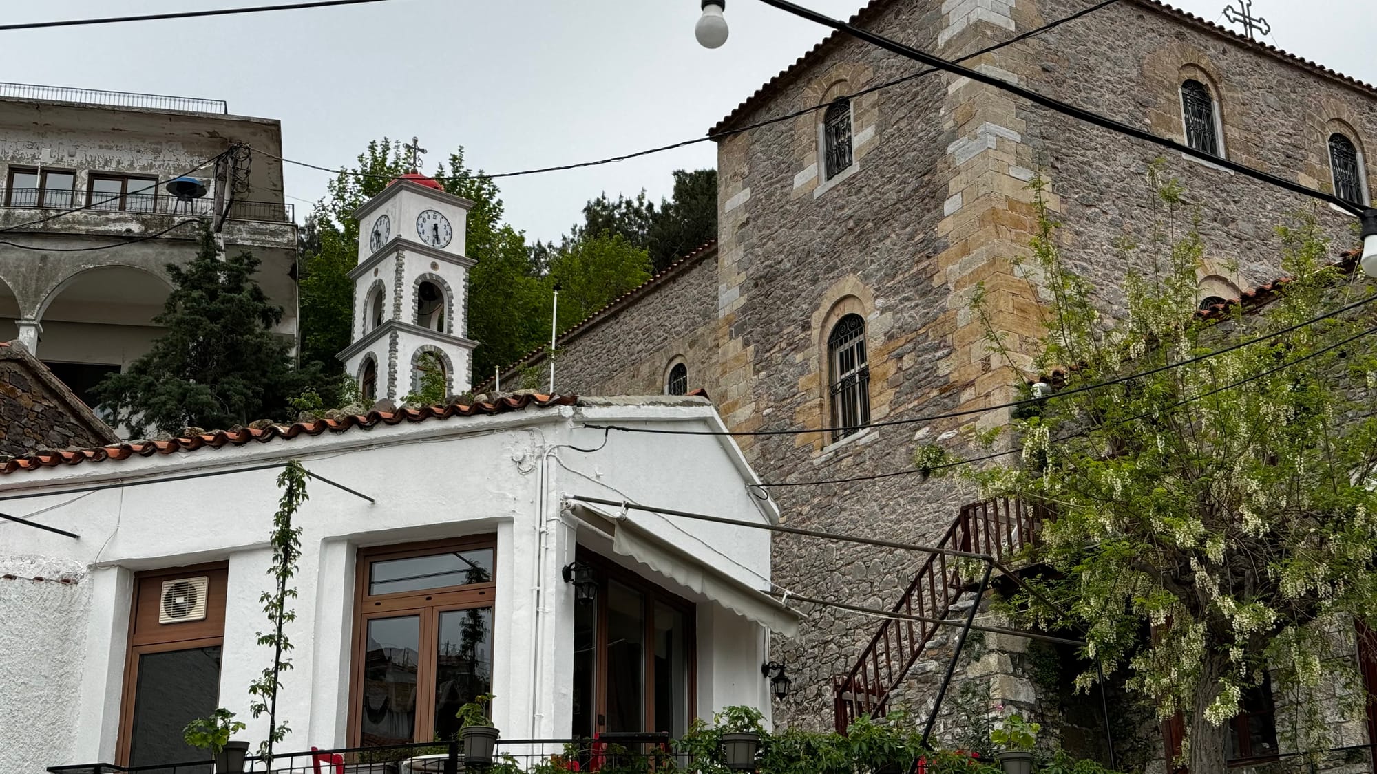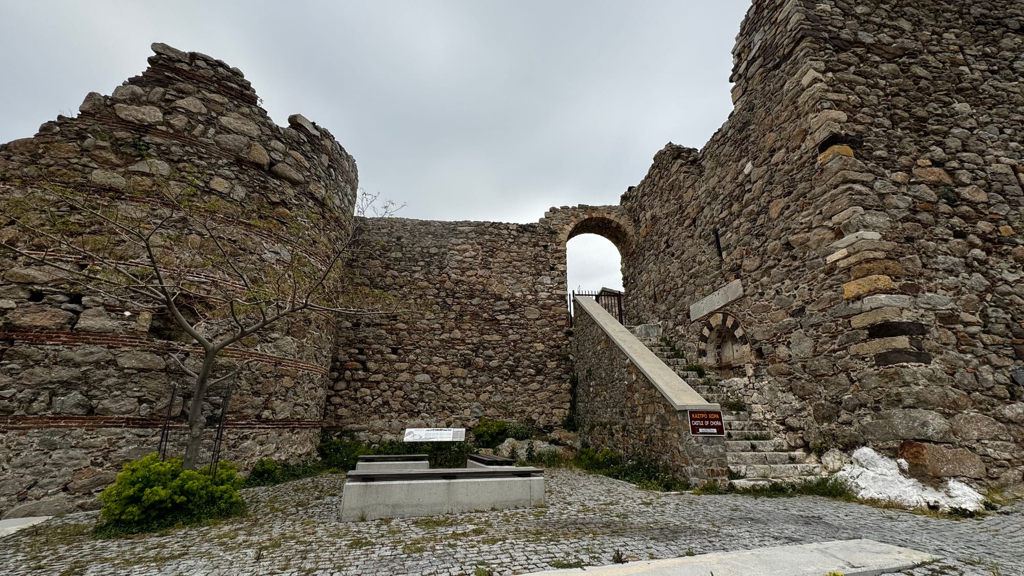 The Chora is a lovely old town spread up a mountainside that's dominated by a large church and an old castle. We enjoyed wandering through the streets and the spectacular views. Like many smaller islands in Greece, it's clear that it gets a holiday population. There are many small hotels, but now, even in late April, they are all still closed.