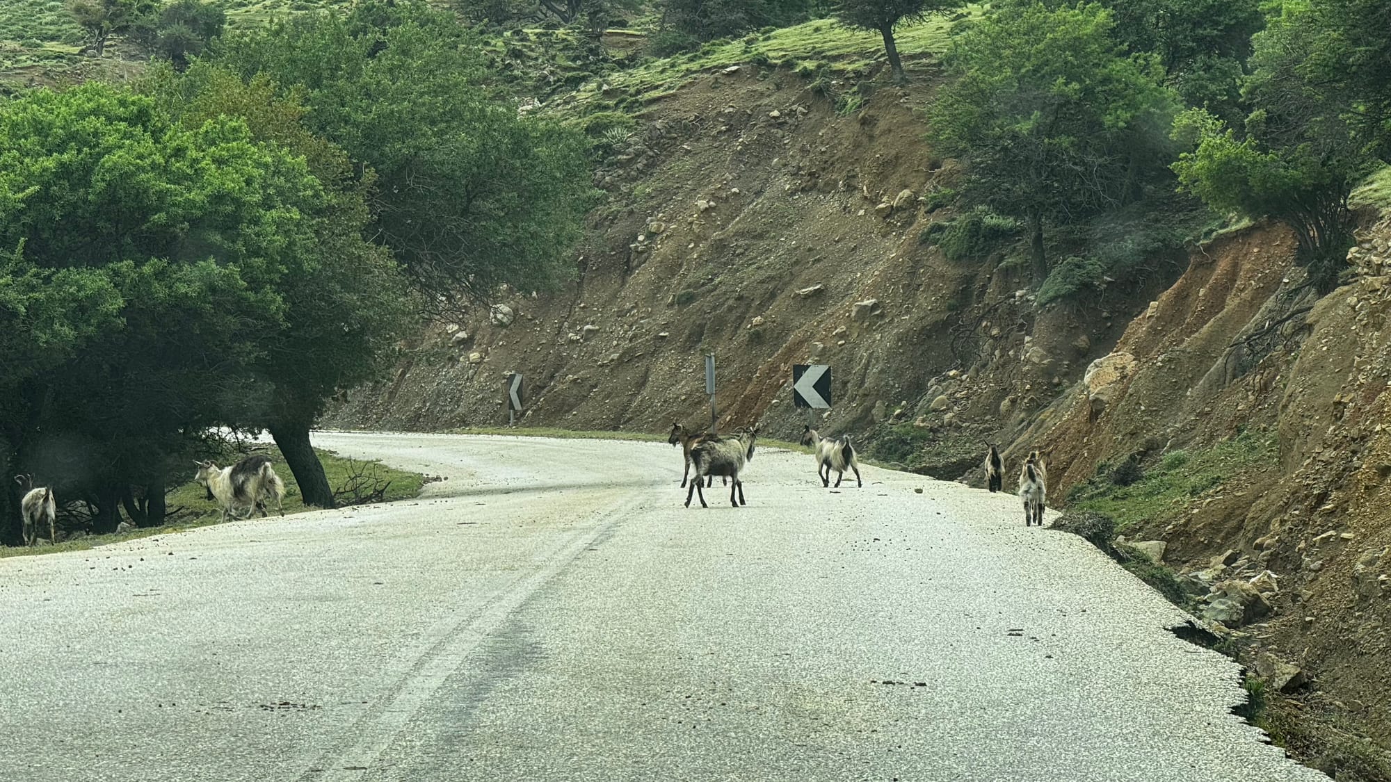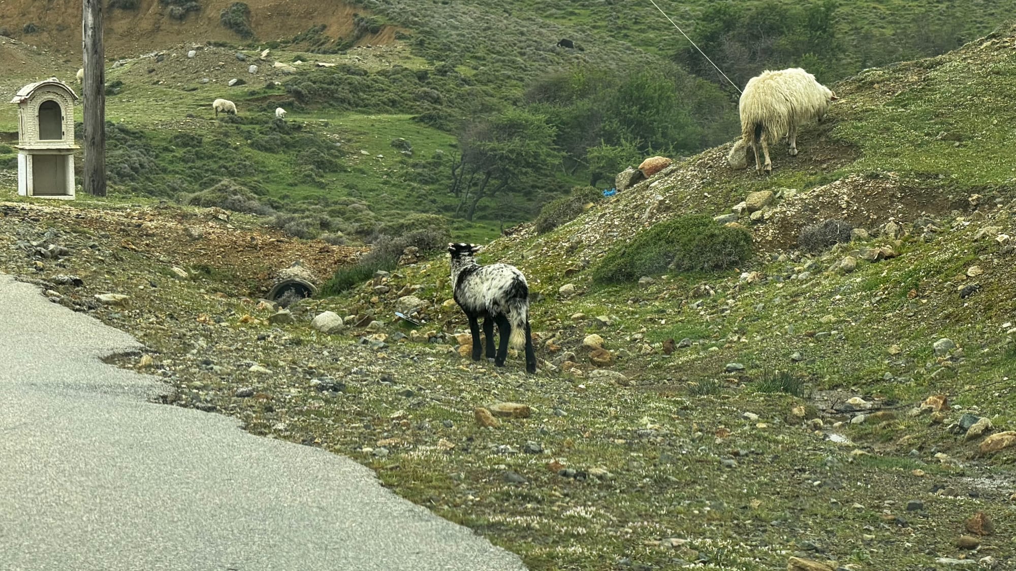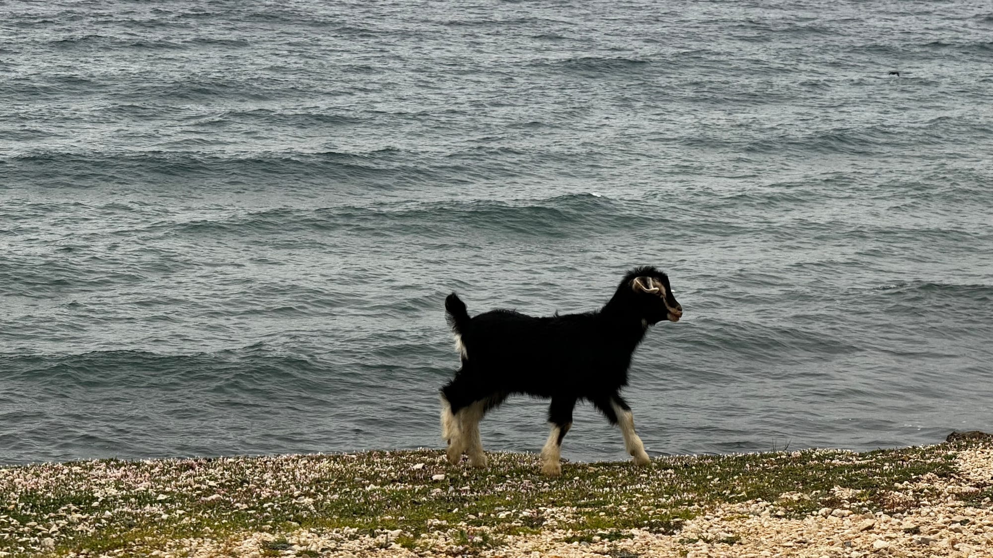 After all this, we pushed on to the end of the island. The road deteriorated more and more. It is poorly built right on the edge of the sea, and large sections are washed out and collapsing. There were also goats everywhere. Samothraki really is the island of goats – and kids! With spring, baby goats are everywhere. We had to drive carefully to avoid them.