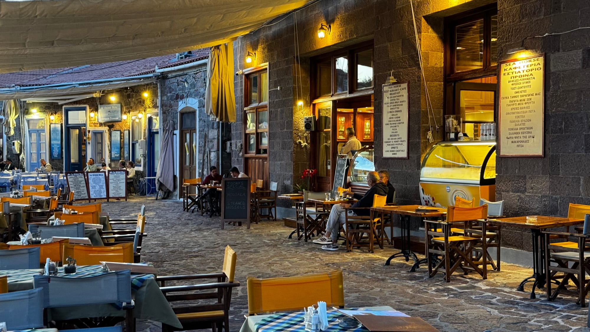 At Limnos, we headed back into the port of Myrina because we enjoyed it so much and because friends from Mytilini, Thomas and Irene were planning to be there. Our goal was to eat sushi at our favourite restaurant.