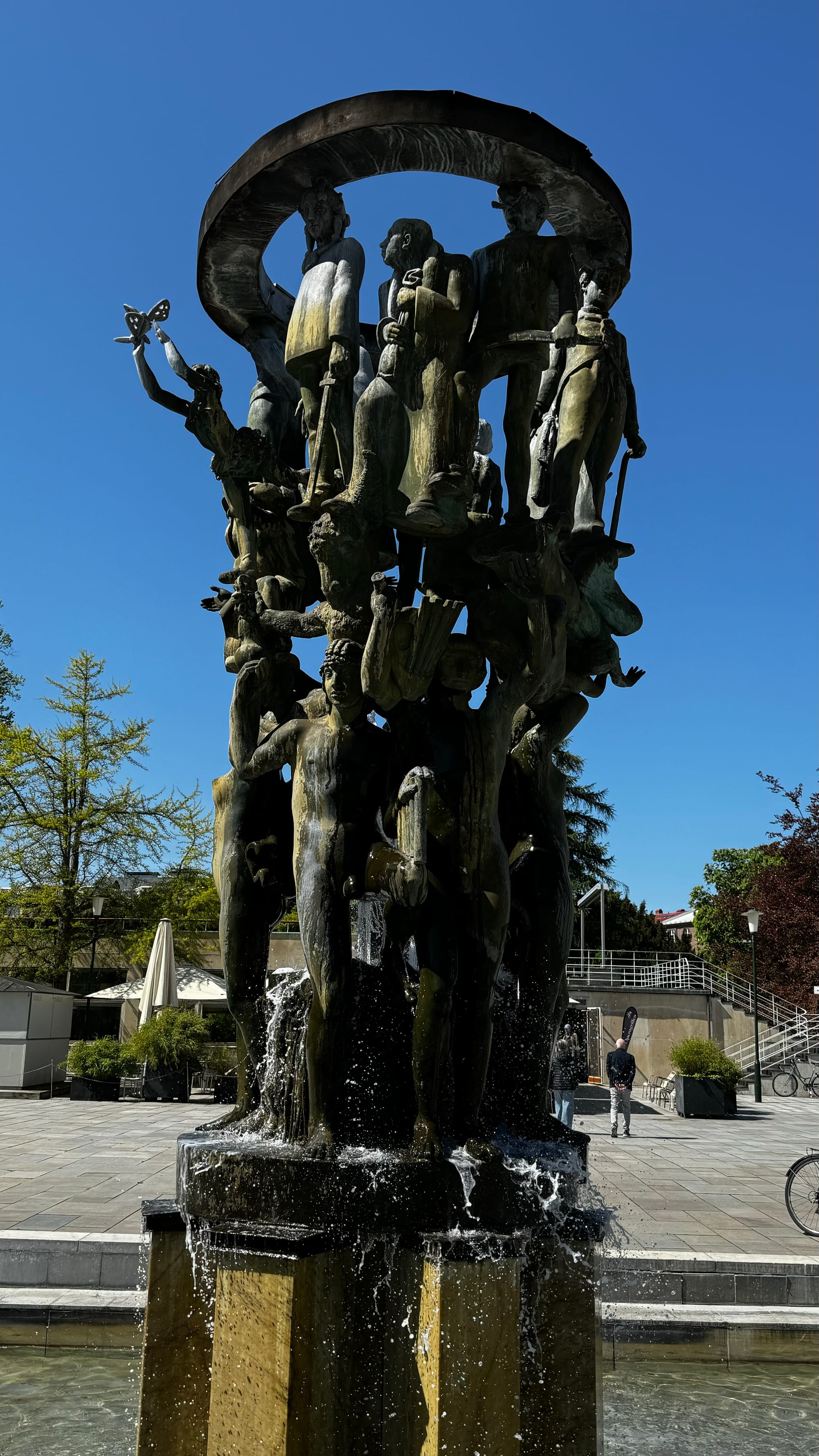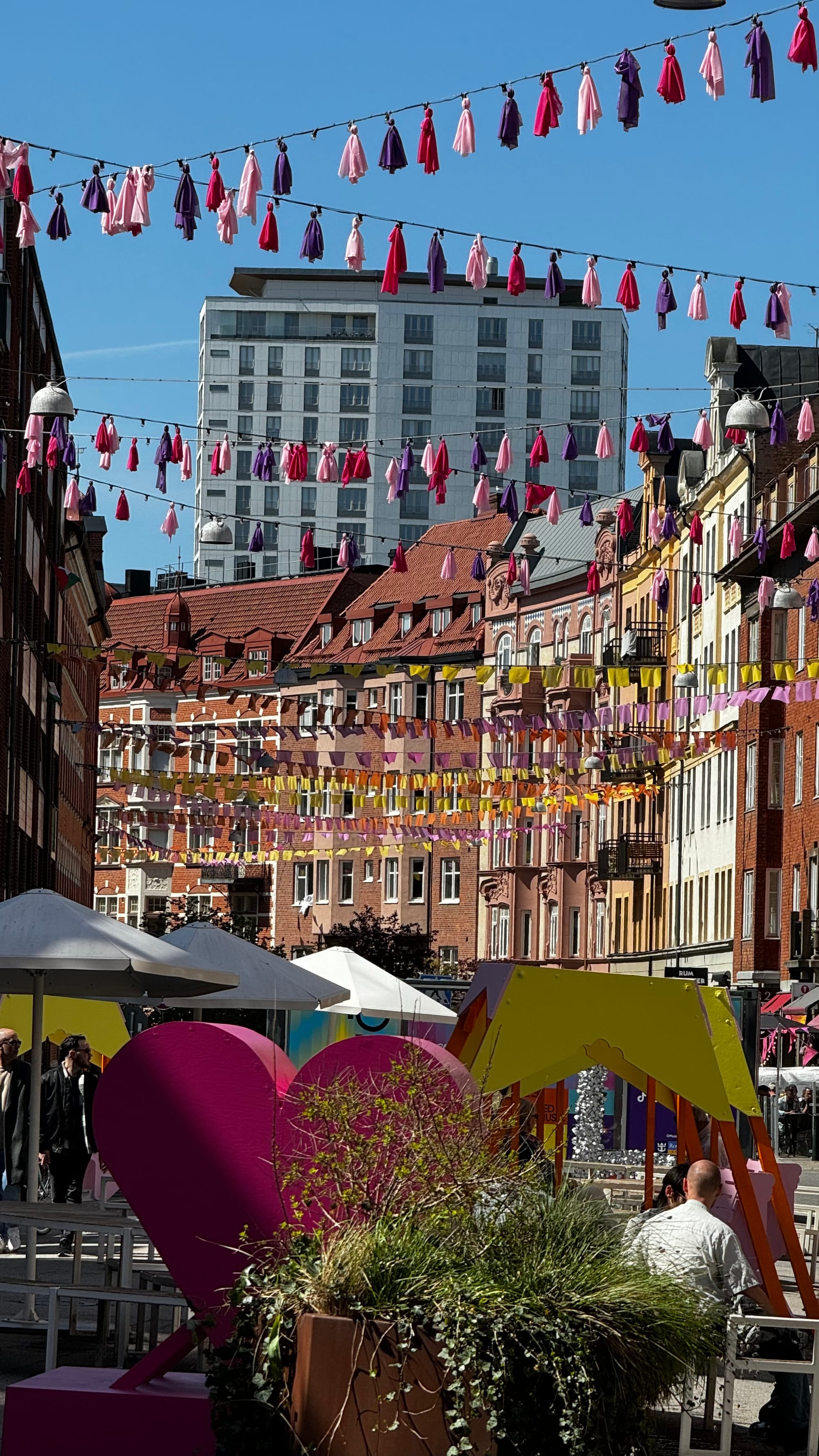 From our apartment, it was only a ten-minute walk to the train station, which ran to the airport, and from there, the train went over the bridge directly to Malmo. We headed into the city centre and walked around, exploring as we went. We found a good spot for fika, we admired some old buildings, and we walked through some gardens and by the old windmill. Eventually, we headed to the Eurovision village and walked through that, but it was very quiet and really set up for parties in the evening.