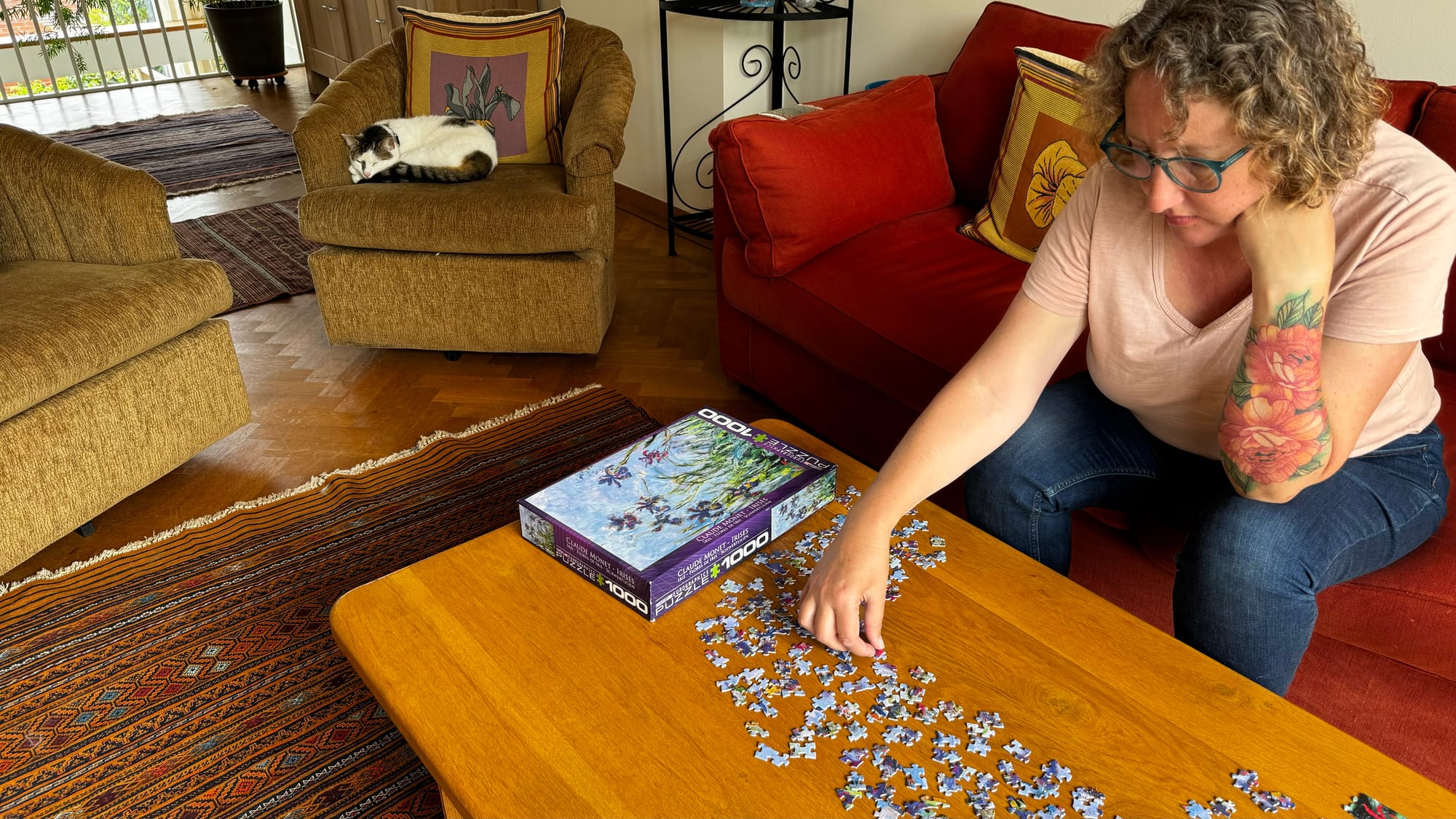 Scenes from settling in. Lots of great beers to try. Pet pigs and goats to feed across the road. Puzzles to do.