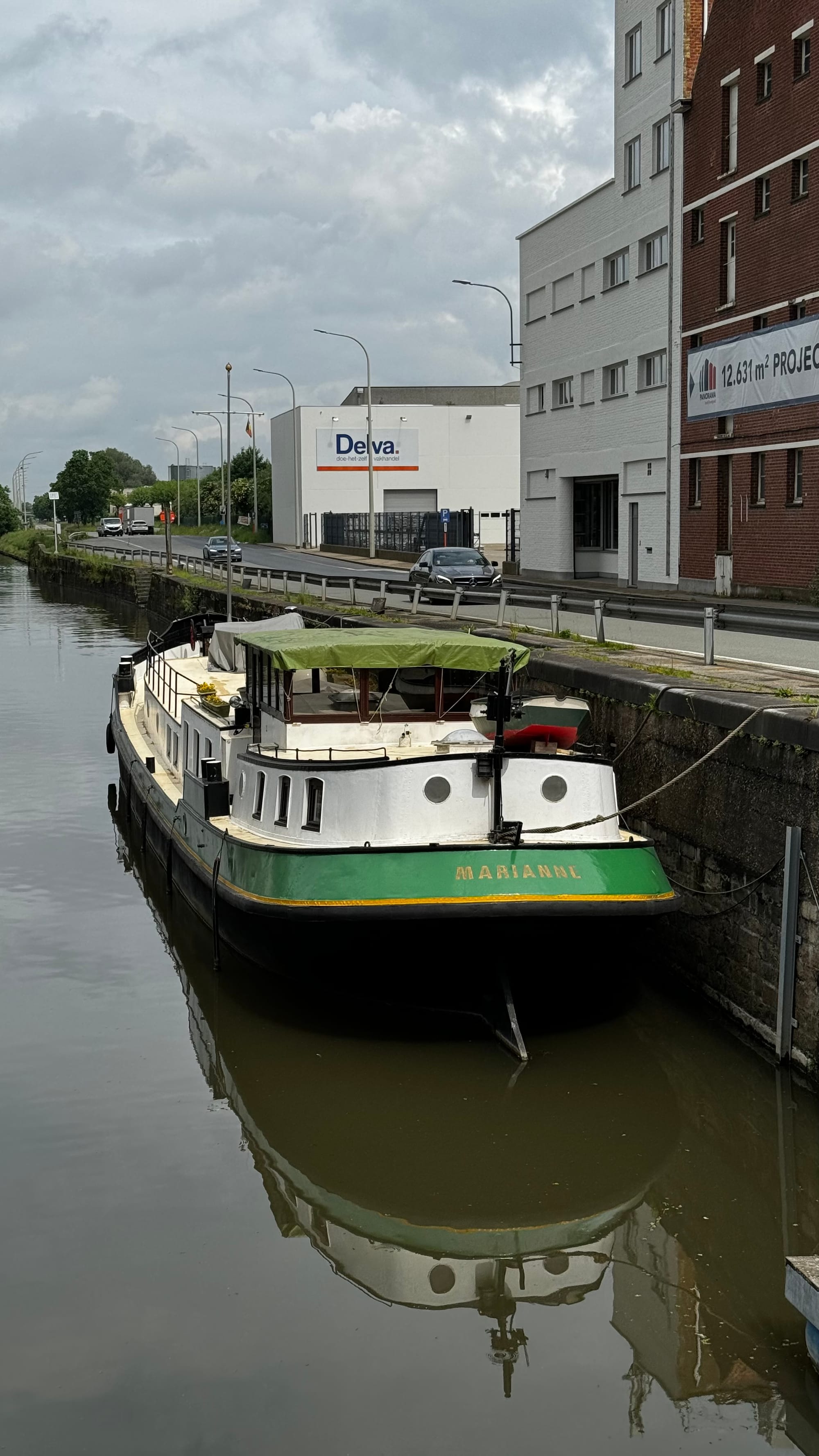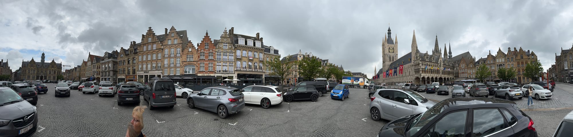 Wednesday, we caught the train from Roosendaal to Antwerp in Belgium (€17 euros and 1 hour), then hired a car at the train station to drive to Ypres, where there is an old hotel barge for sale. We were very grateful to the owner for making it available for us to see, and the visit was educational but not quite the right barge for us yet. Boat buying is like that, you have to kick a few tires (or fenders) to find the right one.