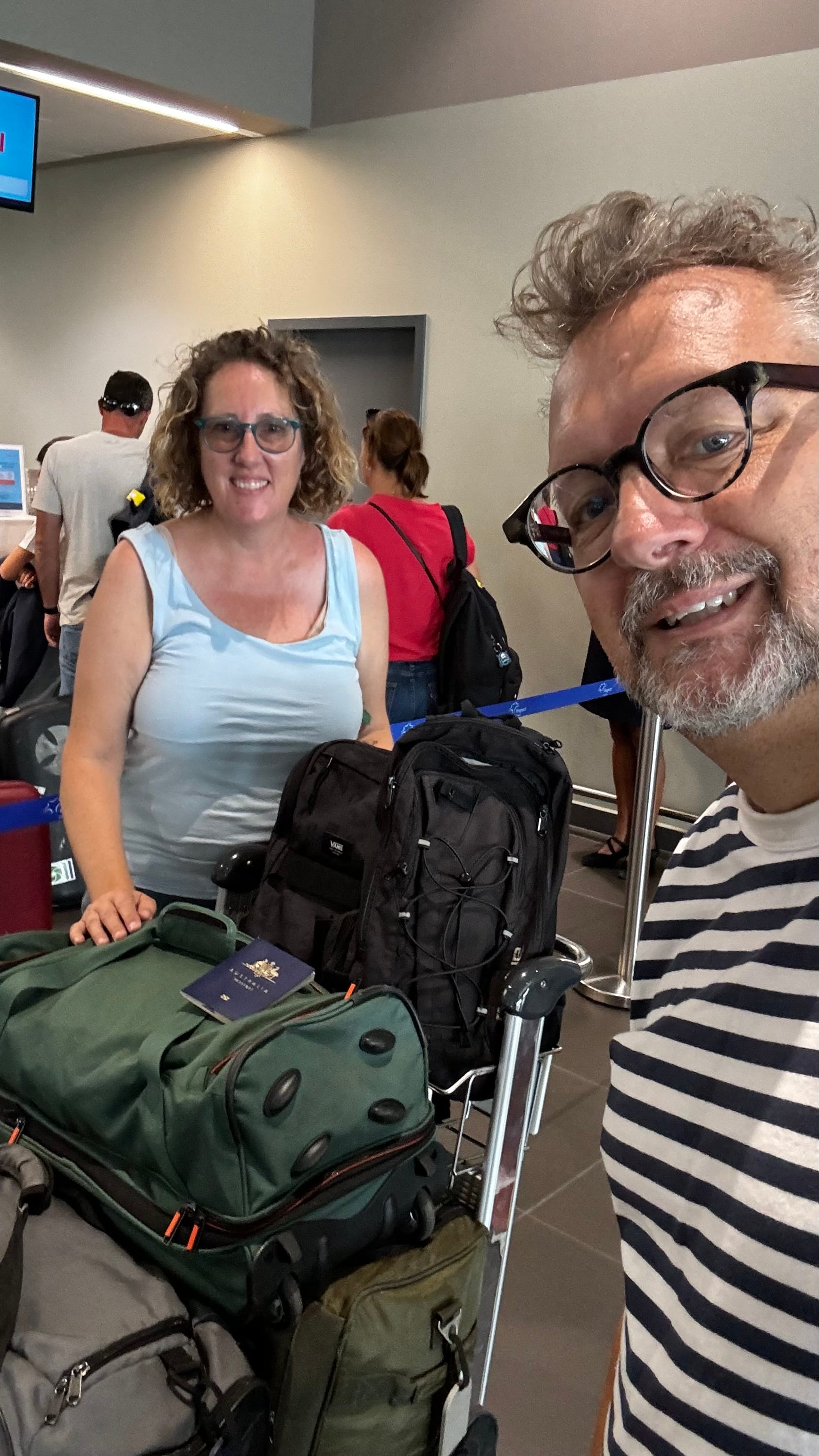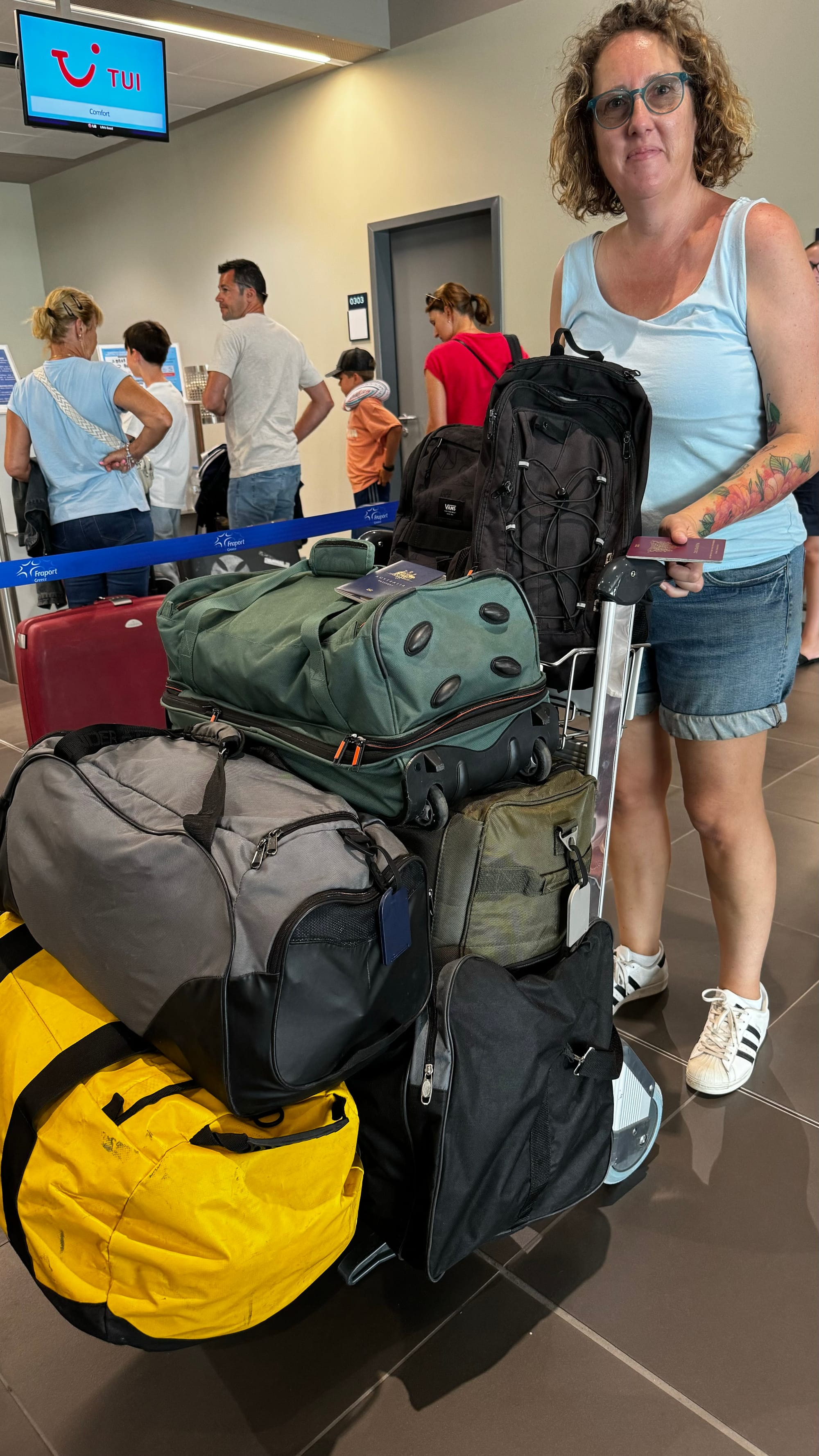 Friday morning, we ran around, did some last-minute packing, and then bundled into the cab to the airport. TUI fly direct from Mytilini to Brussels, with a stopover in Thessaloniki, where you stay on the plane.