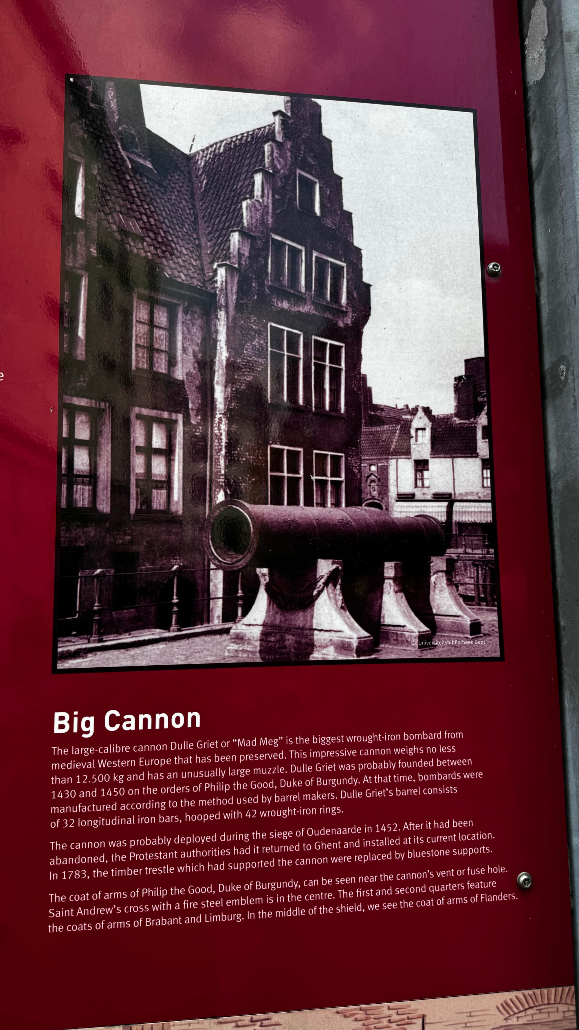 Gent is old—really old. The Children's Hospital dates from 1363, and the Big Cannon dates from 1450 (it's been sitting in that location since around 1460). A bag of Belgian Chocolates.