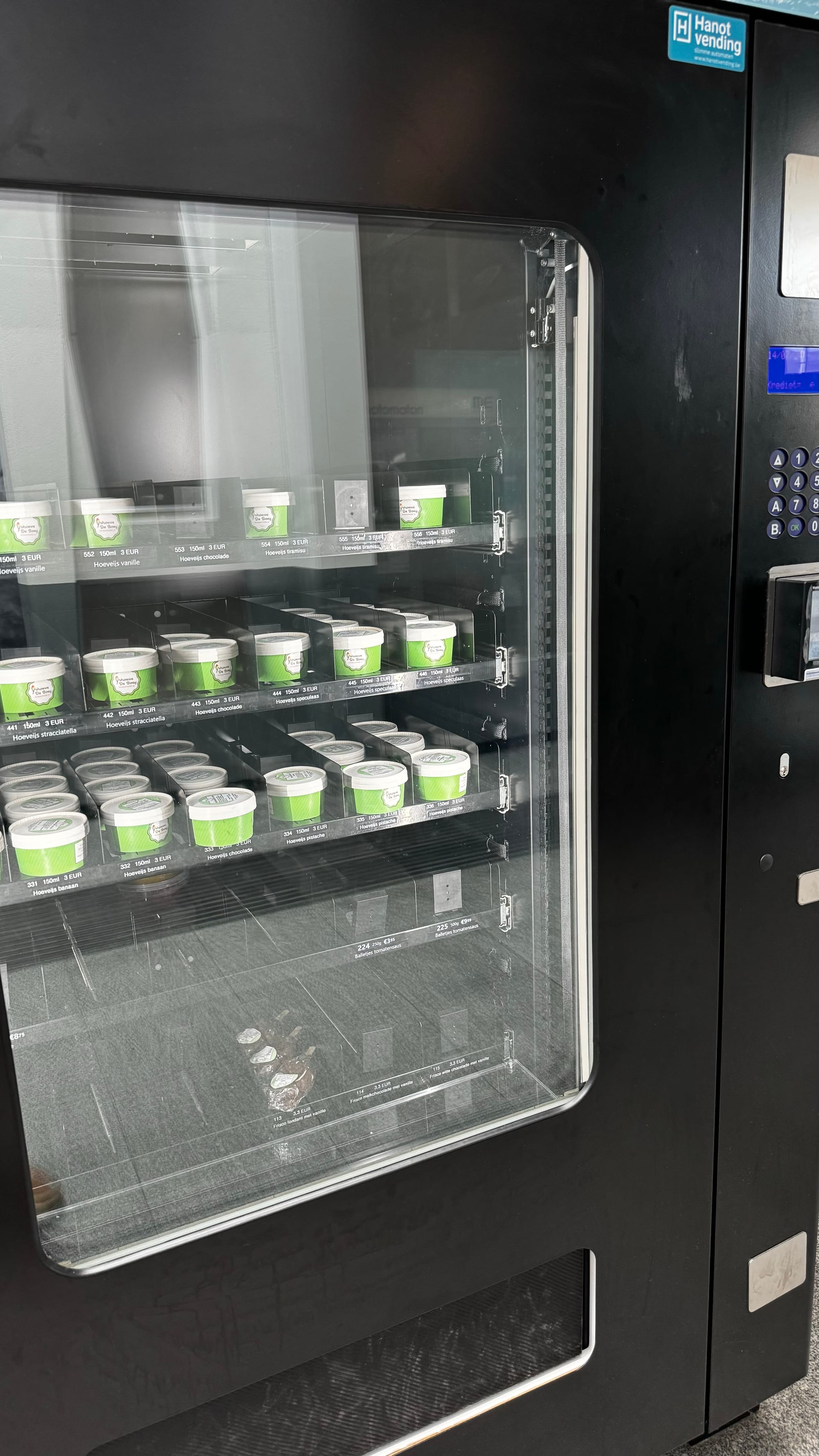 An ice cream vending machine. A visit to Sint Niklaas to meet the brand agency. We had some photos printed to hang on the wall.