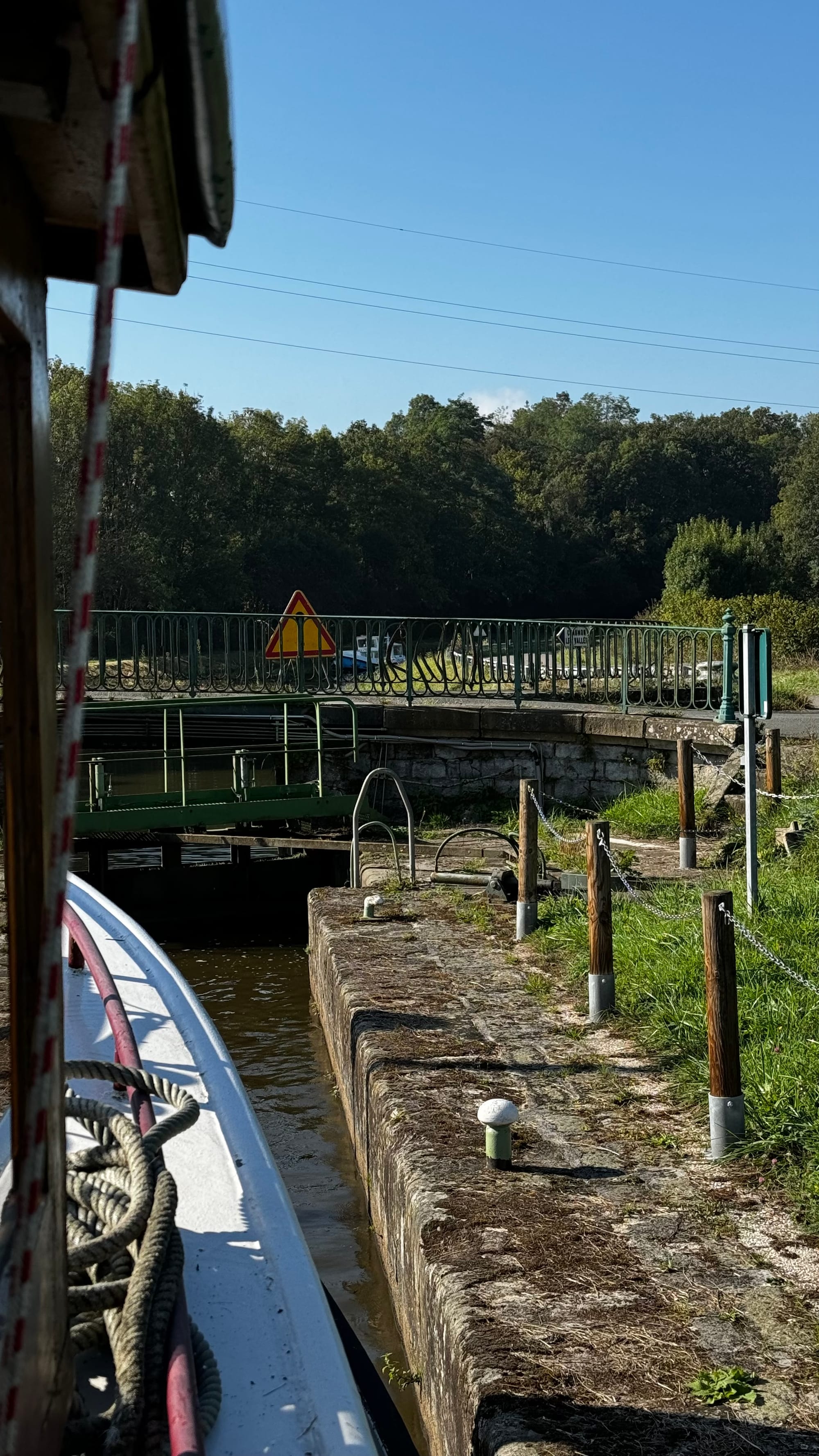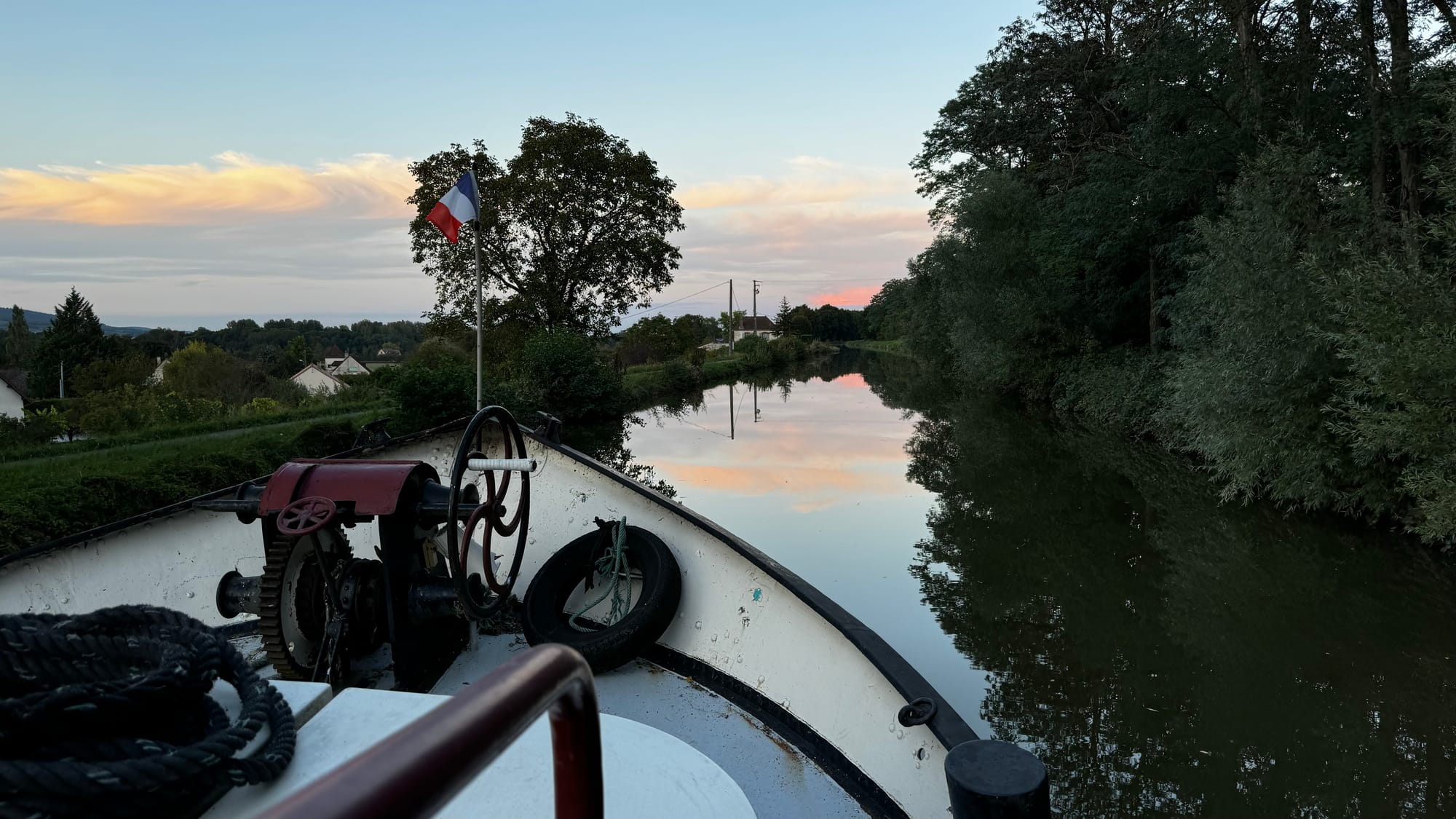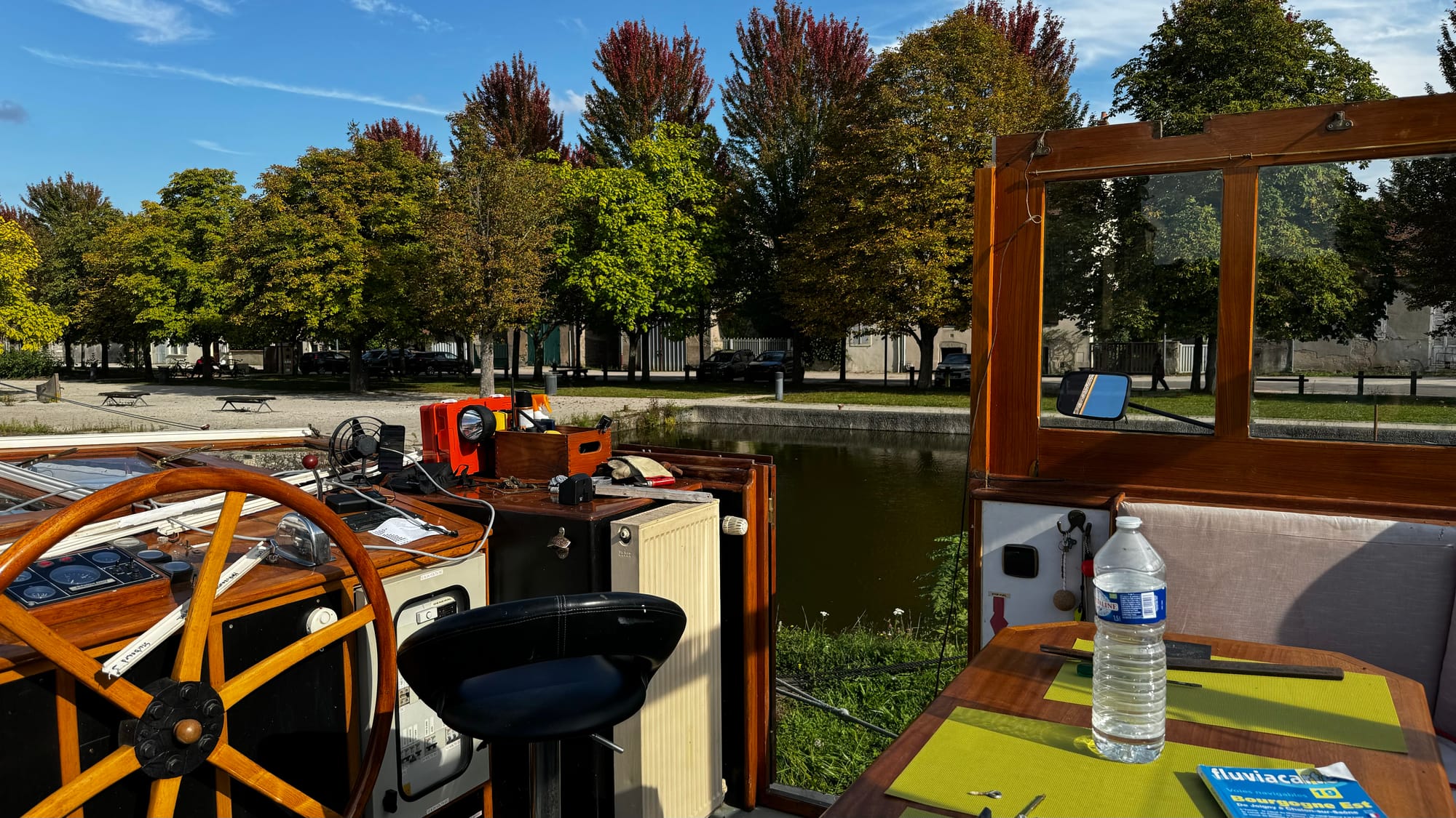 Karina and I swapped roles several times as we got the hang of things. We initially intended to cruise down to the next Halte Nautique and rest for the night, satisfied we'd moved 5k downstream, but we soon discovered the realities of a bigger barge on the small canals. As we tried to moor, the stern touched the bottom; we grounded out and decided to, instead, push on. The height of the canals can vary a little as the locks go up and down, and Paul pointed out that while we might force our way onto the stop, we weren't guaranteed to get off again in the morning.