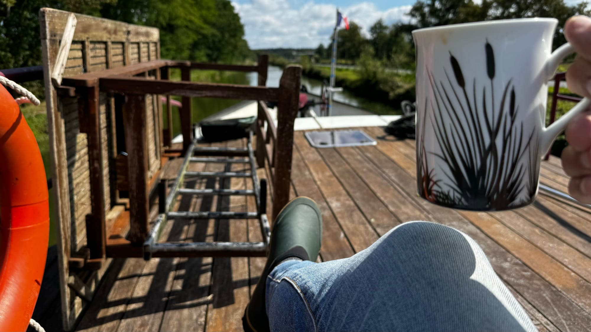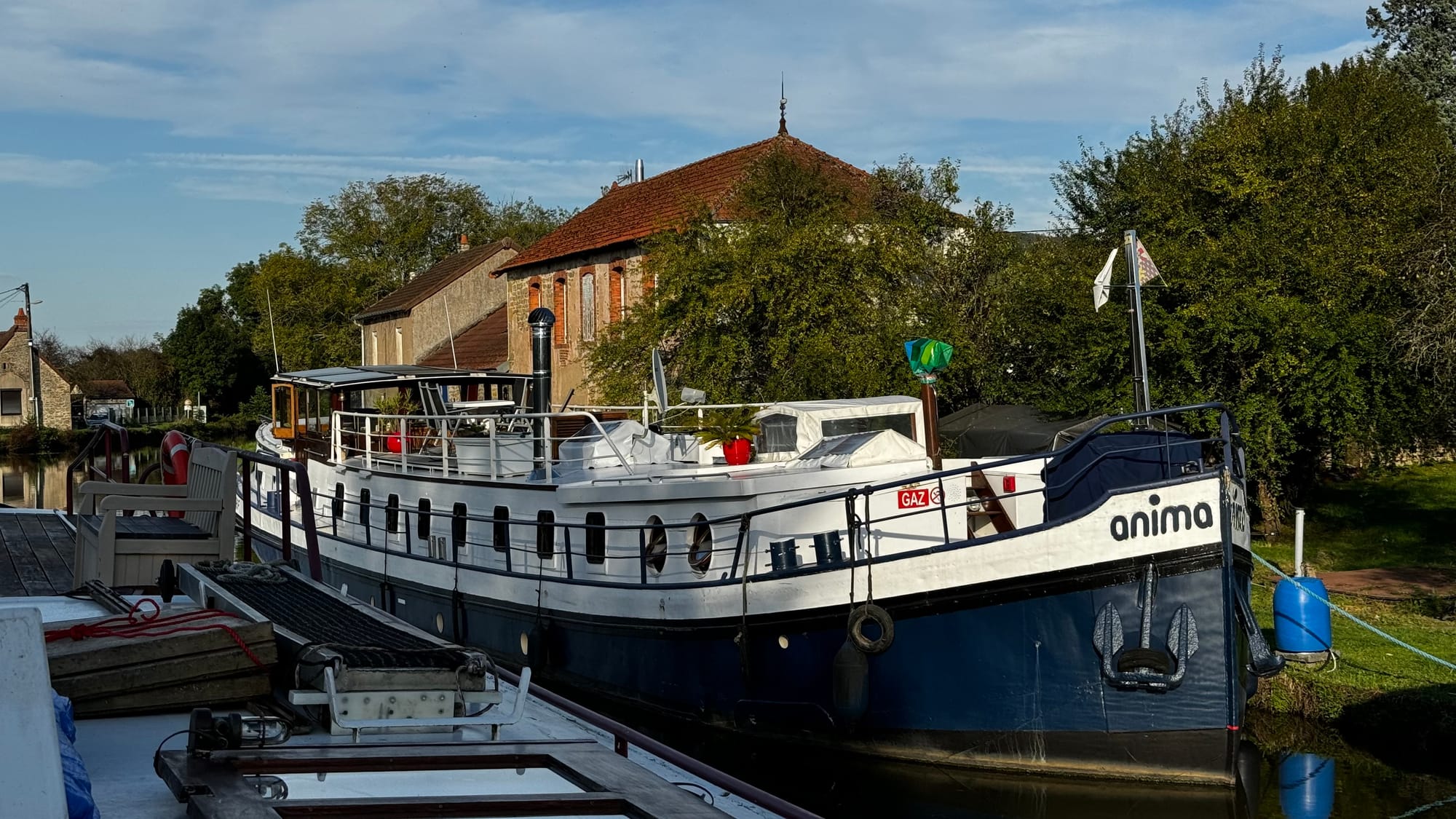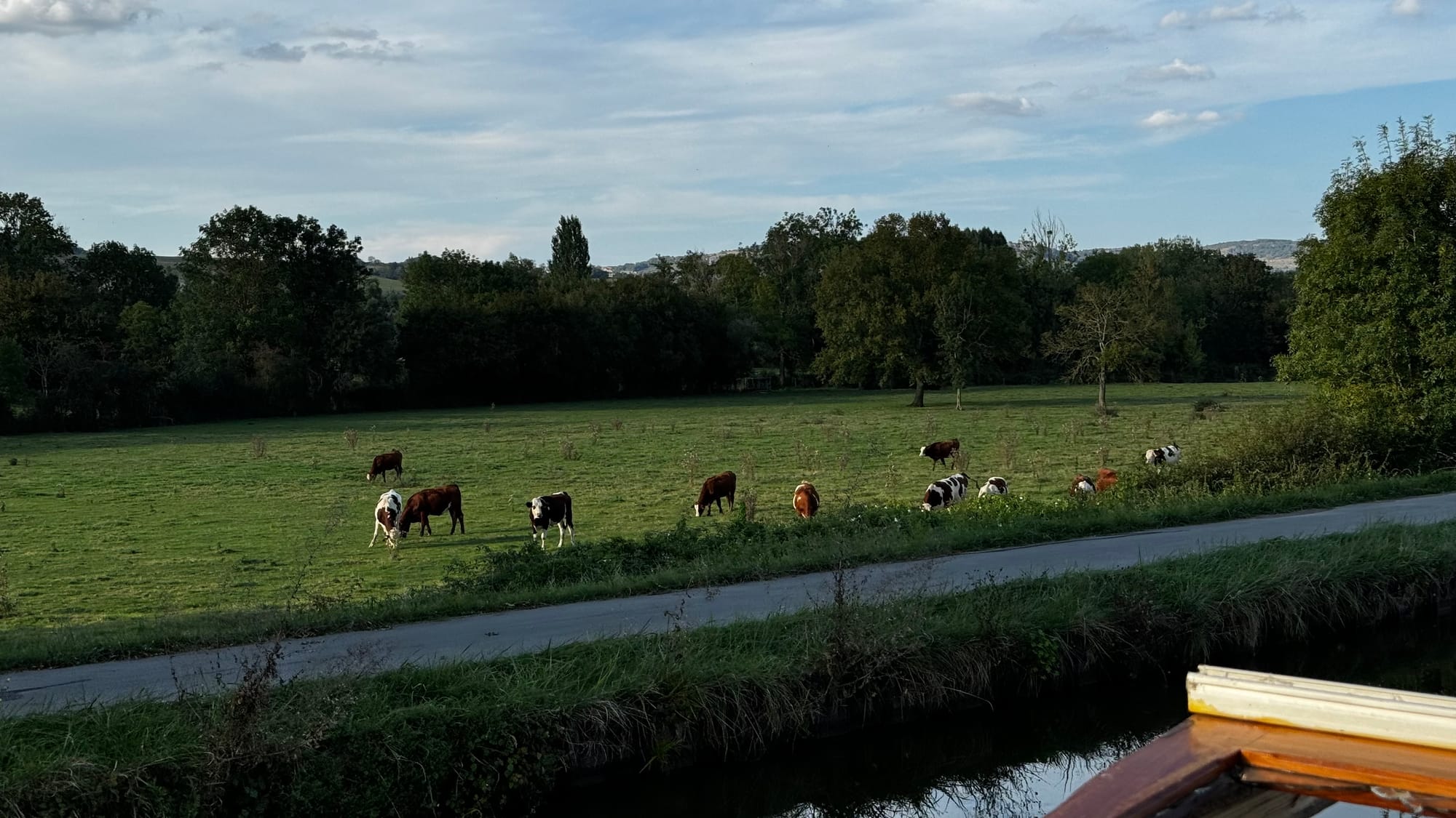 Karina and I swapped roles several times as we got the hang of things. We initially intended to cruise down to the next Halte Nautique and rest for the night, satisfied we'd moved 5k downstream, but we soon discovered the realities of a bigger barge on the small canals. As we tried to moor, the stern touched the bottom; we grounded out and decided to, instead, push on. The height of the canals can vary a little as the locks go up and down, and Paul pointed out that while we might force our way onto the stop, we weren't guaranteed to get off again in the morning.