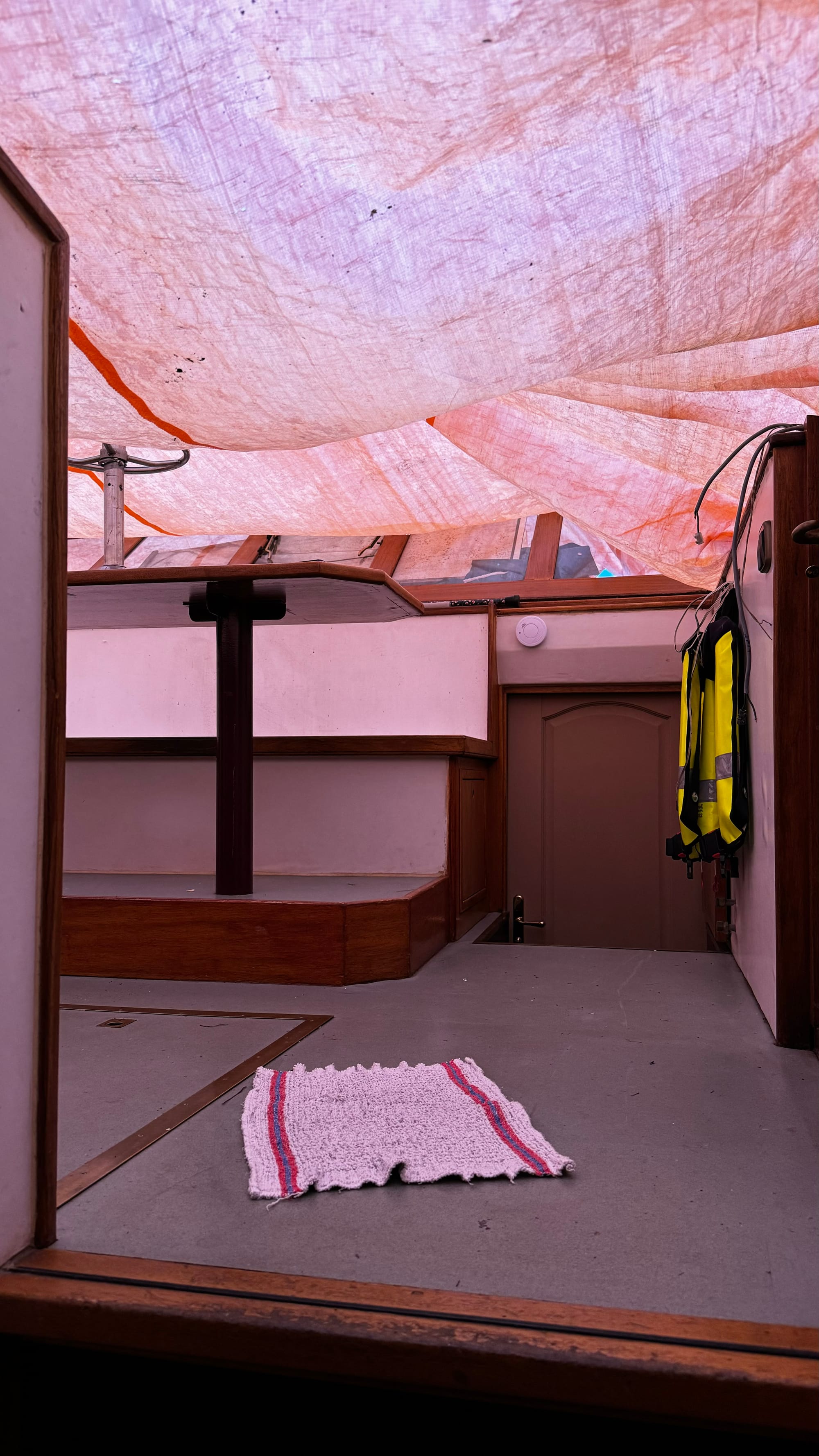 Prepared for overnight rain and a small sense of security as there is no door down to the galley, so open to curious cats or people.