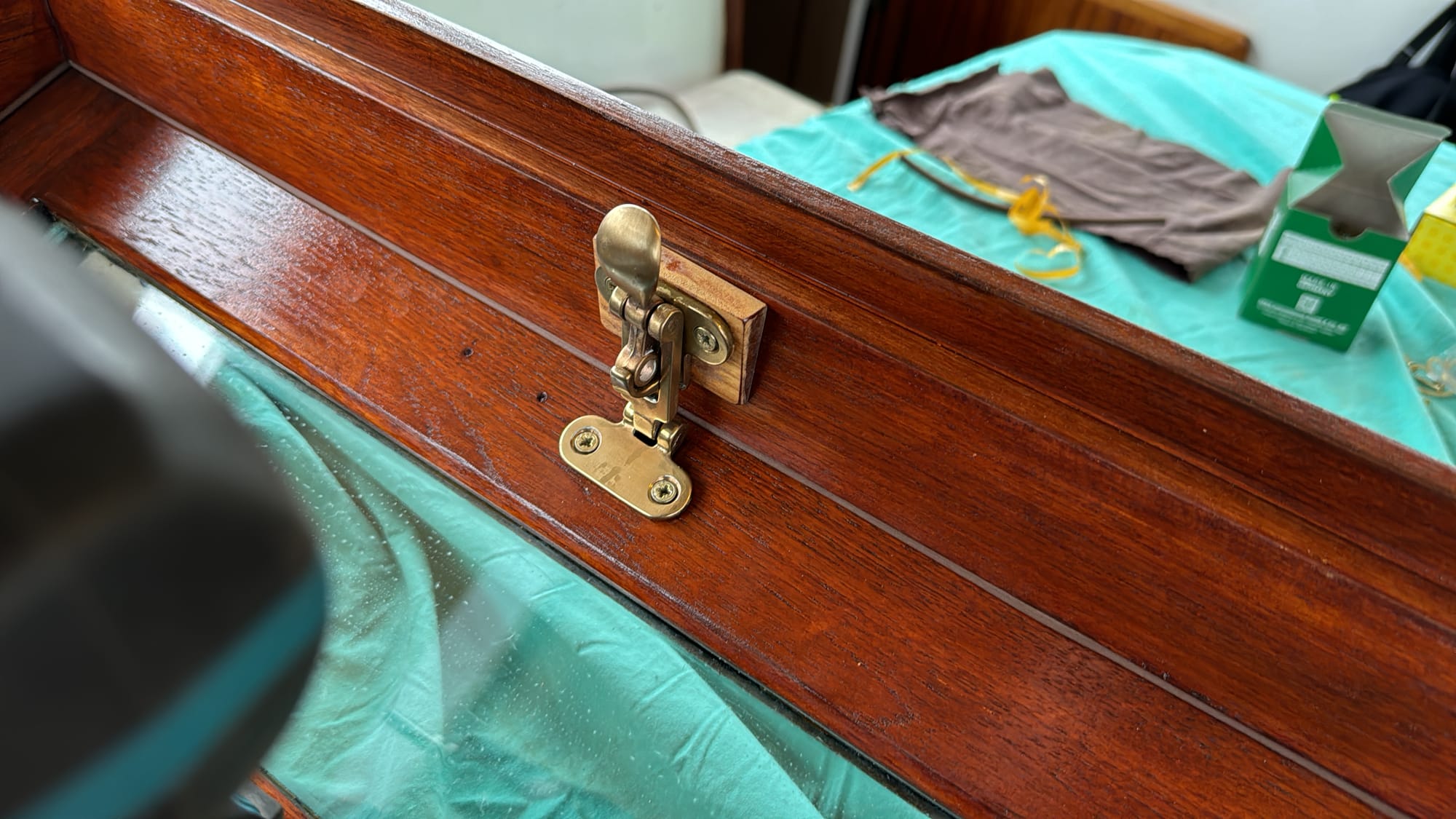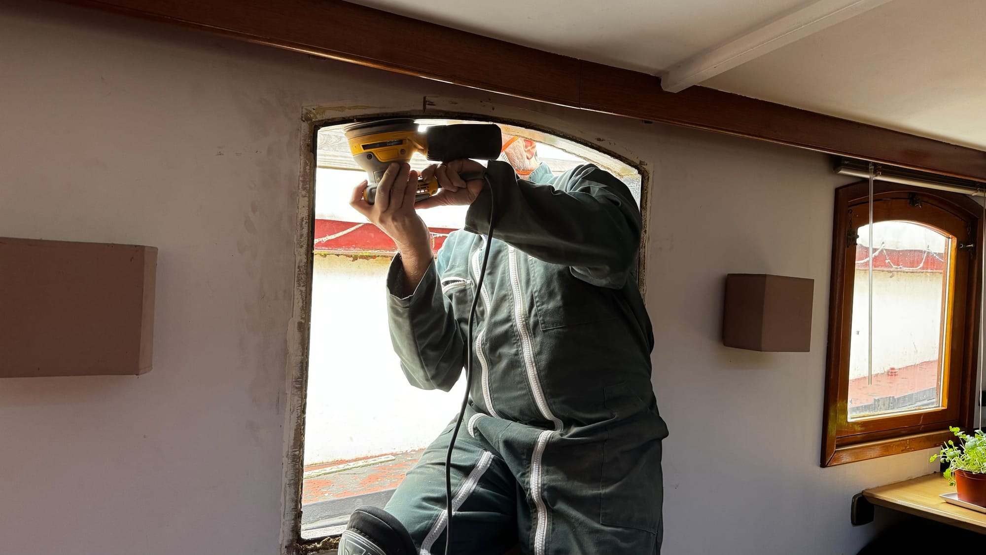 So why all the sanding? It's a job that needs to be done and that we can work on while we wait to go into the shipyard for the major repaint. We've been taking them out, covering the frames with foam inserts, and sanding them back to bare wood. Repairing any holes and gaps, then coating with 3 - 4 coats of a high quality oil based stain. Then, digging out the old grout, resealing the external frames and also adding back new silicon rubbers to seal the windows. It's a lot of work, but very satisfying. Once it's finished, they look amazing.