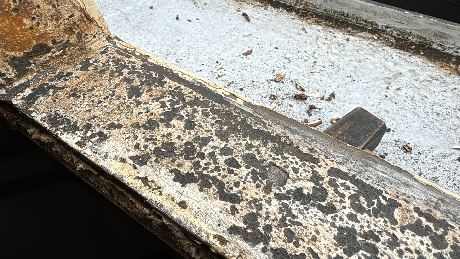 With the window frame out, it was interesting to see the effects of the water–the steel frame of the coach roof lips inside, which is good, but the water sitting under the leaking frame has created lots of rust spots. I spoke with Peter and he advised sanding and scraping it back, then SIX coats of primer. He said to do it "properly" it would mean sandblasting it, but of course, no-one ever does that because of the work involved in pulling all the windows. He thinks this will give it ten years though (more than enough for now).
