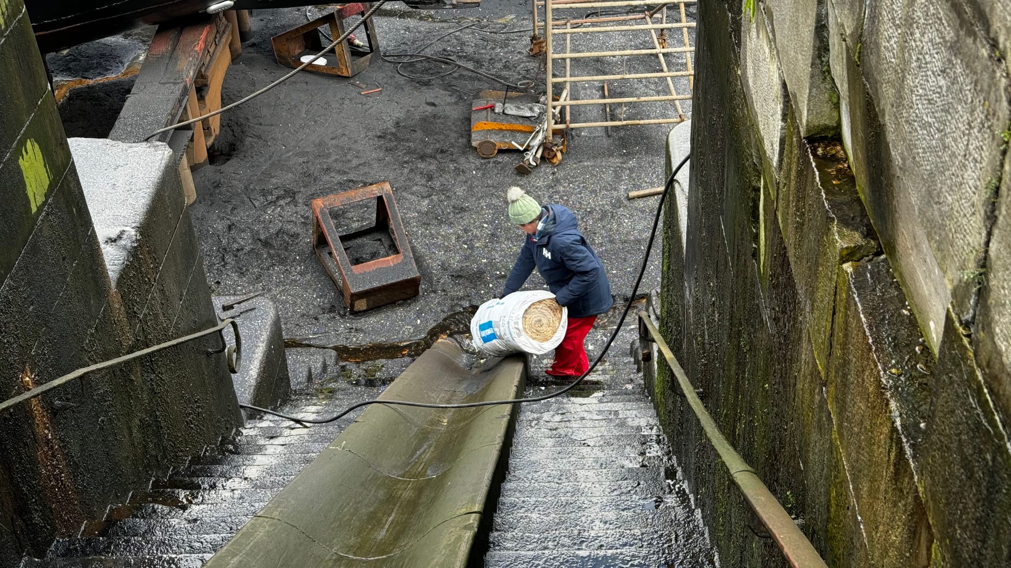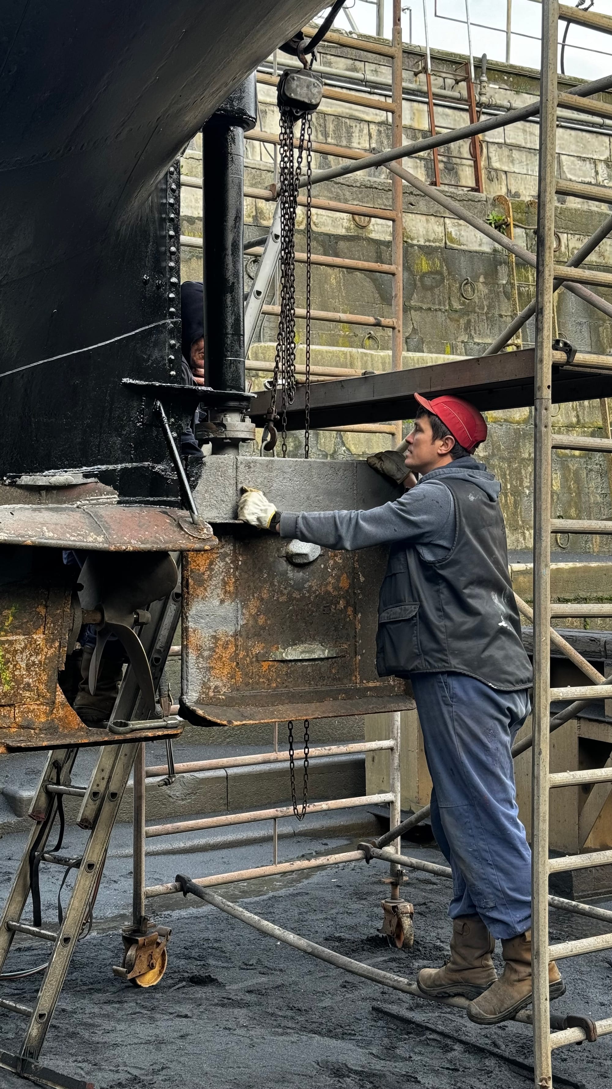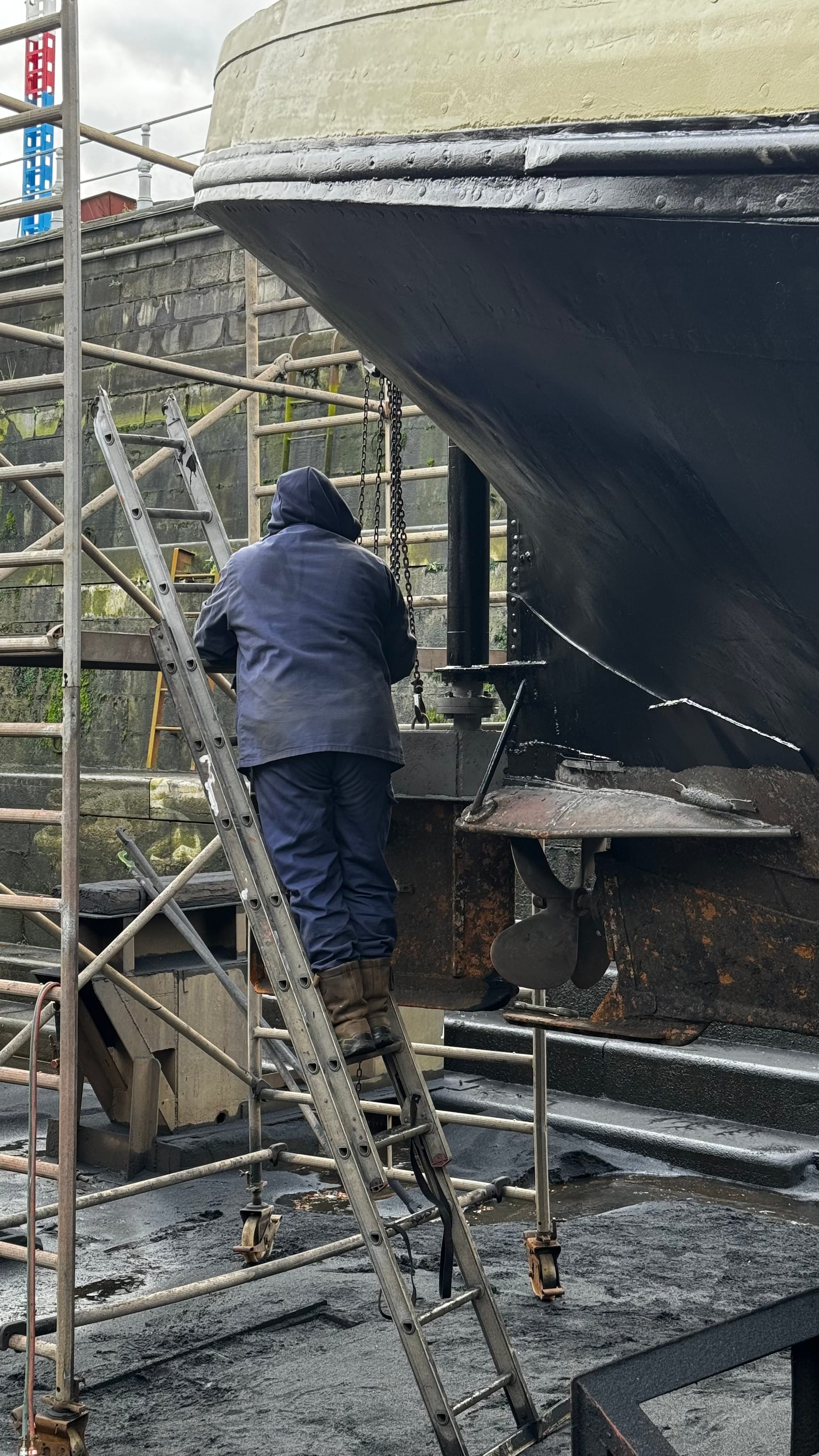 Next was welding. We spent two days on fire watch as the overplating was done in several spots on the hull. This is a tedious but essential job: You watch the glowing inside of the metal to ensure nothing catches fire. It's all good so far! The team is very good at what they do, and it's been a smooth process. We were relieved when we thought it was all completed on Tuesday.