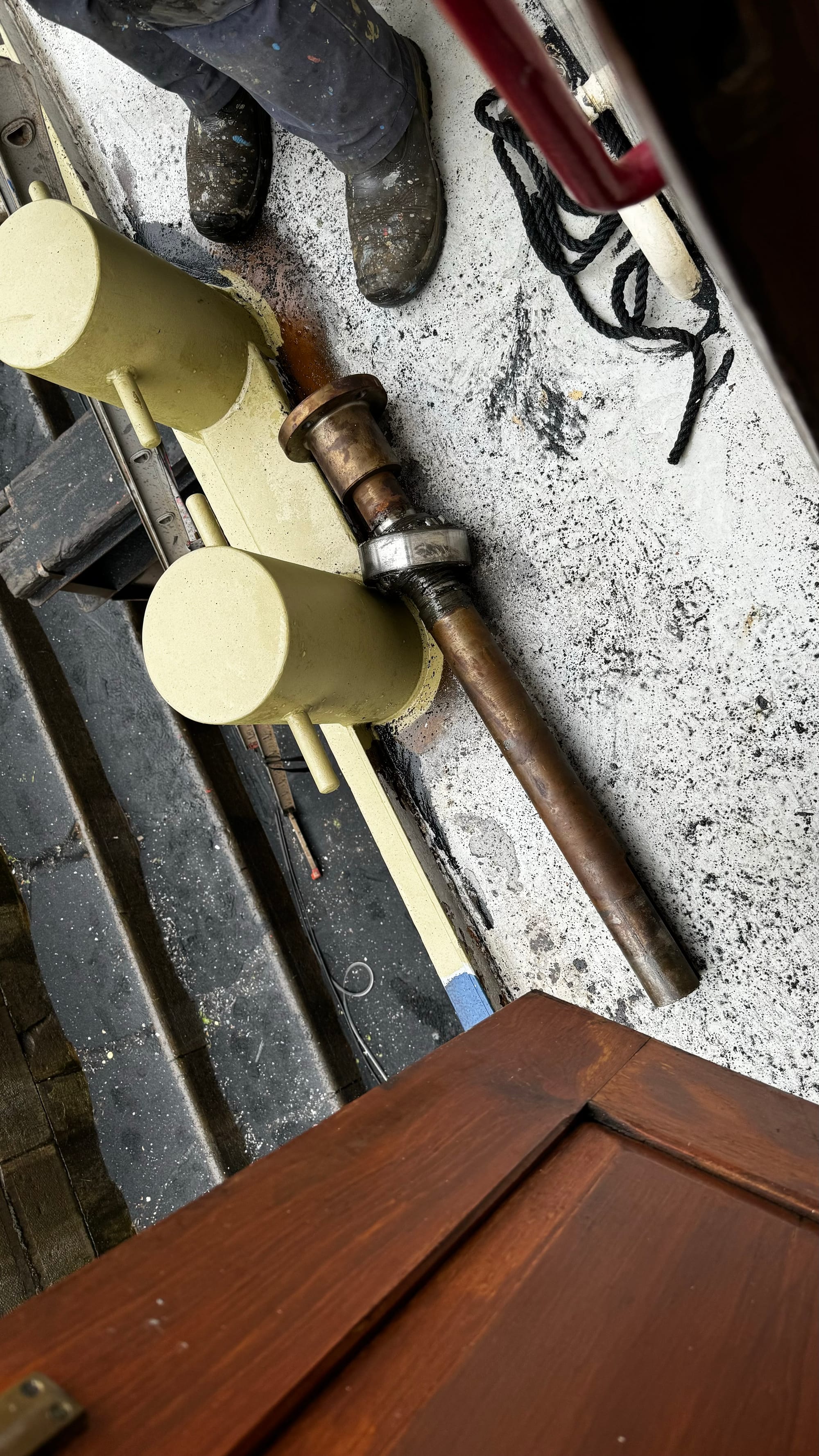 The prop shaft is replaced, overplating and sandblasting completed. The renewal of Clair de Lune continues apace!