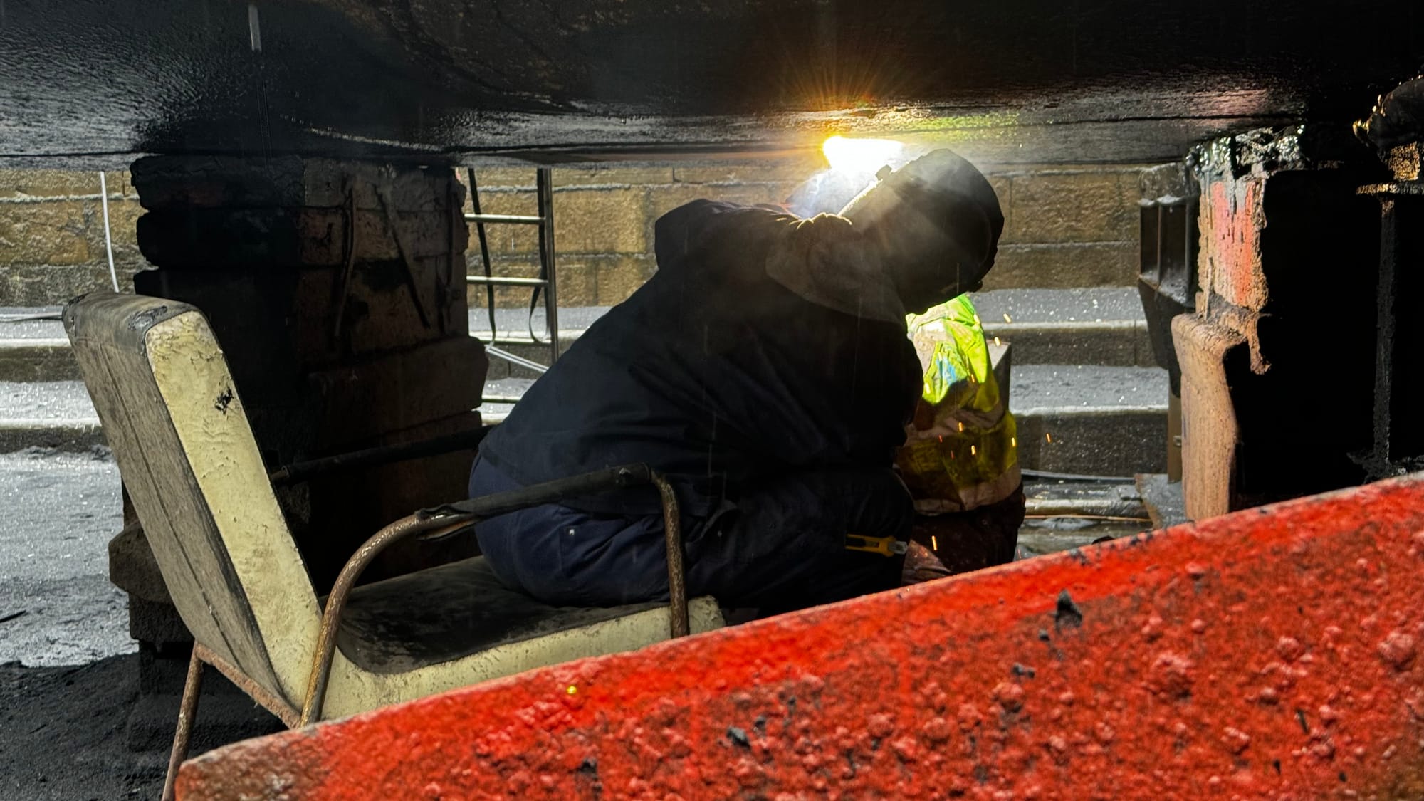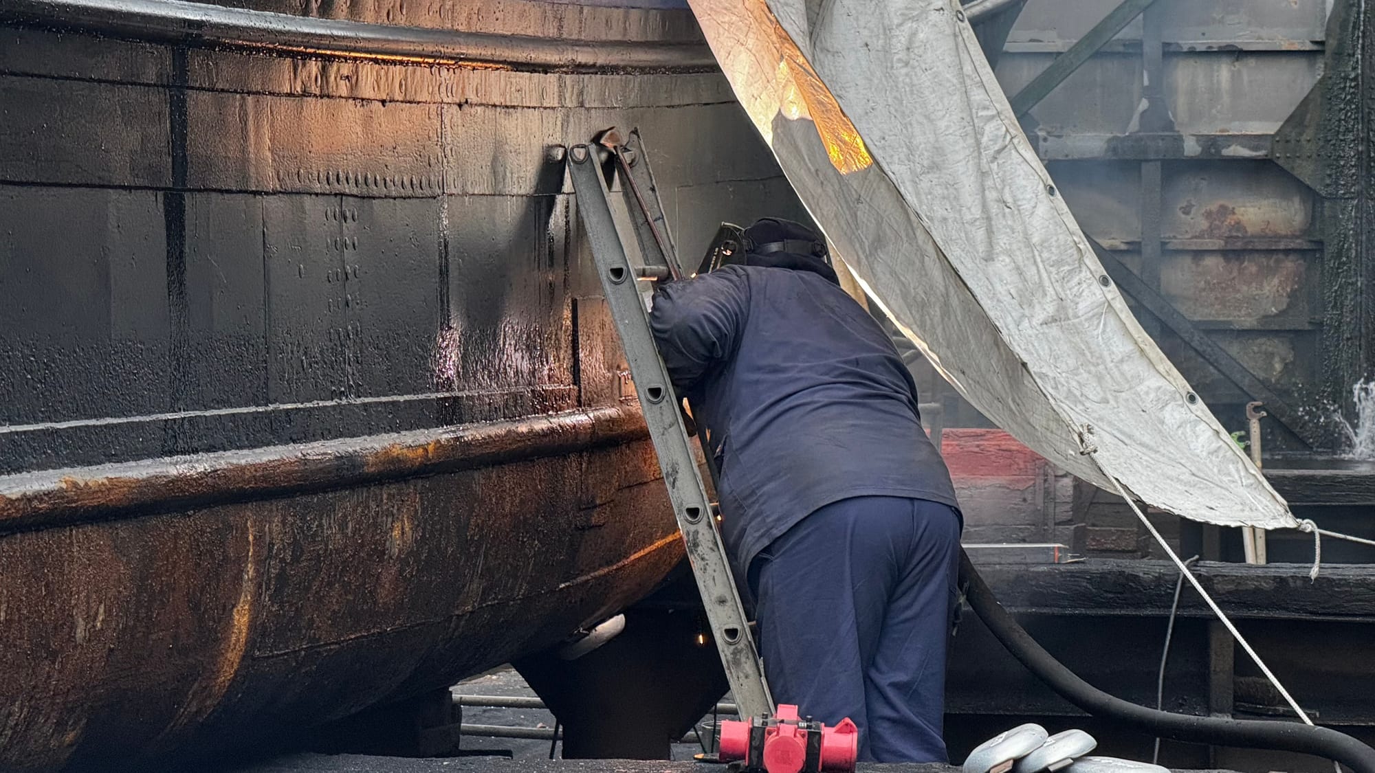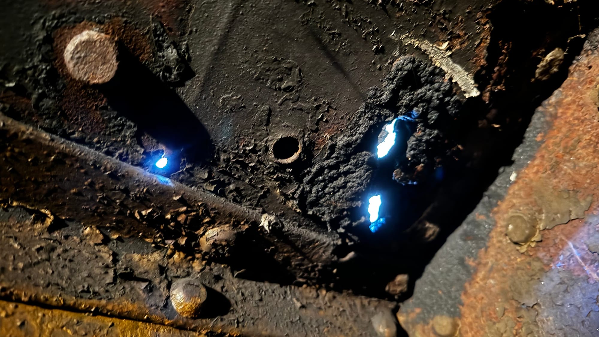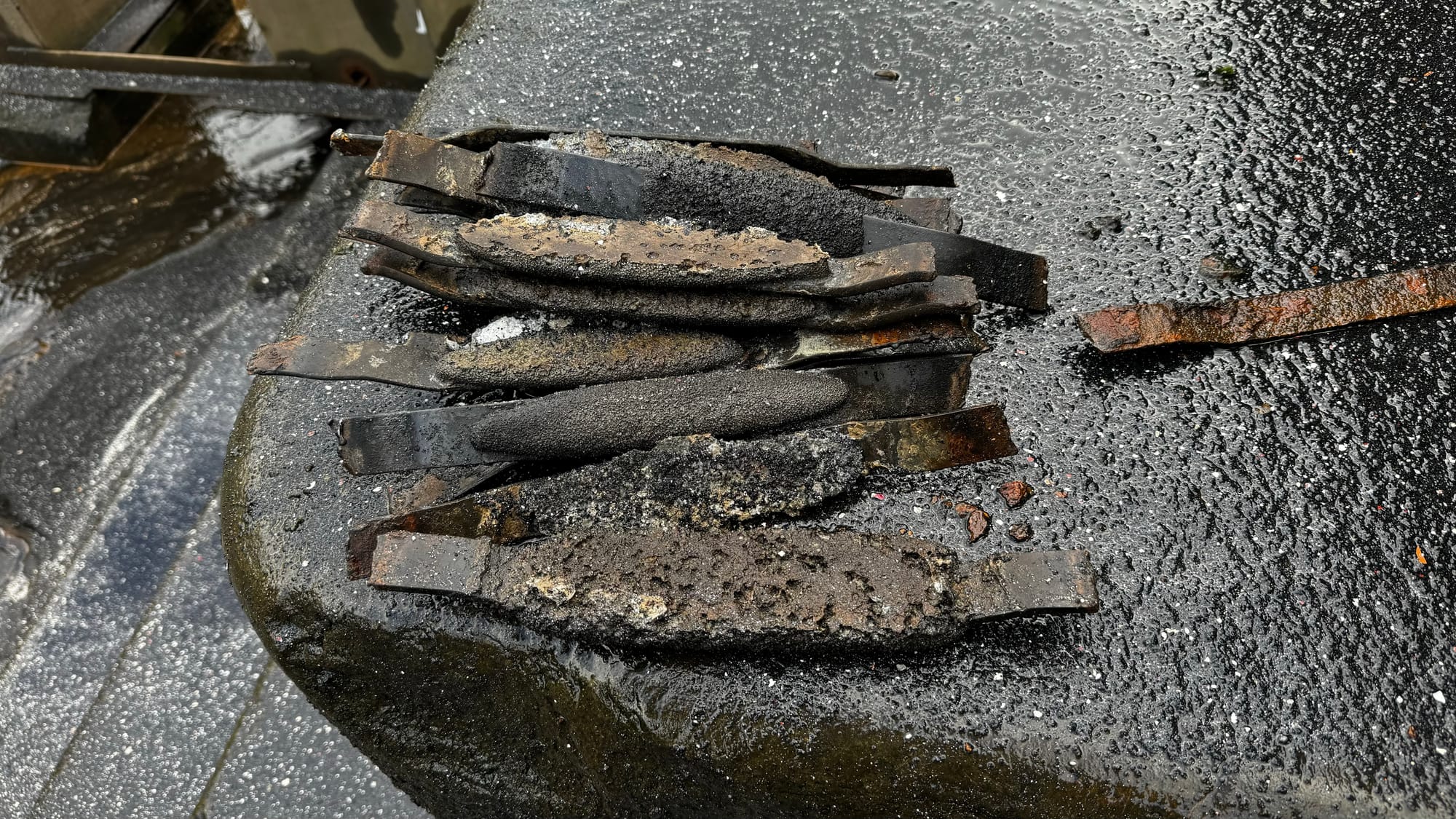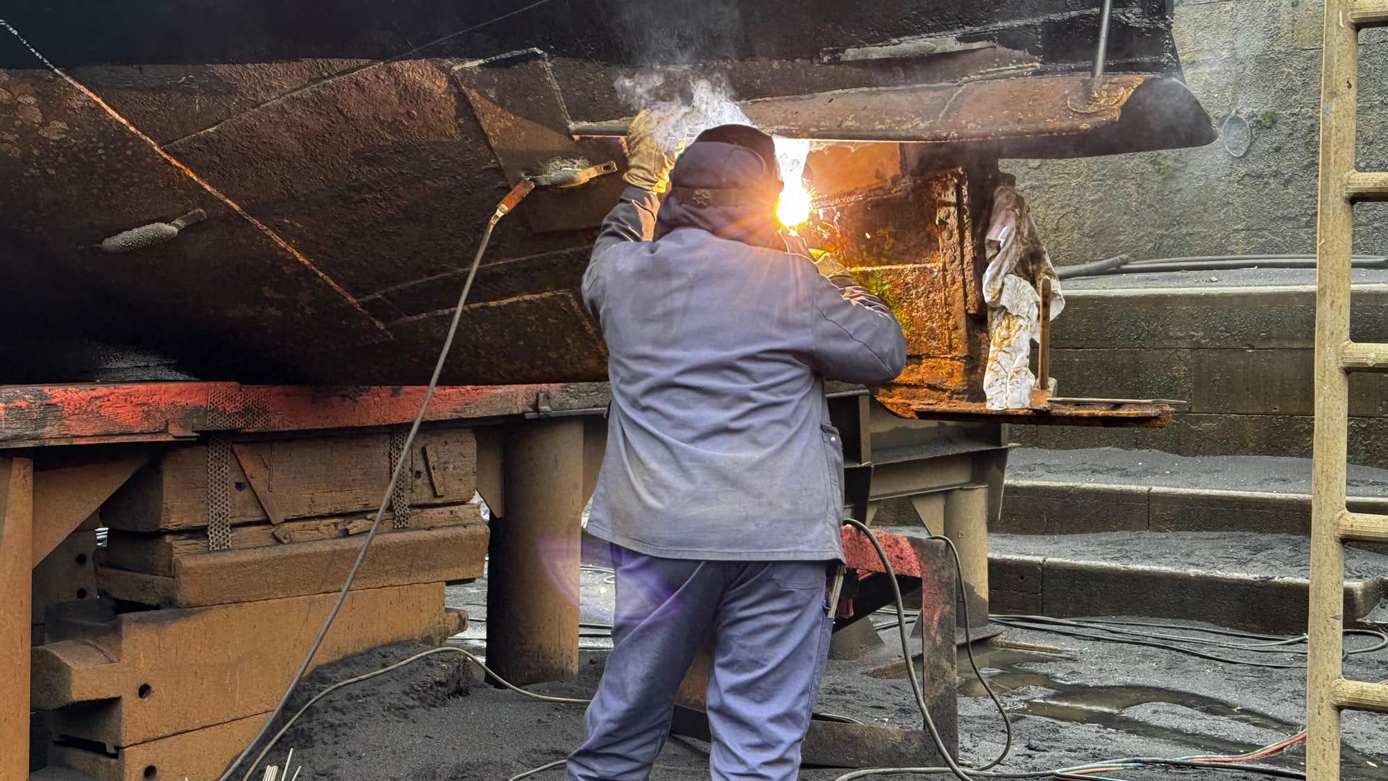 Welding new plates to the weak spots on the hull. New magnesium anodes.