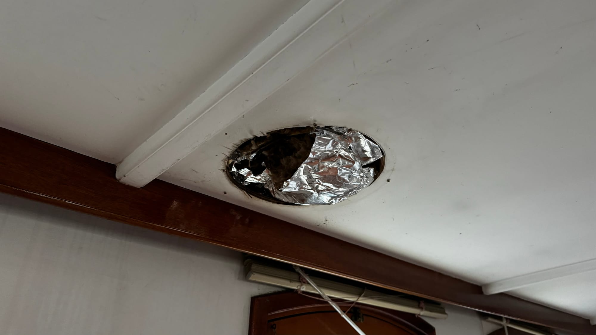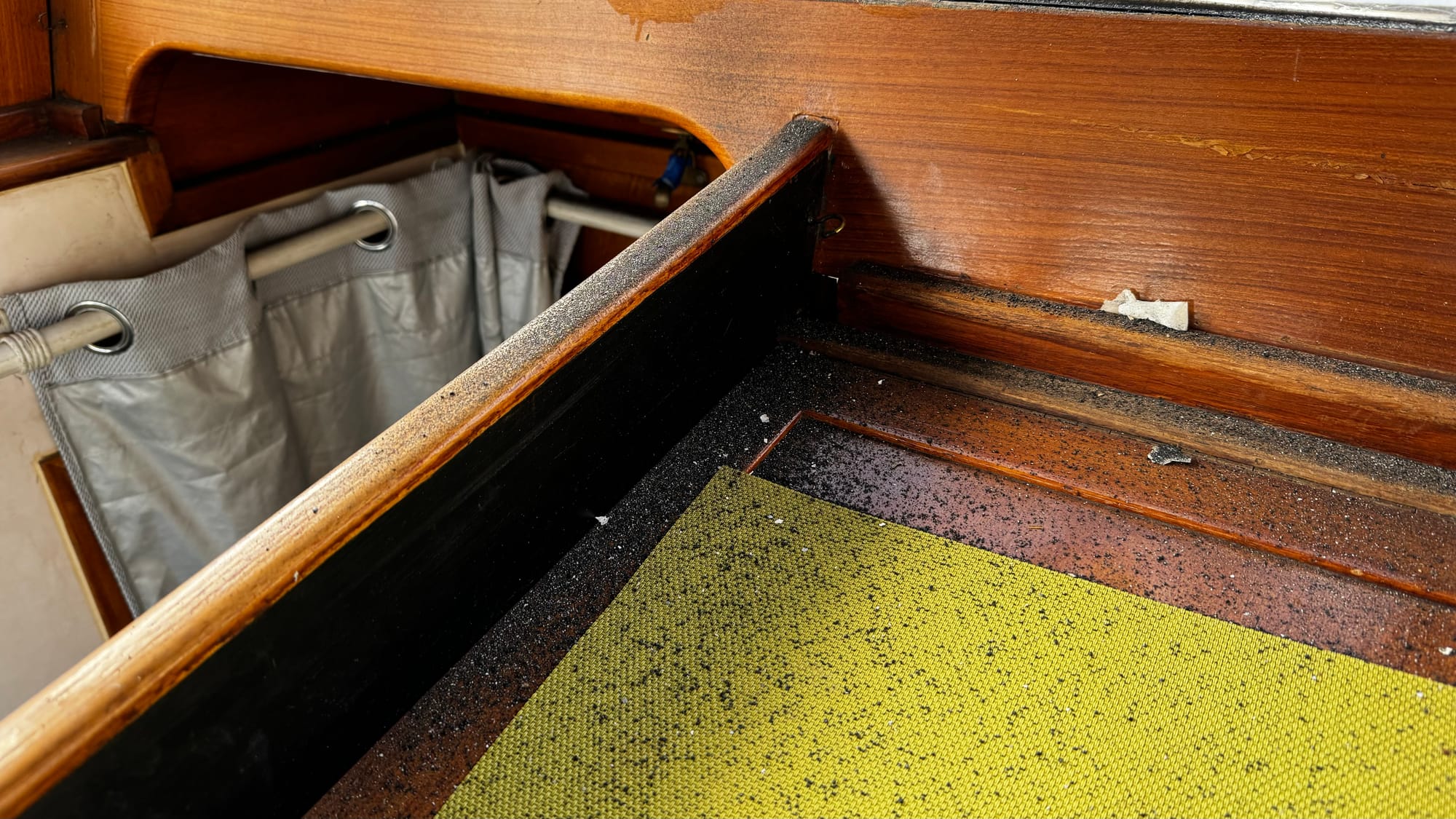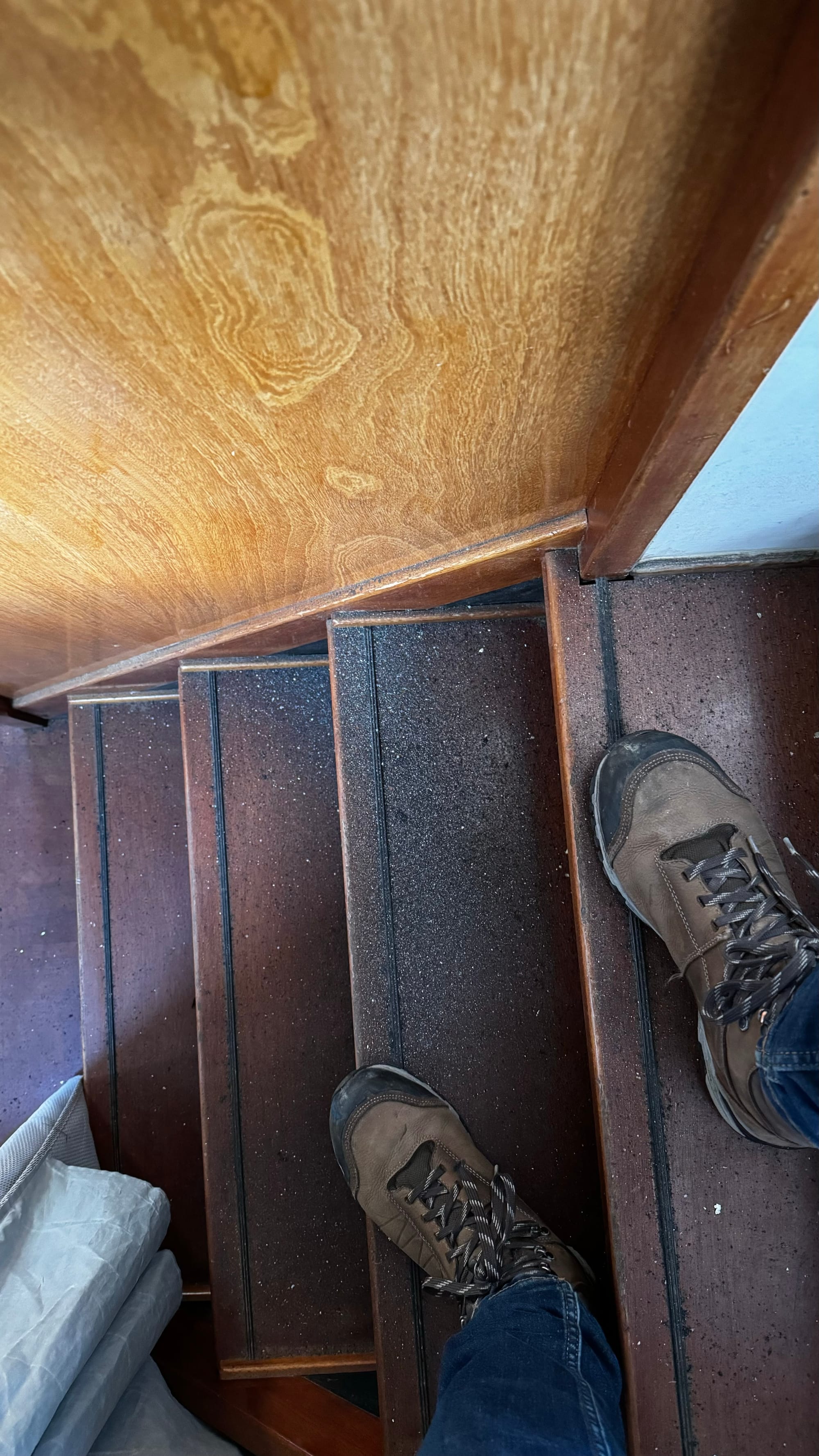 A very dirty boat full of sand, especially in the forepeak. Bringing some wool insulation to the boat to fill in some of the holes in the ceilings now the welding there is complete.