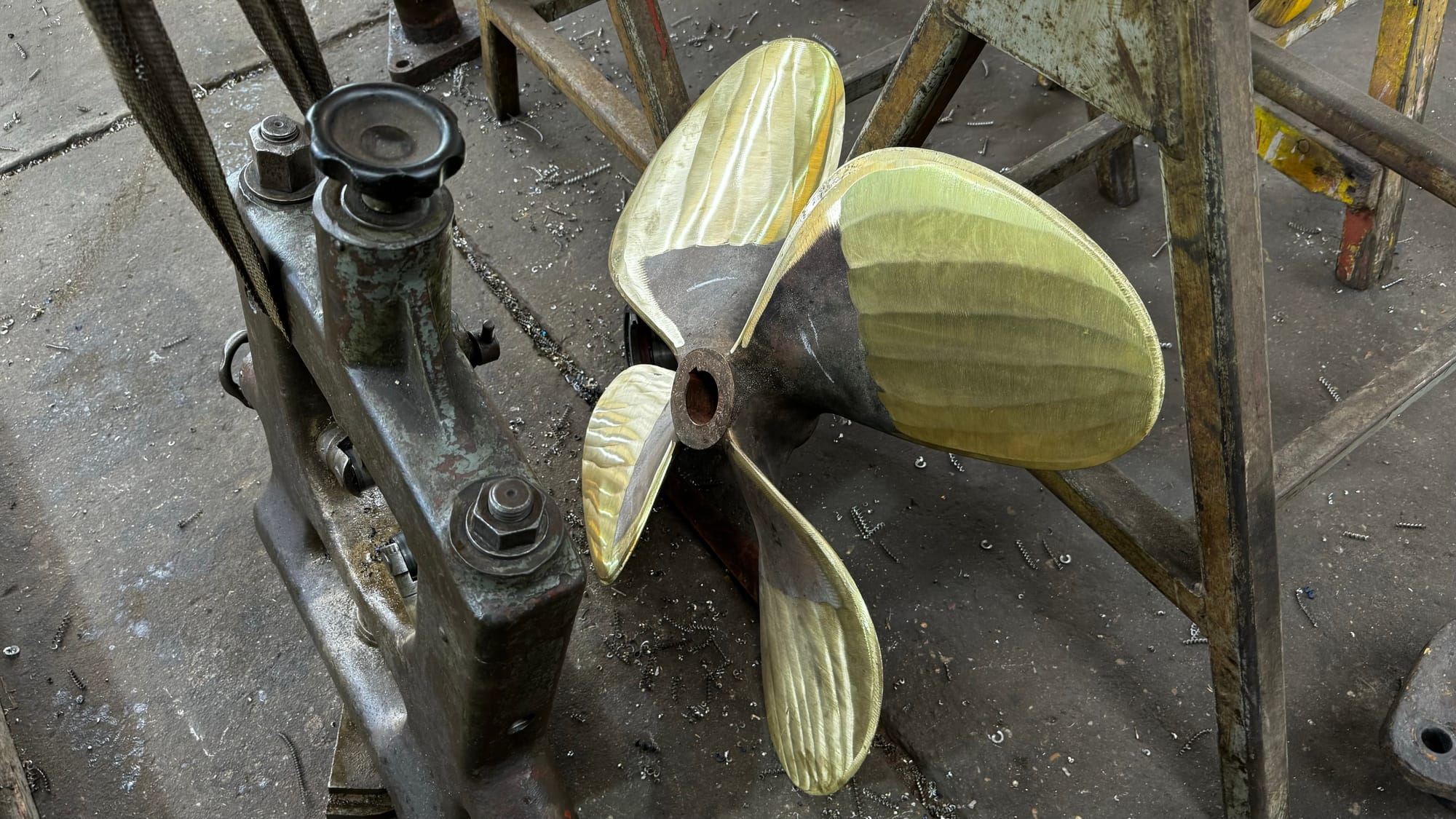 The propellor was sent away to be polished and rebalanced and has come back gleaming and sharp on the edges of the blades. Along with the replaced bearings, new shaft and seals and the other improvements, they estimate a 20% improvement in fuel consumption and a reduction in engine noise. We're excited to find out!