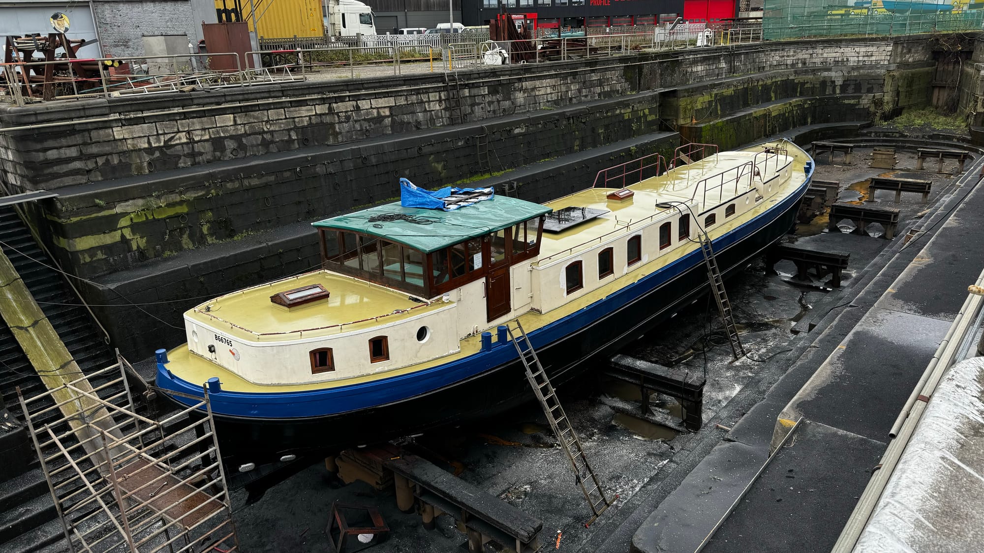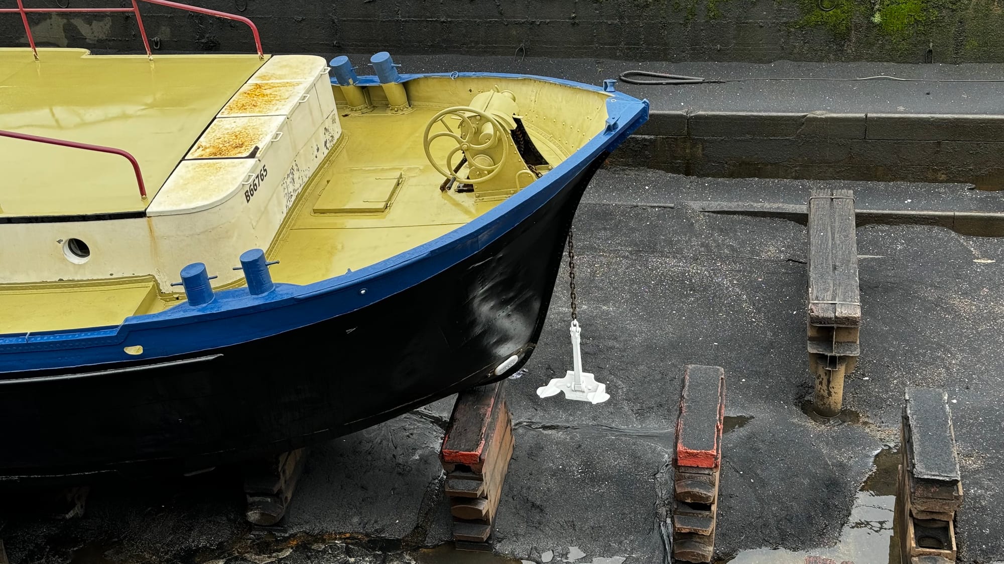 The problem is the bits (bollards) at the bow, they let dirt behind them which rusts through. We've cleaned them out now and we're going to plate over the front so no more water and dirt goes behind.