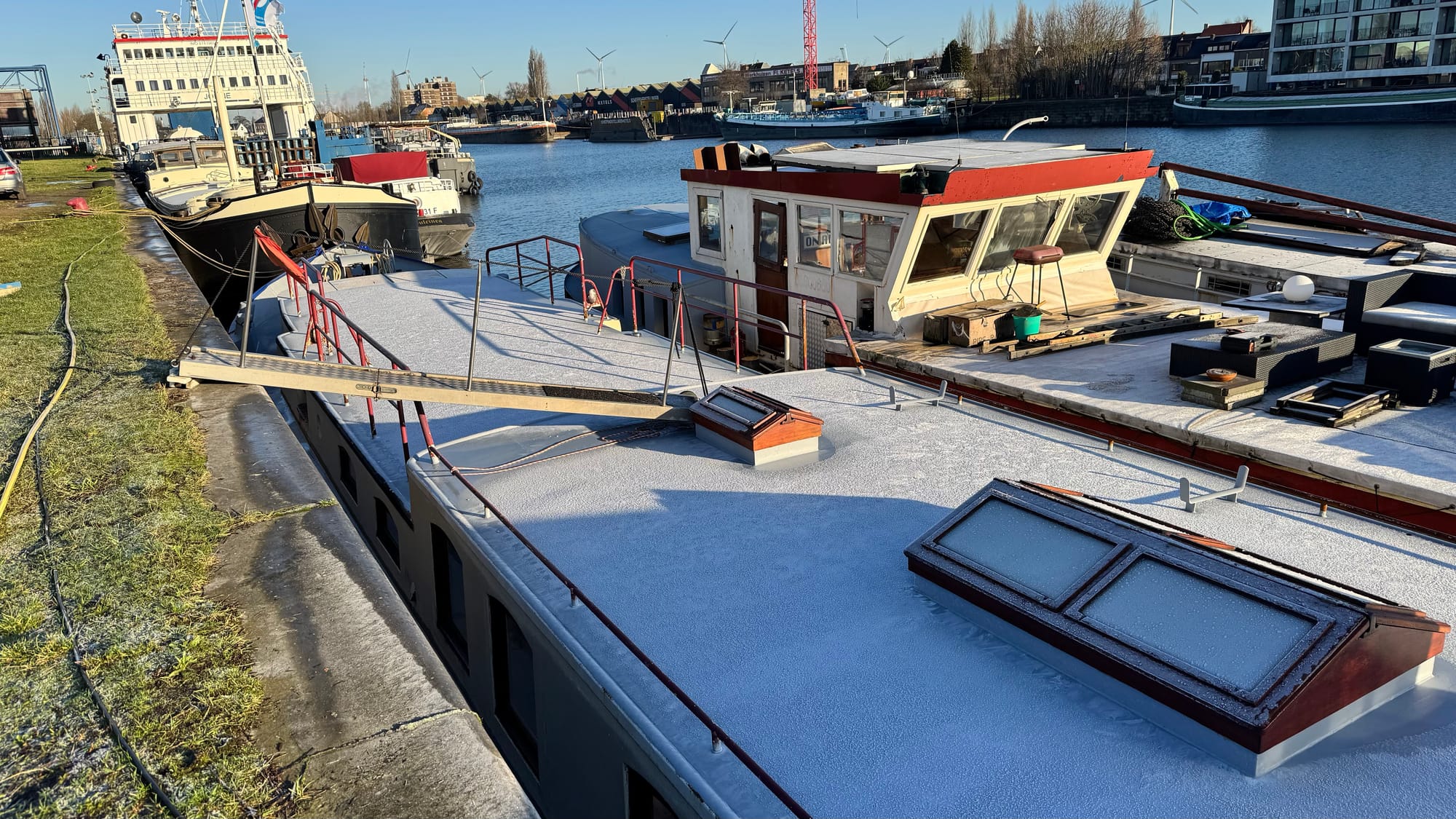 Back to Delfine, covered in ice on a chilly Belgium morning.