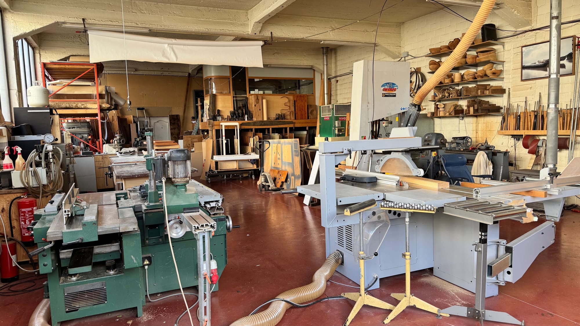 I visited Simon at his workshop to borrow his table saws and remake the wooden insert for the wheelhouse console. The first one cut at the hardware store wasn't quite square. Also, I'd picked the wrong material–a few weeks ago, and the MDF had bowed. Simon recommended plywood instead (and also not to store it standing long end up!)