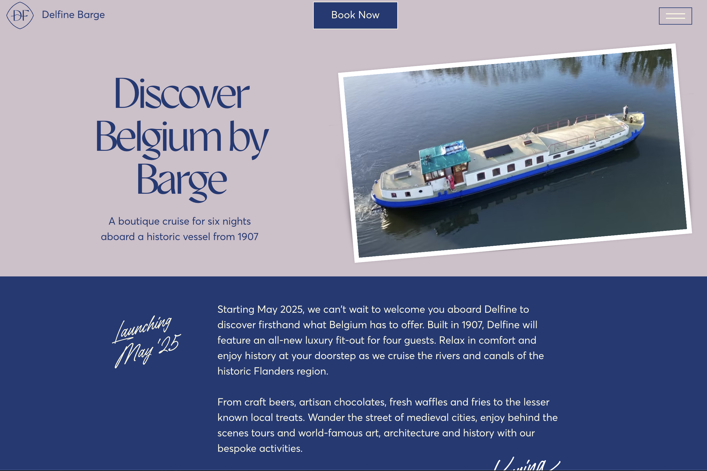 Welcome to delfinebarge.com! The site is still "under construction," with some legal bits and bobs to go, but the essential functionality exists. And yes, we're ready to discuss bookings now if you want to join us this year. We'll also offer early-bird discounts for those willing to test things with us early on.