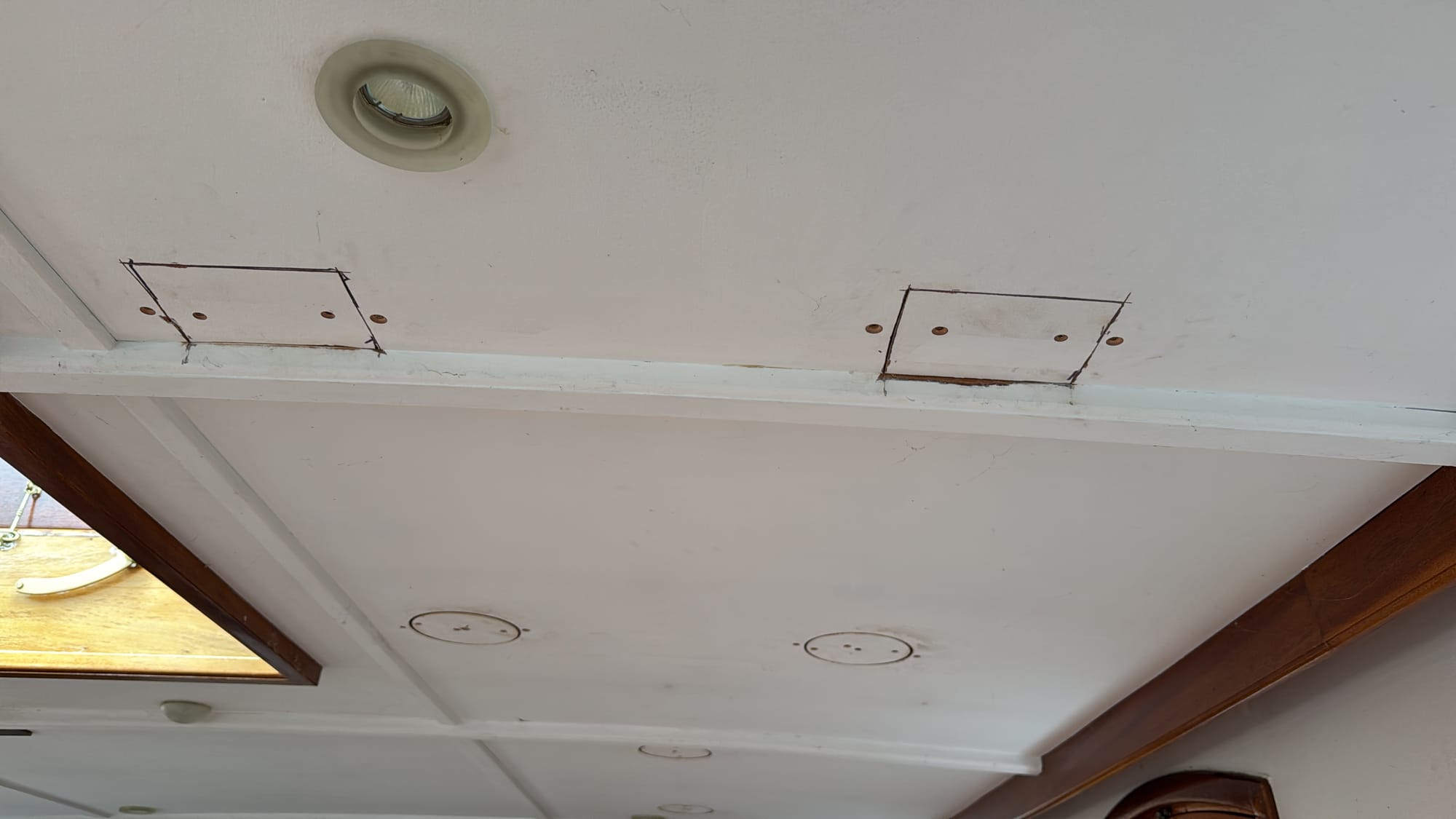 Besides helping out with the various trades that came by, I've been focused on filling and patching the holes we've made at different times. Many of the holes in the ceiling are now filled, and we're experimenting with the best way to fix them. The concern is that the boat will move, so we want it to have some flexibility; otherwise, it will just crack and show the holes again.