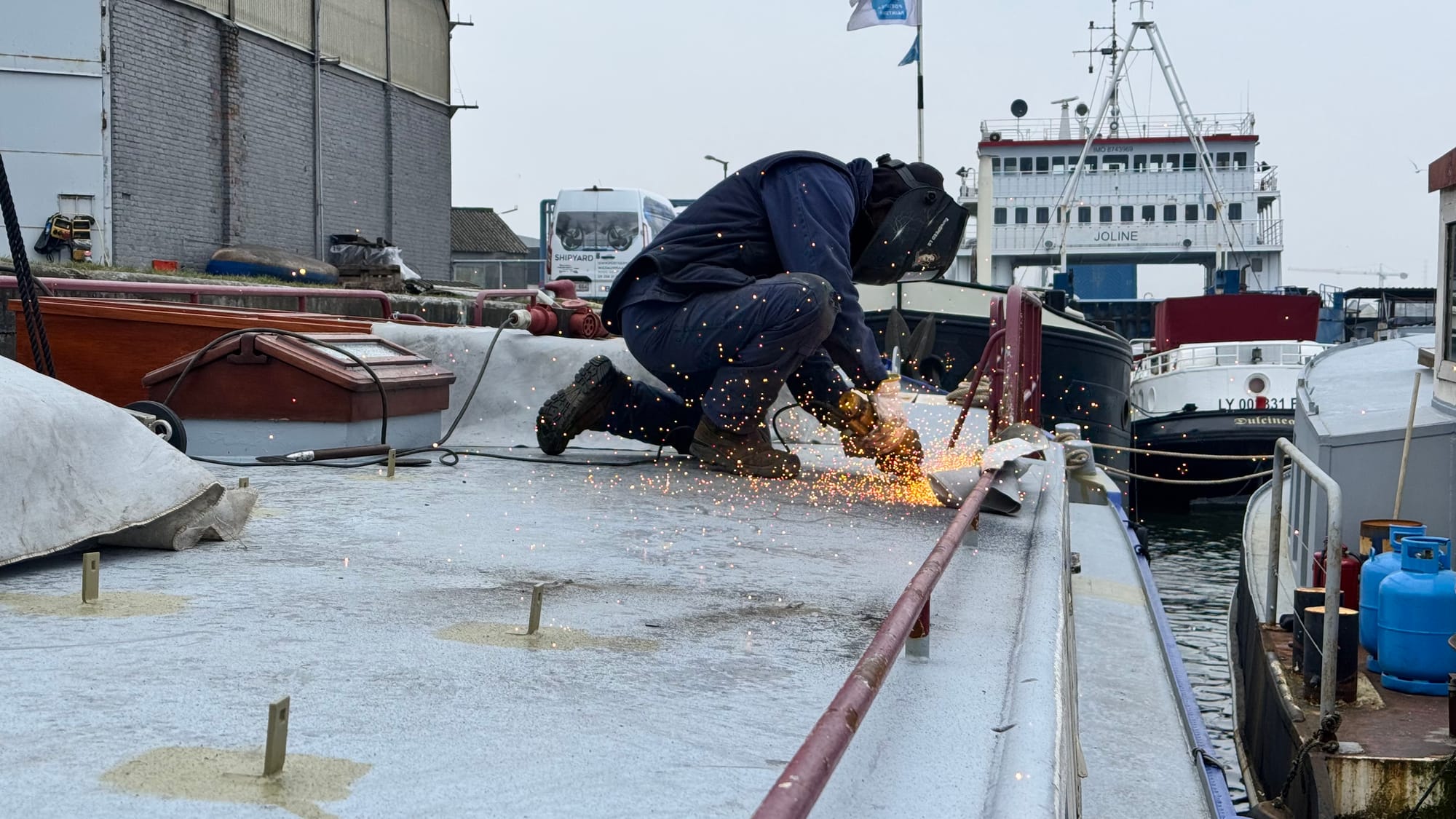 Monday was very cold, and we were about to leave for the day when the welder became free. Karina headed home while I waited for him to finish. We patched a couple more suspected minor holes in the deck (we were not 100% sure if they were leaking, but it was easiest to weld over them and be sure) and removed the mounts for the gangplank. We're unsure where it will go, but we're confident it won't be where it was anymore 🤣.