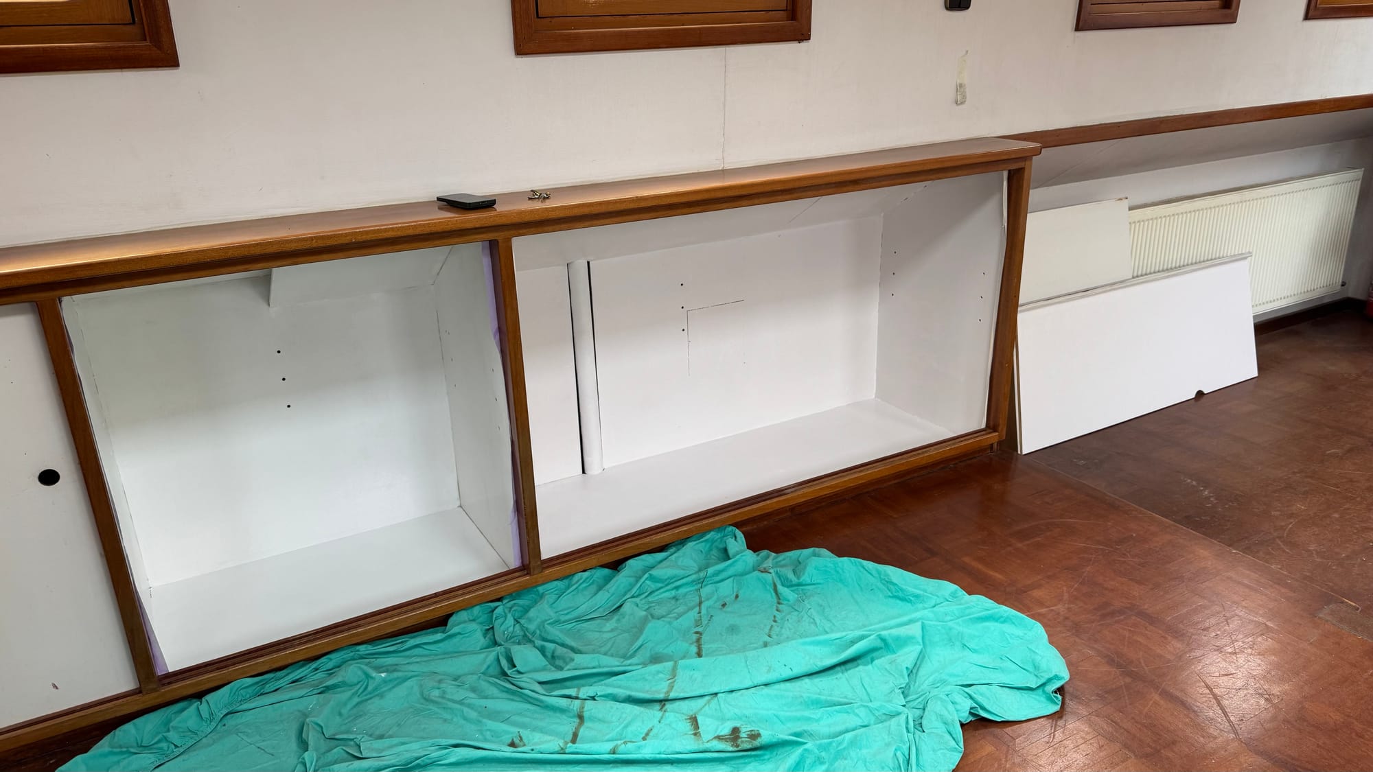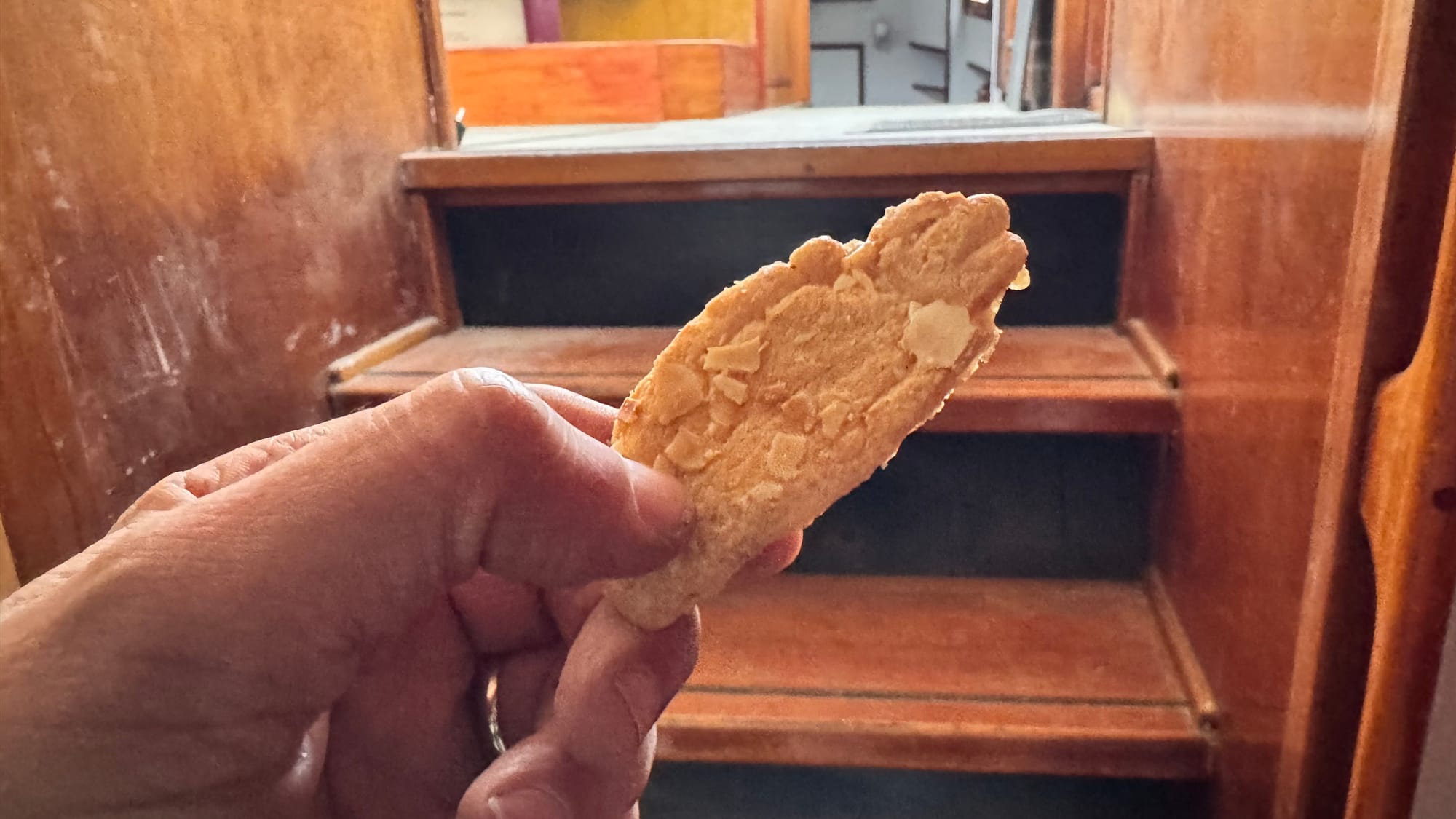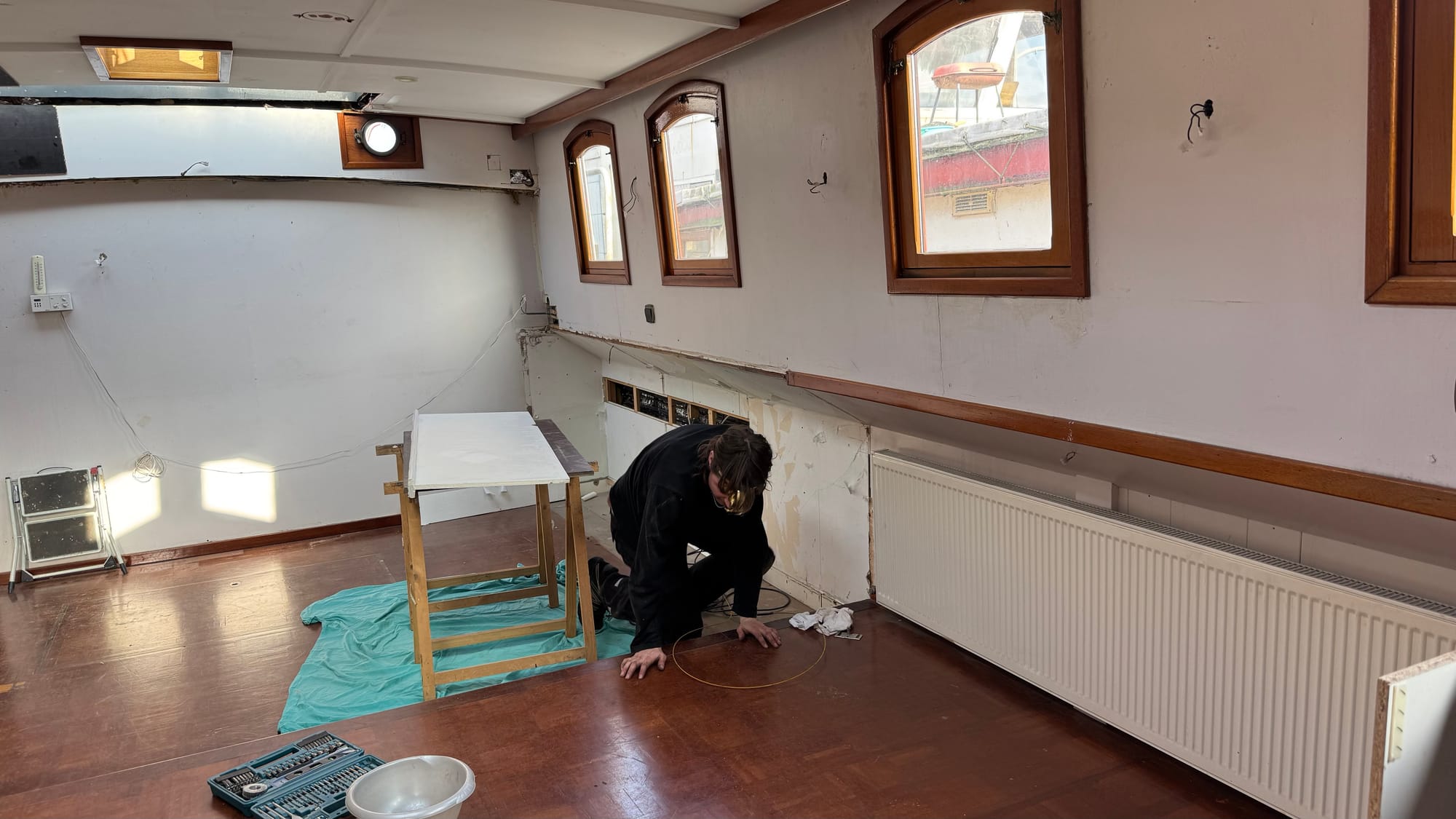 On Saturday, we took it slow in the morning and went to Ma's Bakery for a cinnamon roll and coffee before doing more work on Delfine. One more extensive project we've been working on is on the side of the stairs. The new Victron energy console sits there, and we've patched and levelled it so it fits snugly. We intend to paint the wall black to match the console (also because the wood there is a little too damaged).