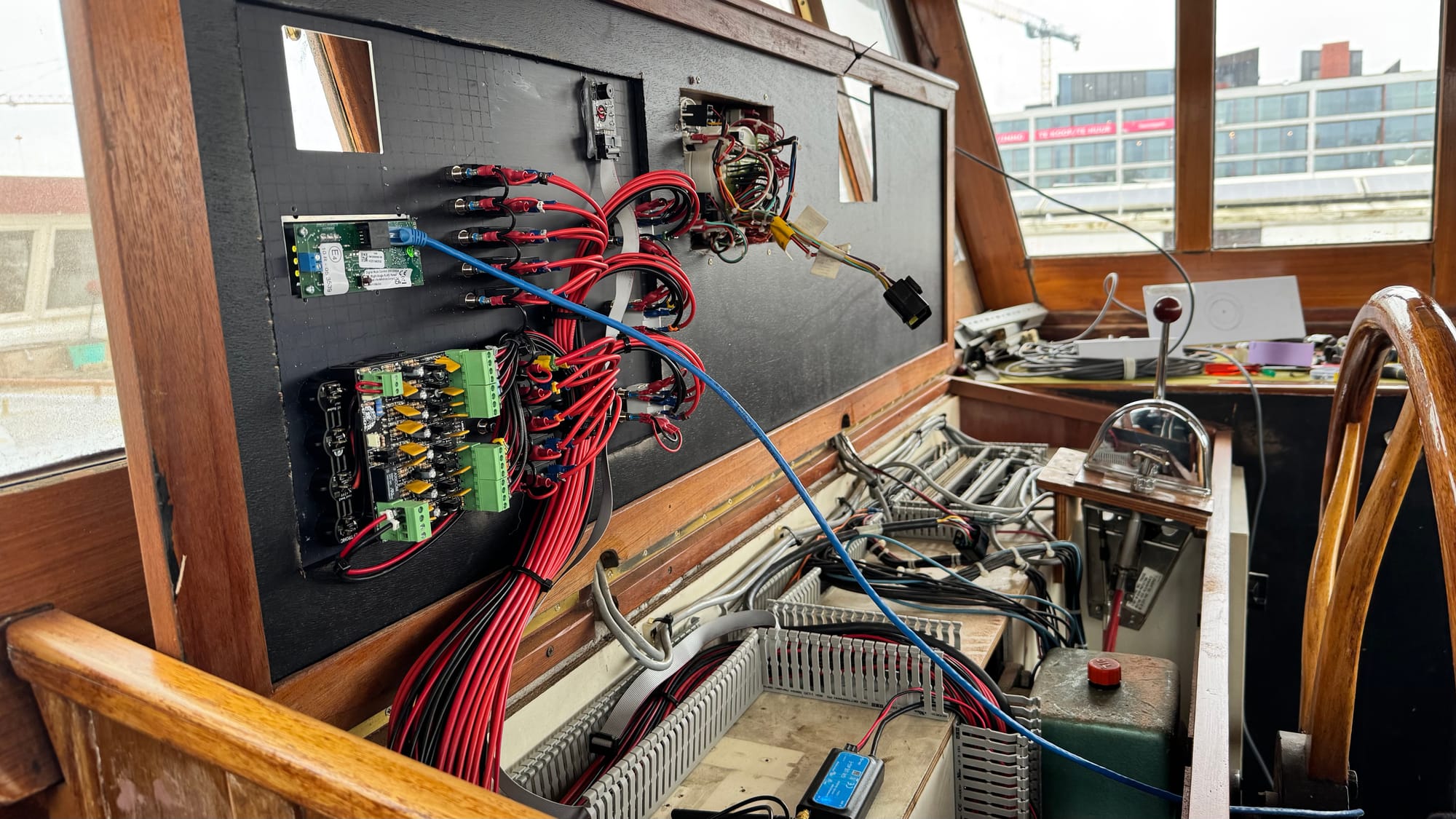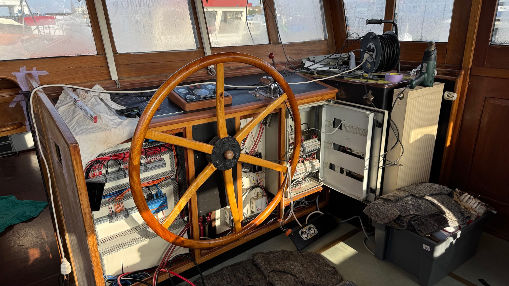 The challenge is selecting the finish for the wood trim. We started on the console and did a varnish around the edge of the console and the mount for the engine controls. But we've never been thrilled with it. Faced with the new and prominent zone alongside the stairs, we finally admitted to ourselves that the work we'd done wasn't good enough and needed to be redone. So I dismounted the engine controls, took the wood panelling, and sanded it back. We will try a different approach – staining the wood and then applying a high-gloss 2-pack varnish over the top, which should give a more professional and authentic "boat finish". It's annoying to redo something we thought was complete, but now is the time to get it right before we go further.