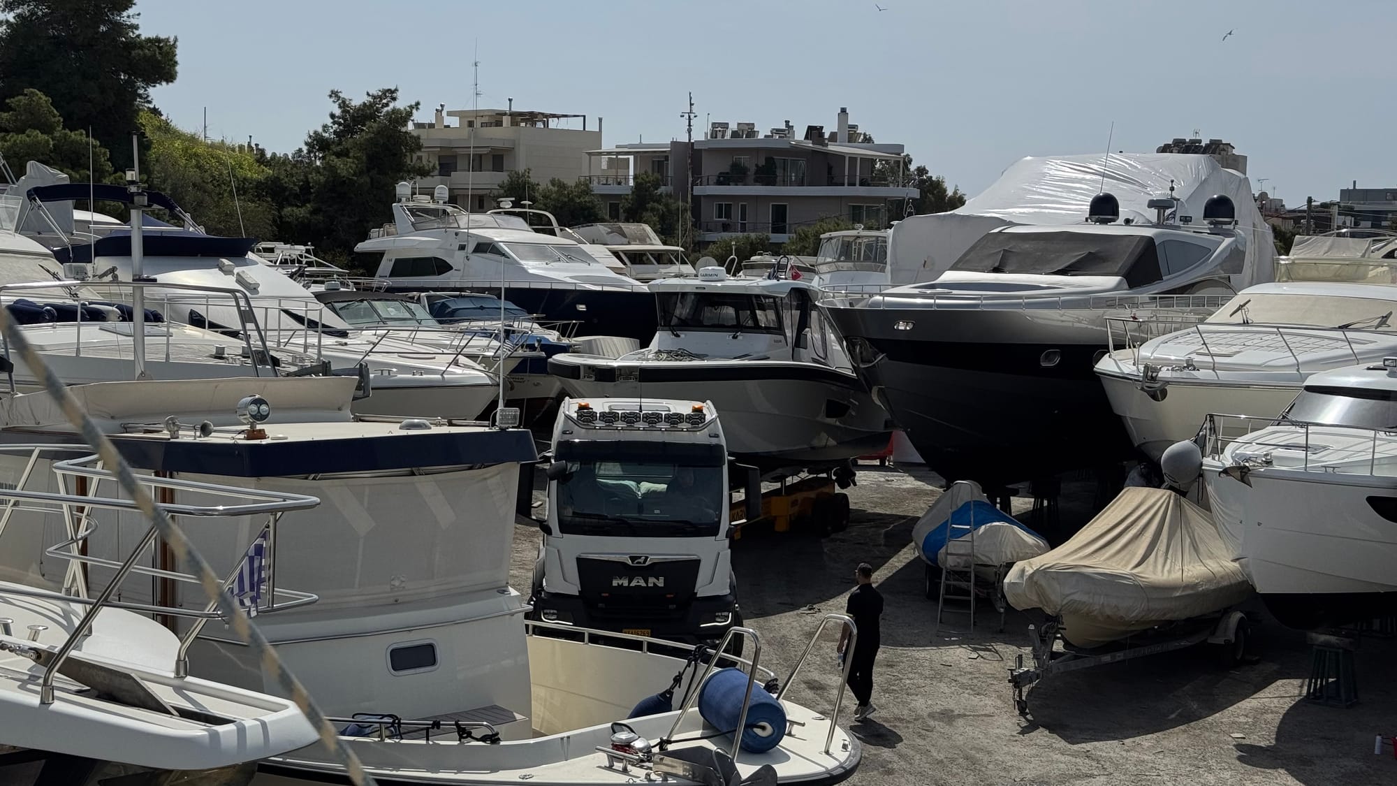 Then, on Tuesday morning, it was up bright and early and off to Greece. At this point, I am feeling very stressed and apprehensive. There's so much that COULD go wrong, is it all going to fall into place? Our bank accounts in Greece were locked out (Know Your Customer requirements and not being able to solve it from Belgium), we didn't have a spot to put Matilda for the sea trial, we had lots of meetings and of course, the boat to prepare.