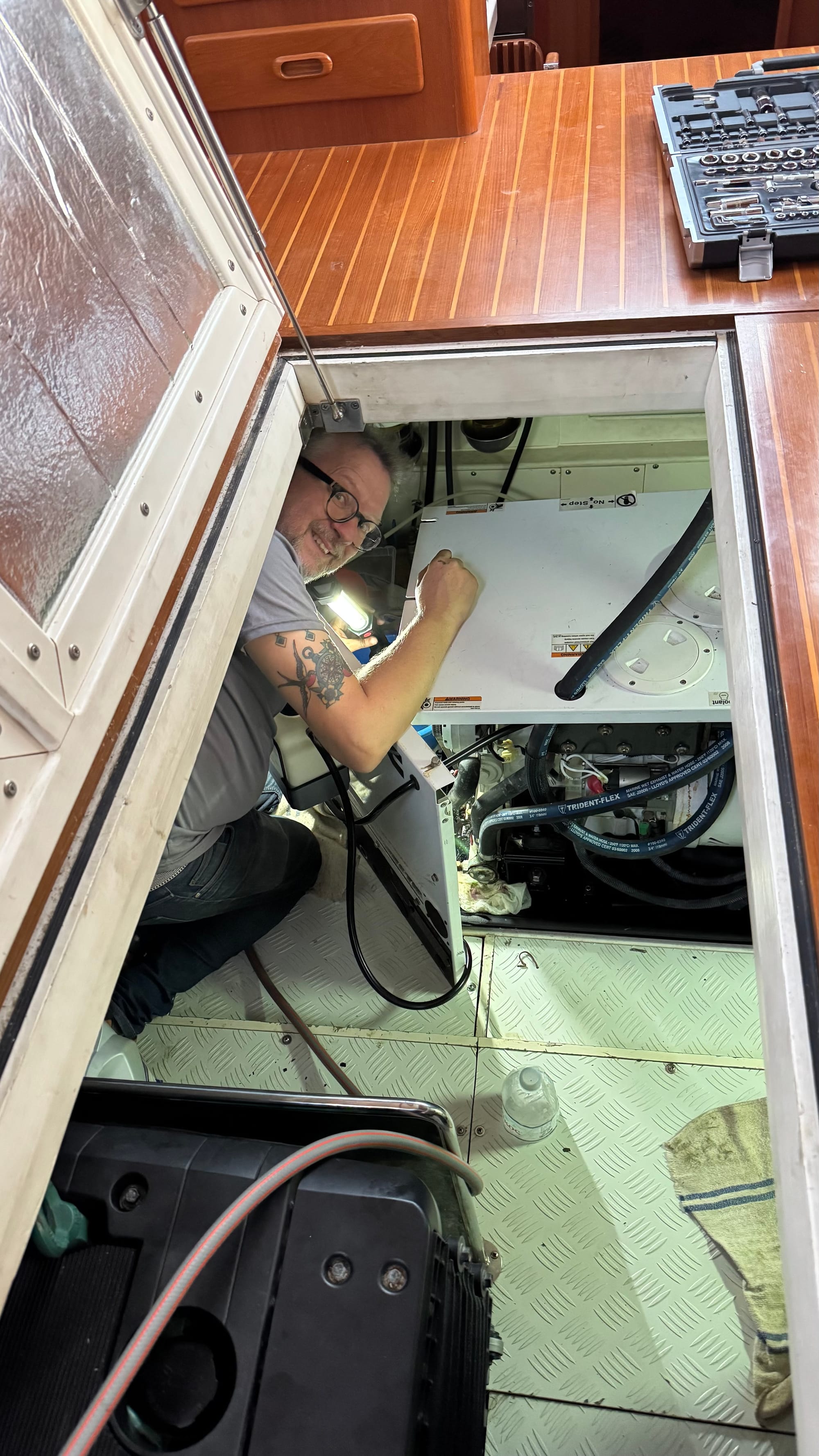 We headed off into the gulf, and tested things a bit, running her up to cruising speed and faster. Everything seemed to behave. Then I started the generator, which stopped with a "Raw Water Flow" error. That was something new! Happy all the other systems were behaving, we headed into the marina and docked up, then started to tackle more jobs.