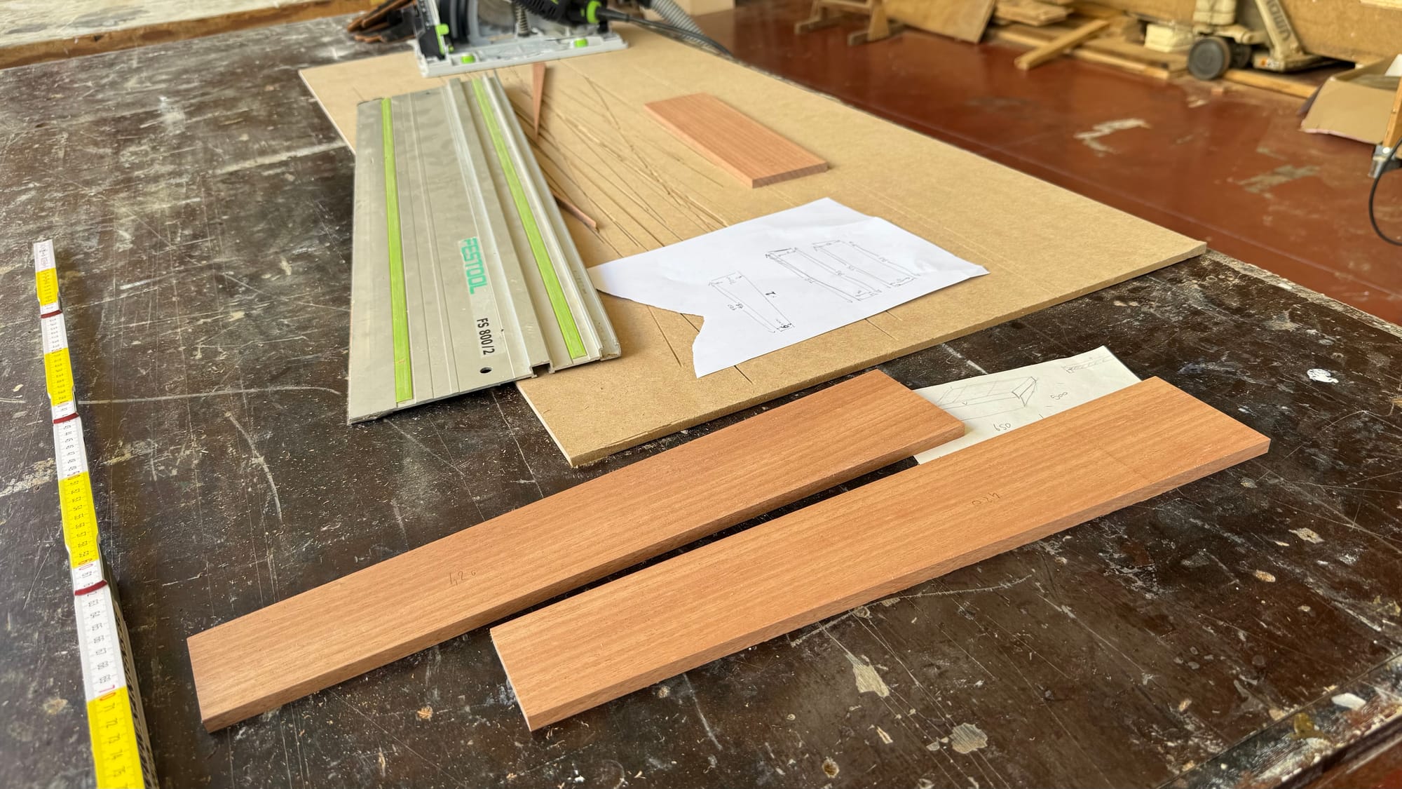 Kaizen is cutting me some wood to make up some trim for the bathroom in the stern cabin. I measured, sanded, designed, routed and installed it.