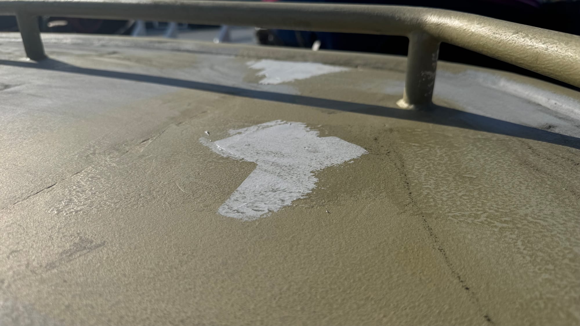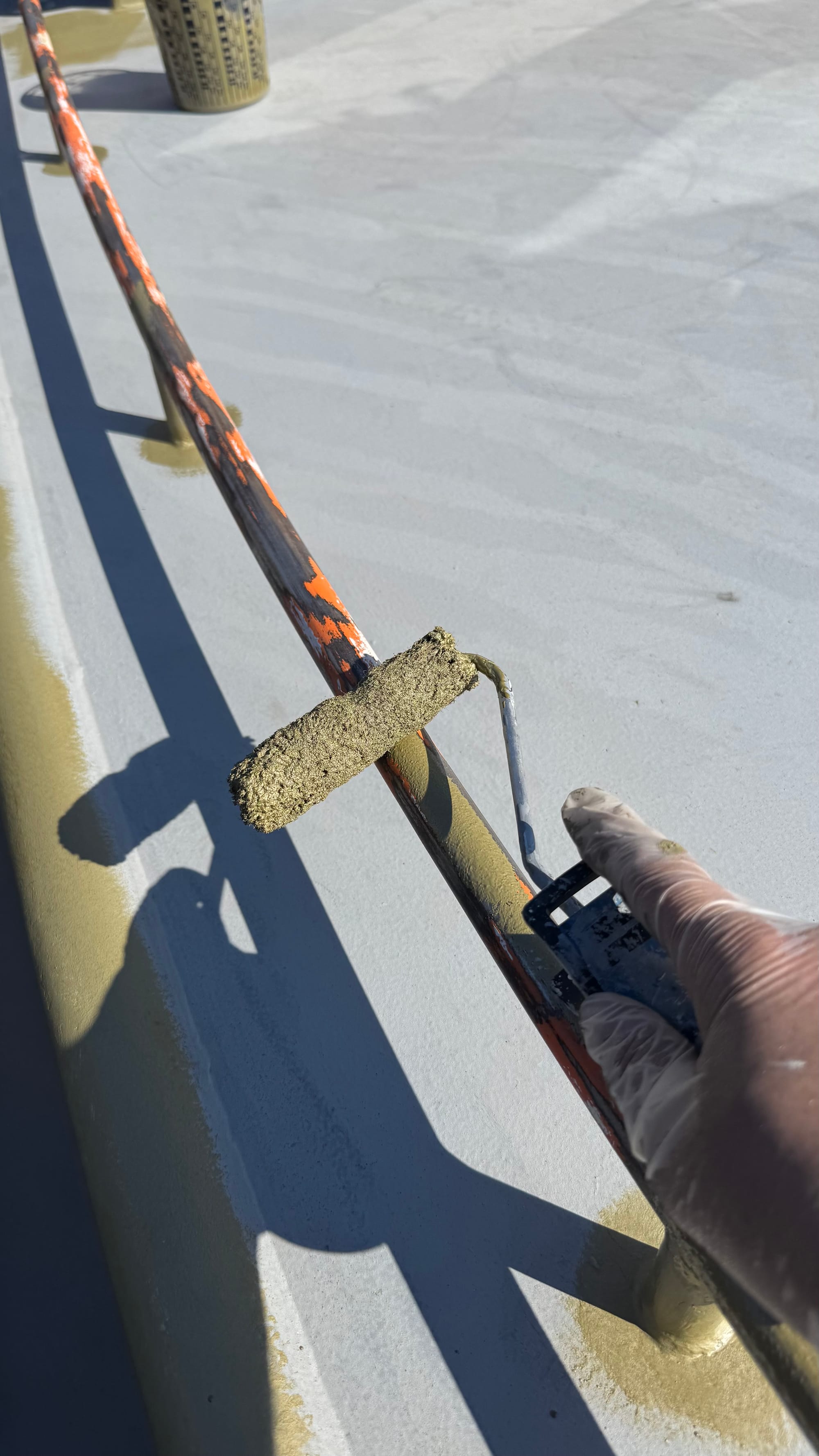 Friday, we put on the "between layer", which is the final colour, and then Saturday, we put on the first of the finishing layers. We're debating if we can get away with one finishing layer or two. It's one of those things where, in our hearts, we know we should do two, but one will probably do.