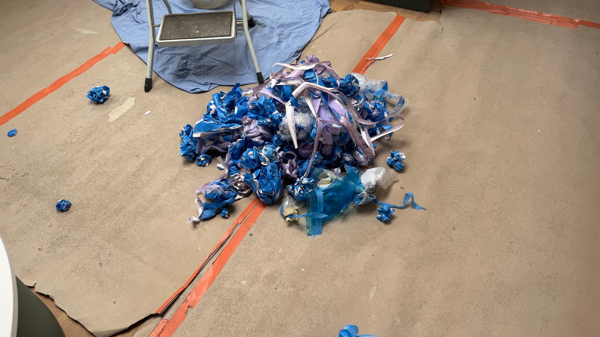 Before and the mess of tape after. A bit like Christmas says Karina. Lots of unwrapping.