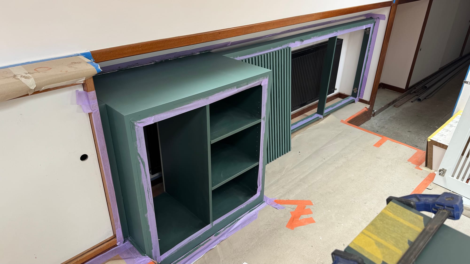 The slatted doors that cover the radiators are a bugger to paint. It takes almost an hour for each door, and the coverage isn't as good as we'd like. Spray painting is the way to go! Rather than investing in the gear for this one-off job, we asked at our local paint shop, and they can make up aerosols for us in any colour. So, we plan to spray paint the next couple of layers, which should be a lot quicker and simpler.