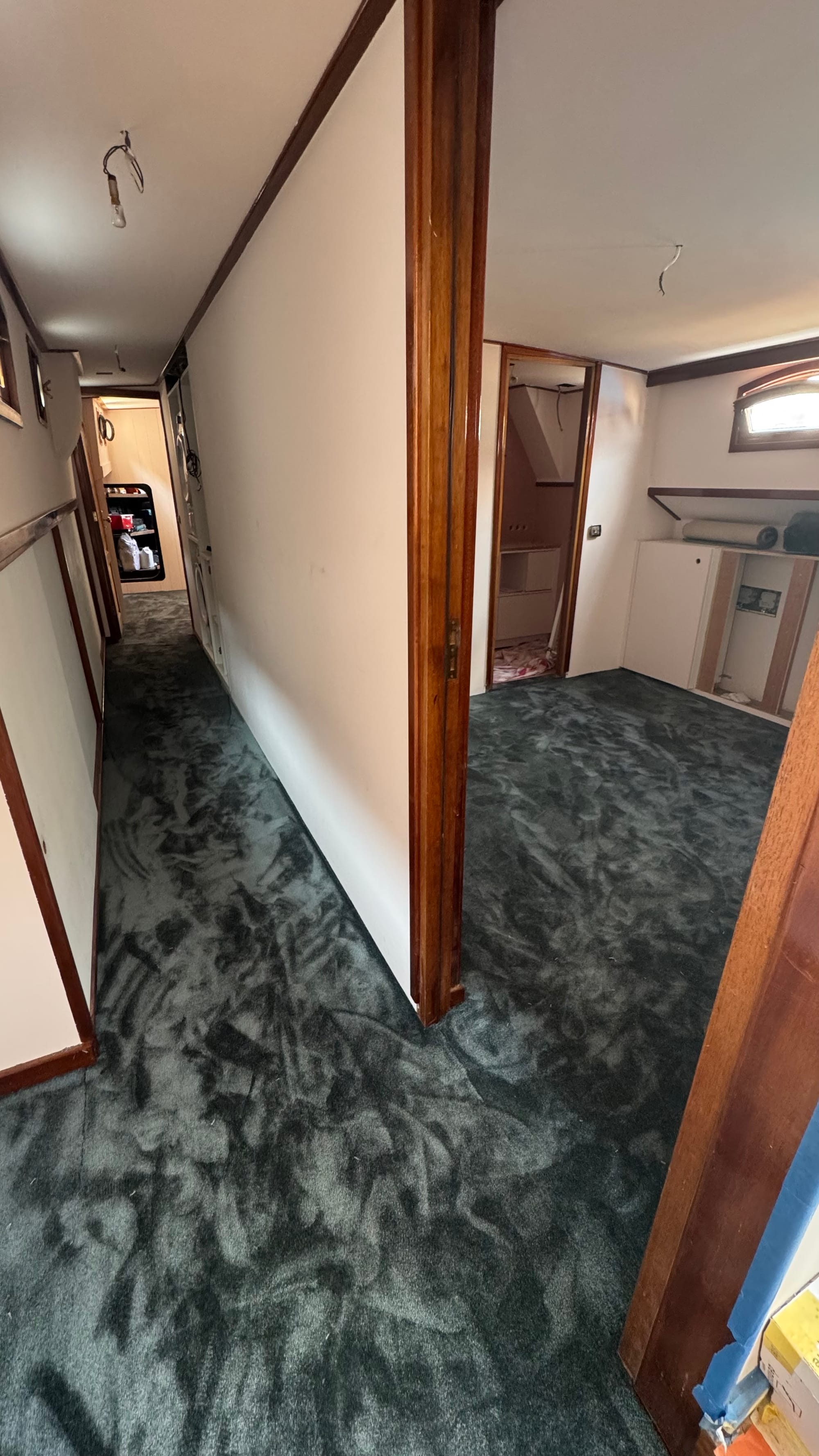 With the carpets arriving, our focus shifted to ensuring the rooms were painted. It's so much easier to paint walls and ceilings when you can drip on the floor! With the Albert cabin complete, we've now finished painting the interior of both guest cabins, the corridor, and 90% of the living area.