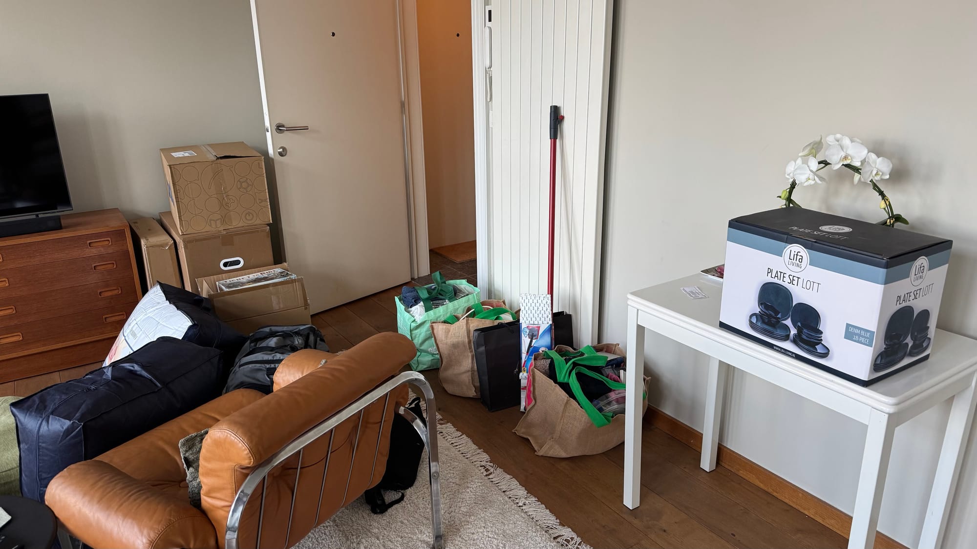 On Saturday morning, we hired a Cambio car to transport a load of items from the apartment to the shipyard. Then, Karina unpacked and set up while I ran errands, including picking up a shopping order, taking more trash to the recycling park, and then returning the Cambio and riding out to the boat.