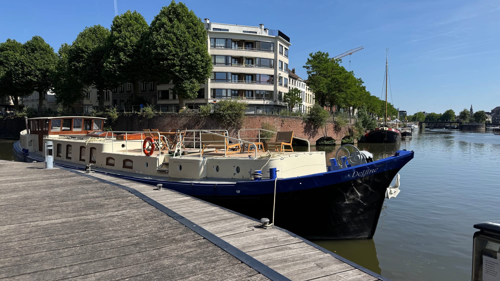 Which we are. By spending the week in Portus Ganda, in the heart of Gent, with our daughter, Ella, and her husband, Inge, and for a few days, his mother, Gro. It's exciting to have them aboard as our first guests on Delfine.