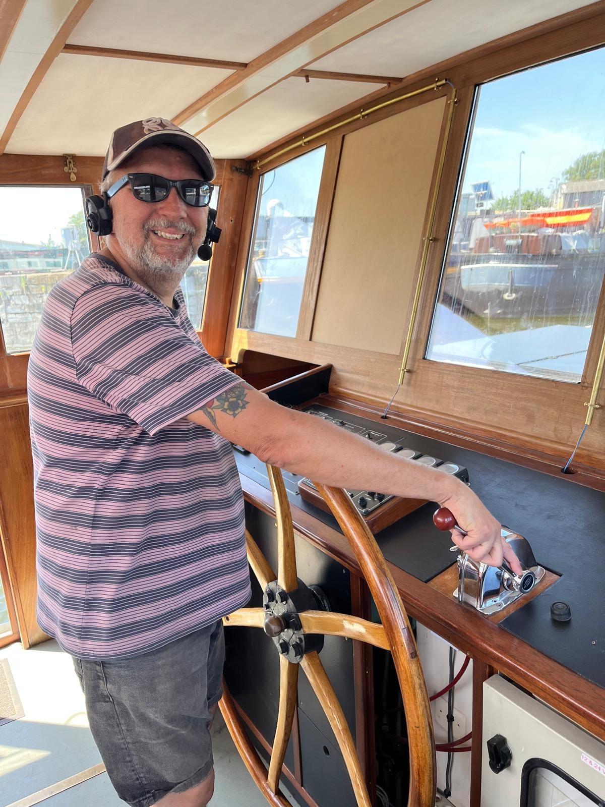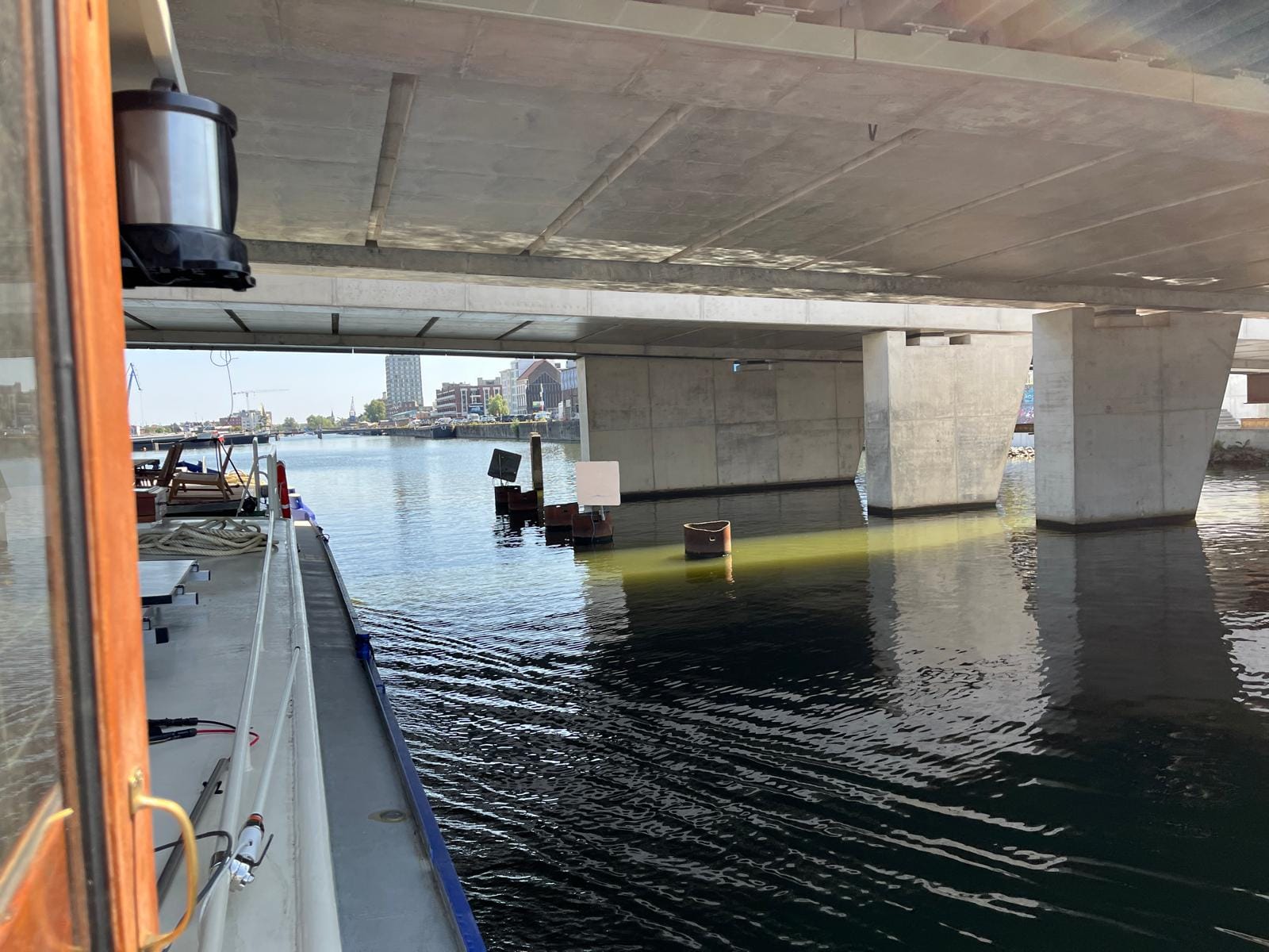 It's funny. There's always a lot of stress and worry about what could go wrong, but in the end, it went well. The railway bridge opened when we called them. The Gent radio control answered when we hailed. The one other bridge that needed to be lifted was. The nasty right-angle corner in Daamport, where we hit the wall last time, was much easier now that we knew what we needed to do. The harbour master, Rudy, at Portus Ganda was very helpful and friendly and enjoyed a tour of Delfine.