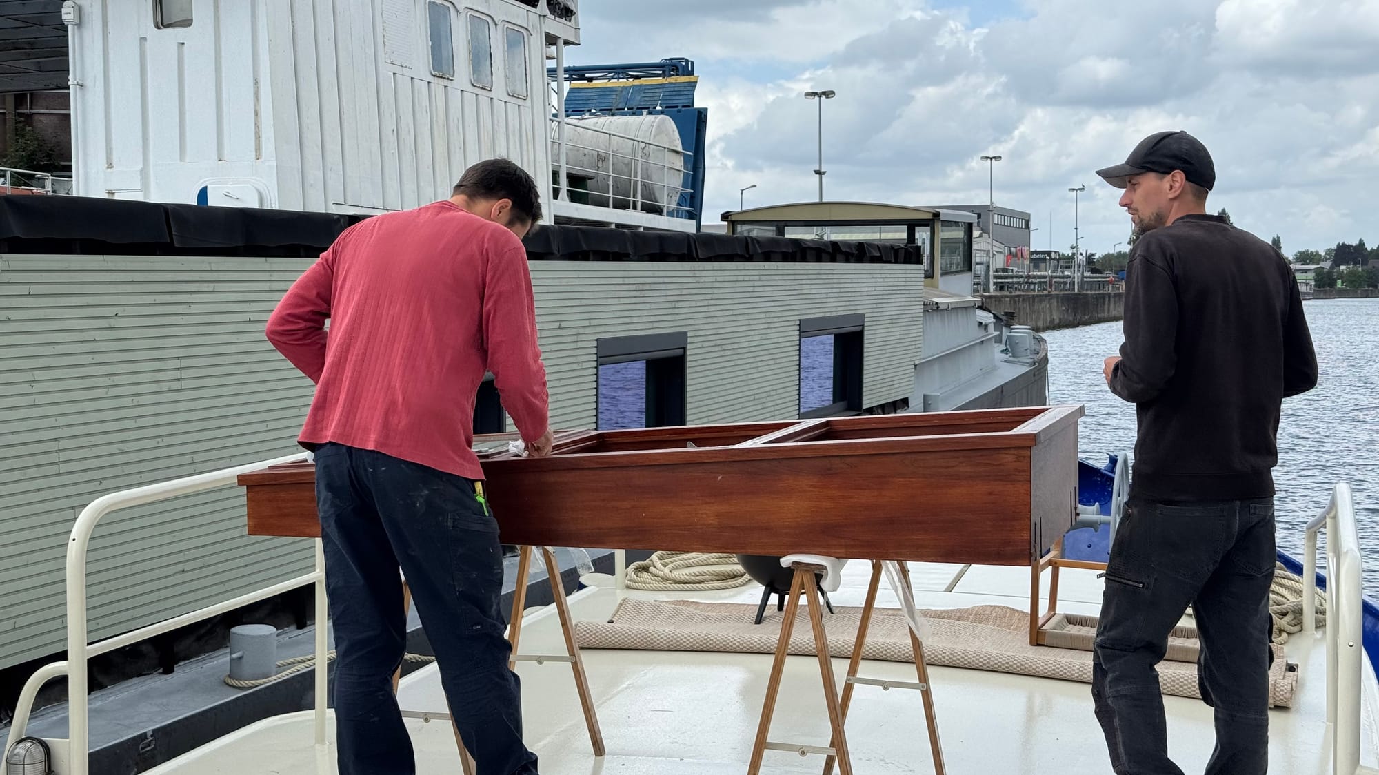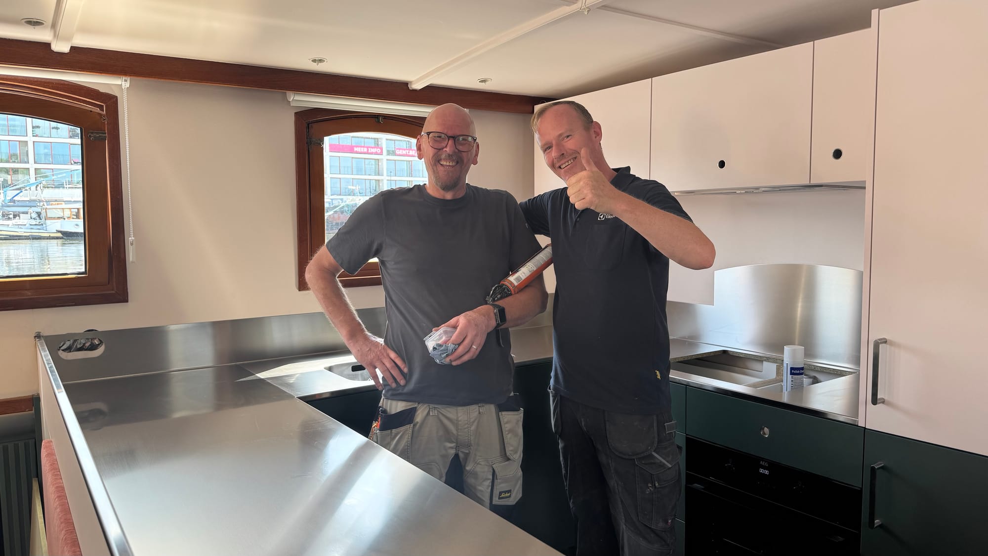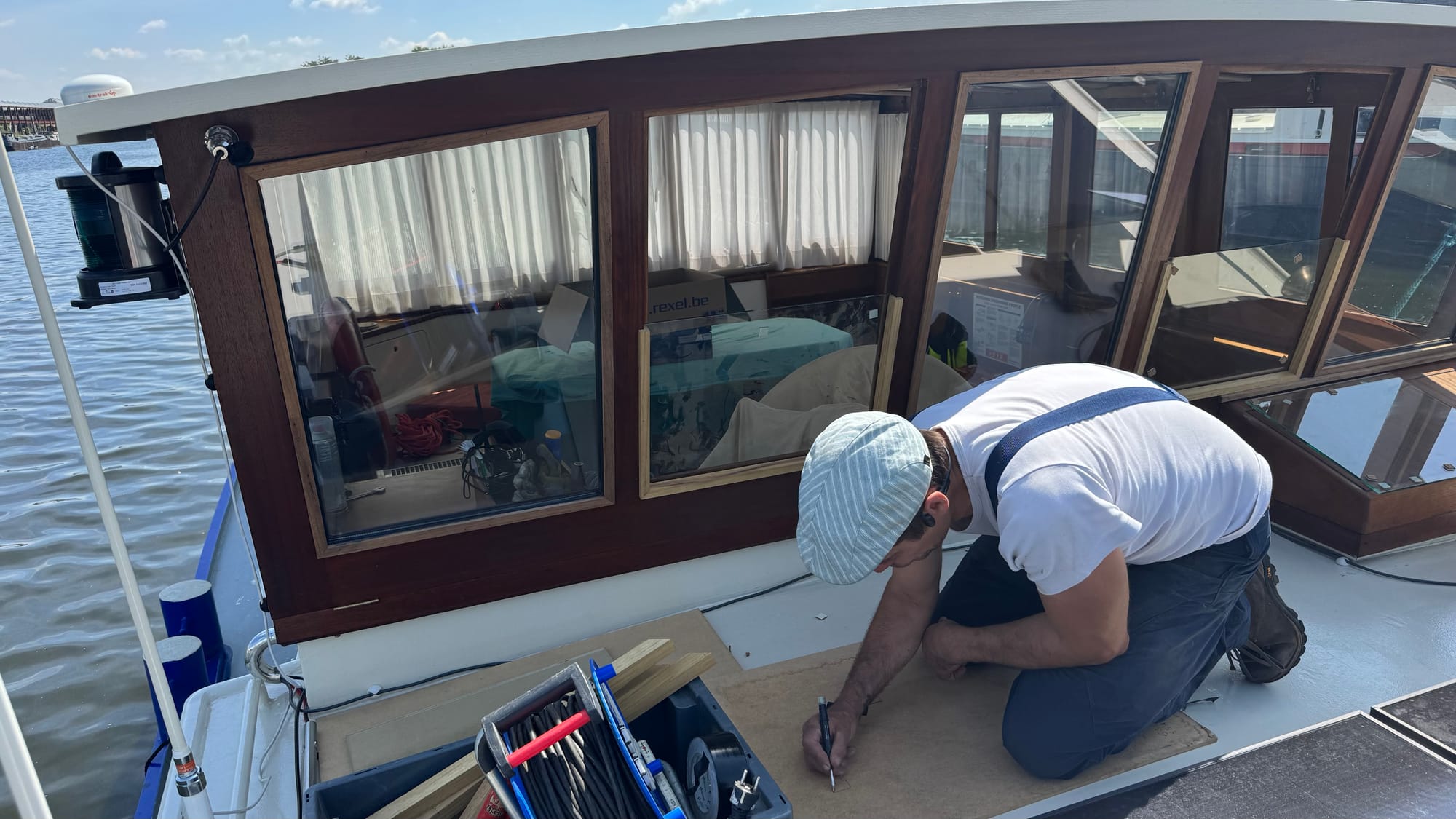 A delightful highlight of the week was on Friday afternoon when the team from Marge Architecten came to visit. Before summer break, the whole office goes "on tour" and visits all the projects they are working on—a chance for them to learn and share. We prepared numerous before photos, which we displayed around the boat. I think the most fun for Karina and me was hearing their reactions to what they were seeing – for most of them, it was their first time on Delfine. There was more than one comment about how they could see themselves on a luxury holiday on board.