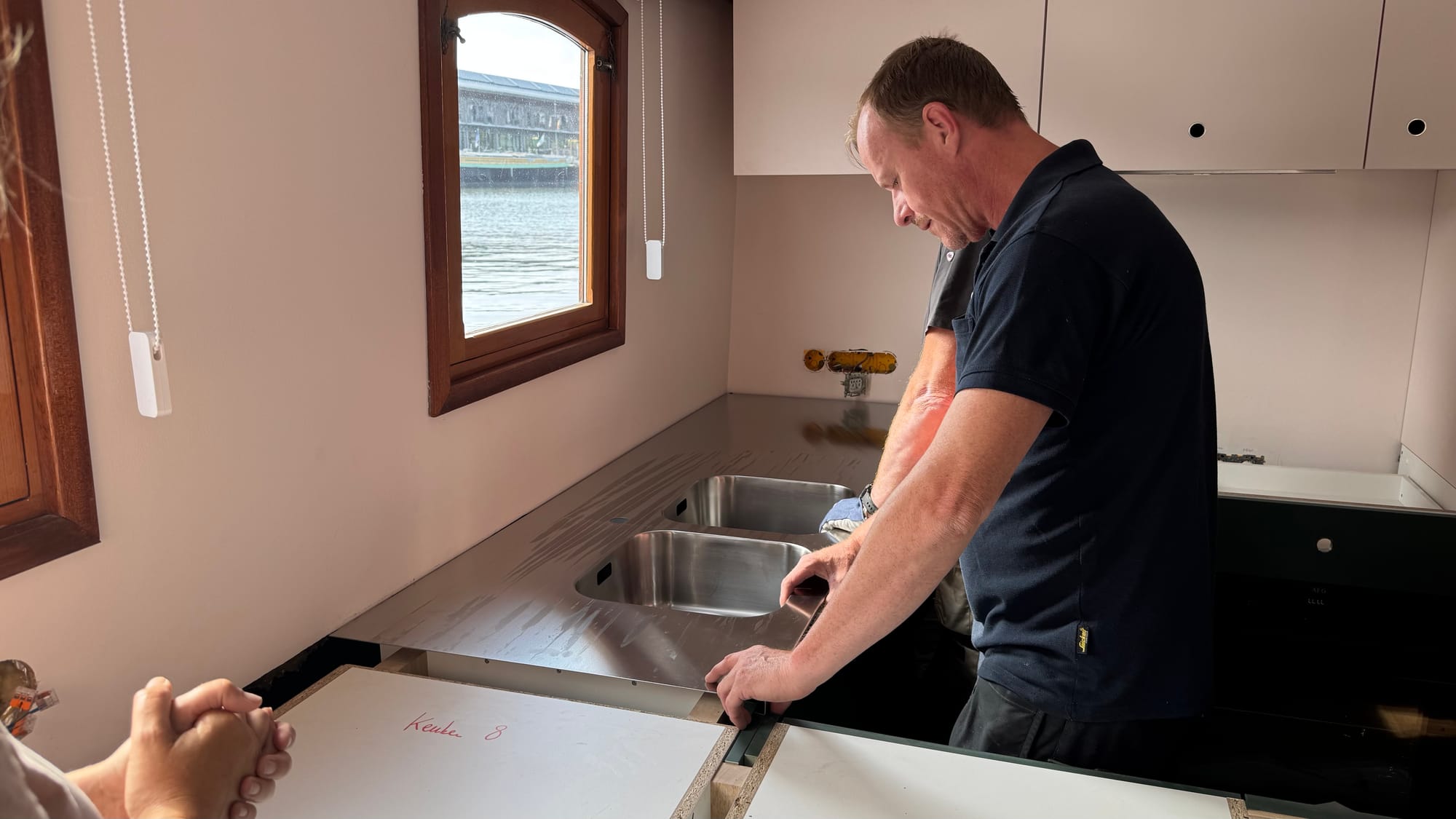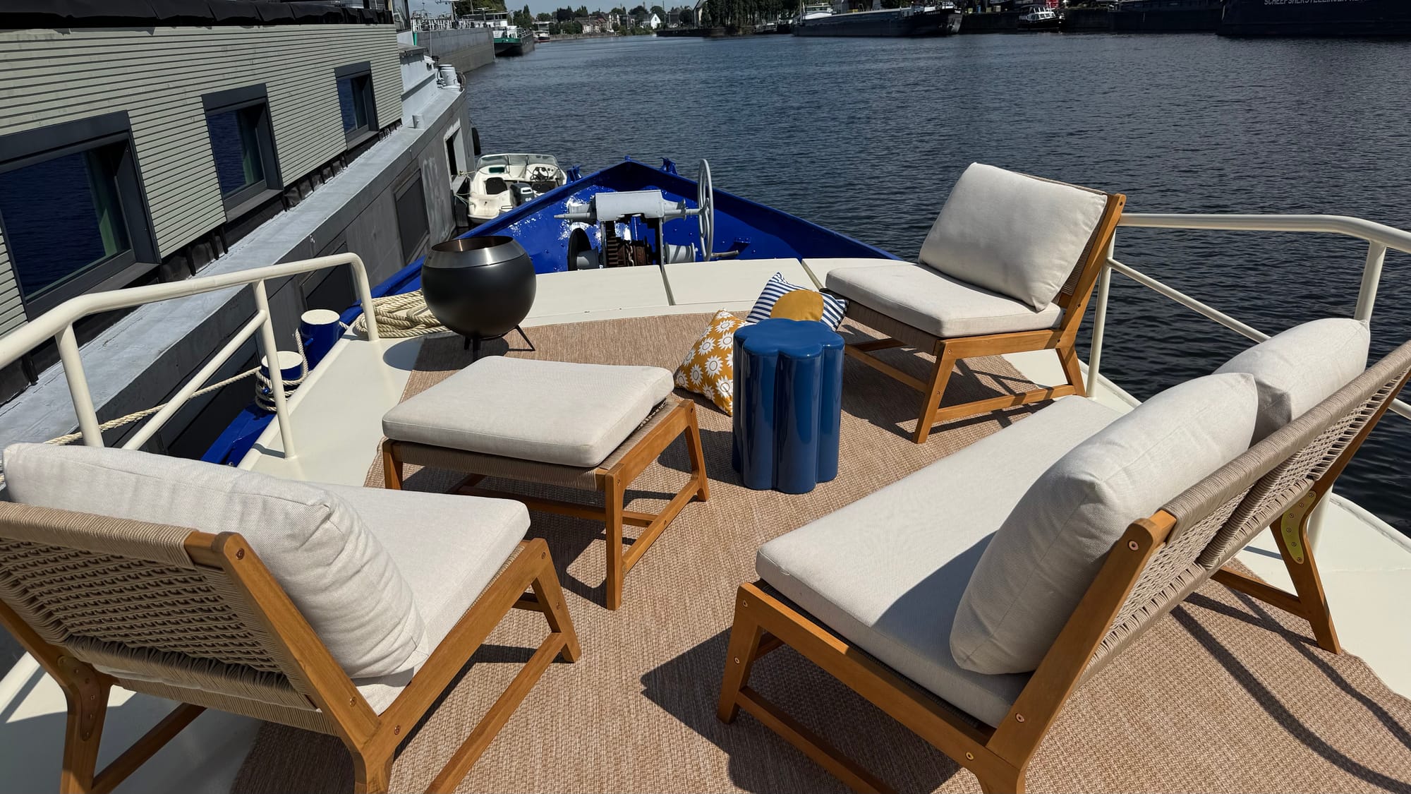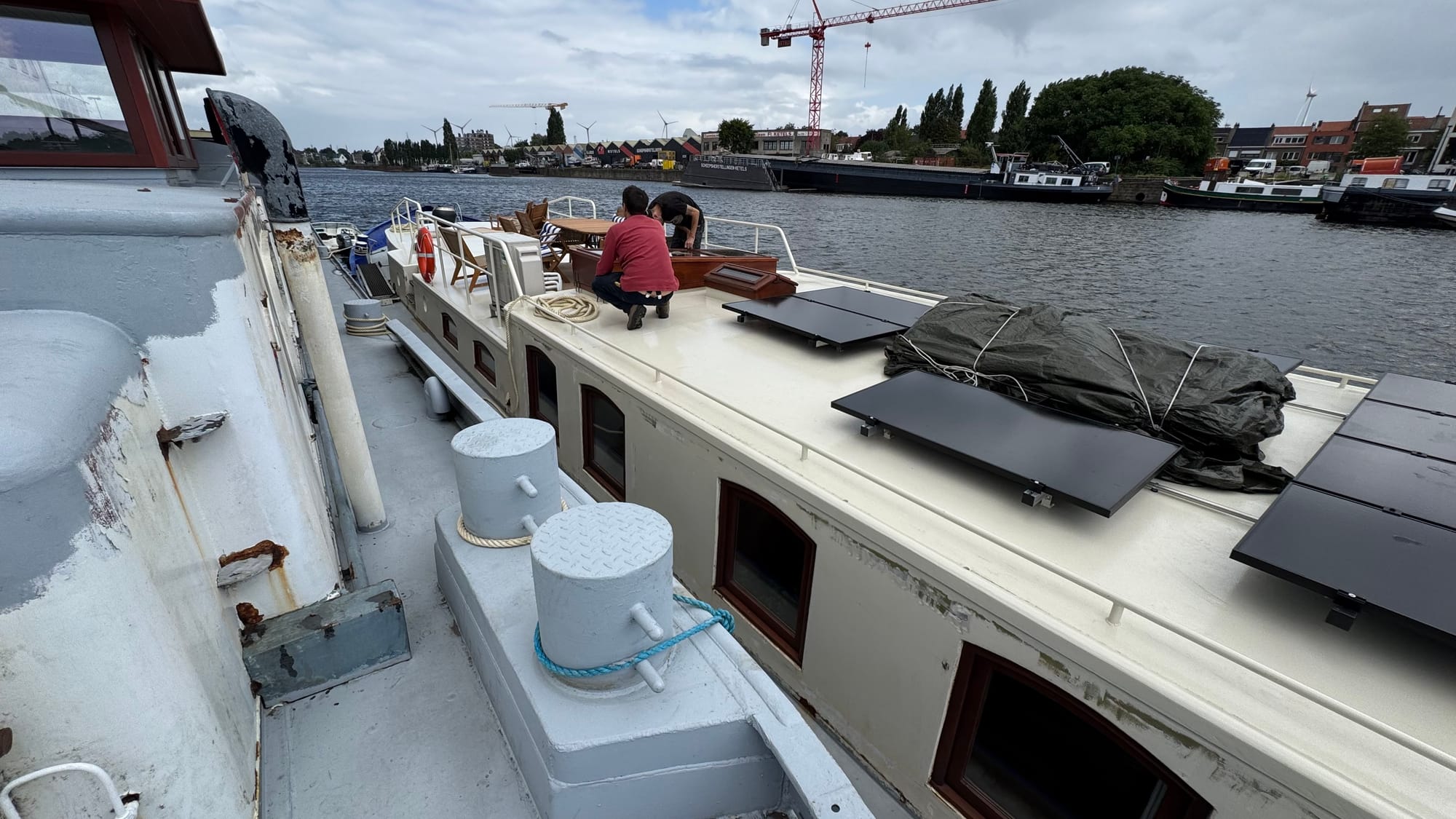 A delightful highlight of the week was on Friday afternoon when the team from Marge Architecten came to visit. Before summer break, the whole office goes "on tour" and visits all the projects they are working on—a chance for them to learn and share. We prepared numerous before photos, which we displayed around the boat. I think the most fun for Karina and me was hearing their reactions to what they were seeing – for most of them, it was their first time on Delfine. There was more than one comment about how they could see themselves on a luxury holiday on board.