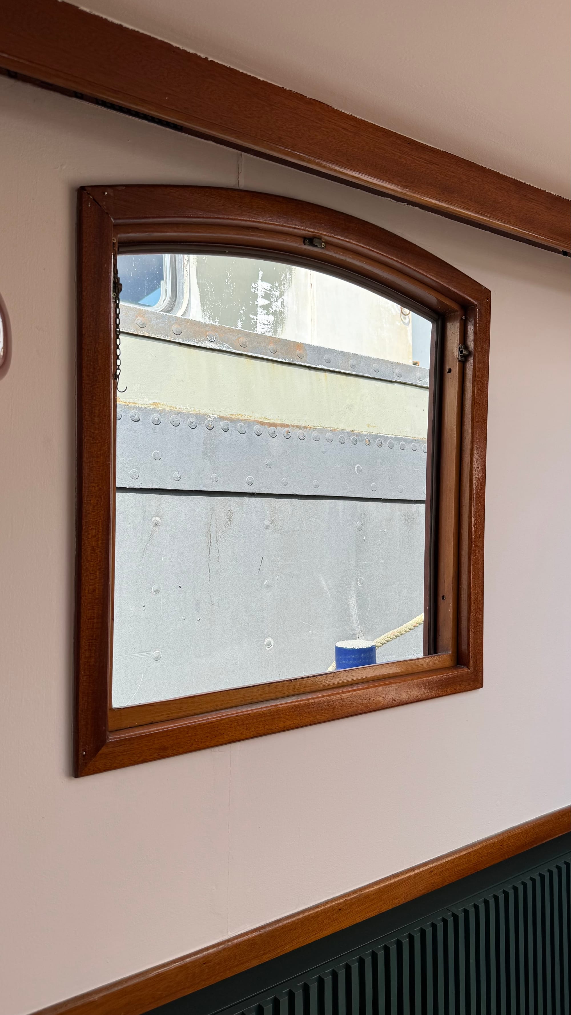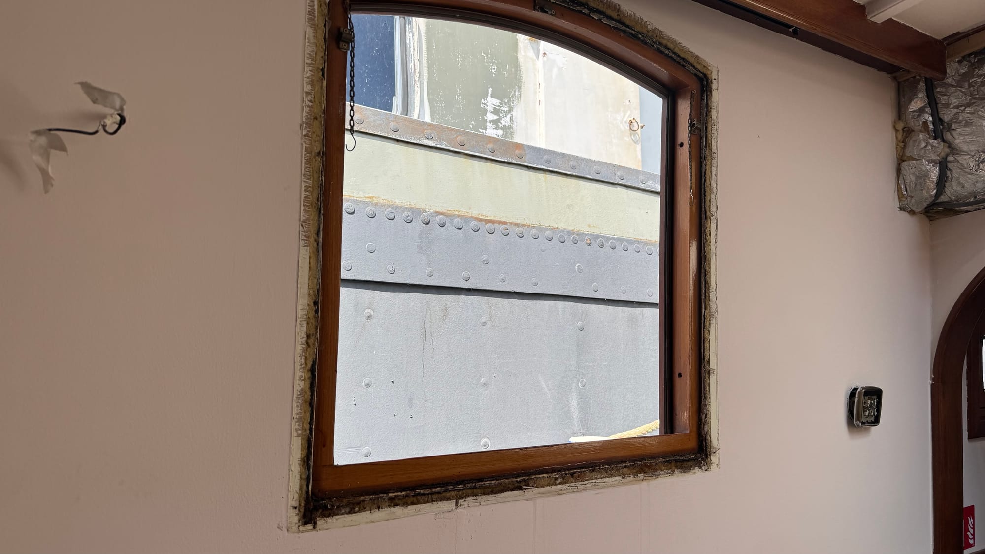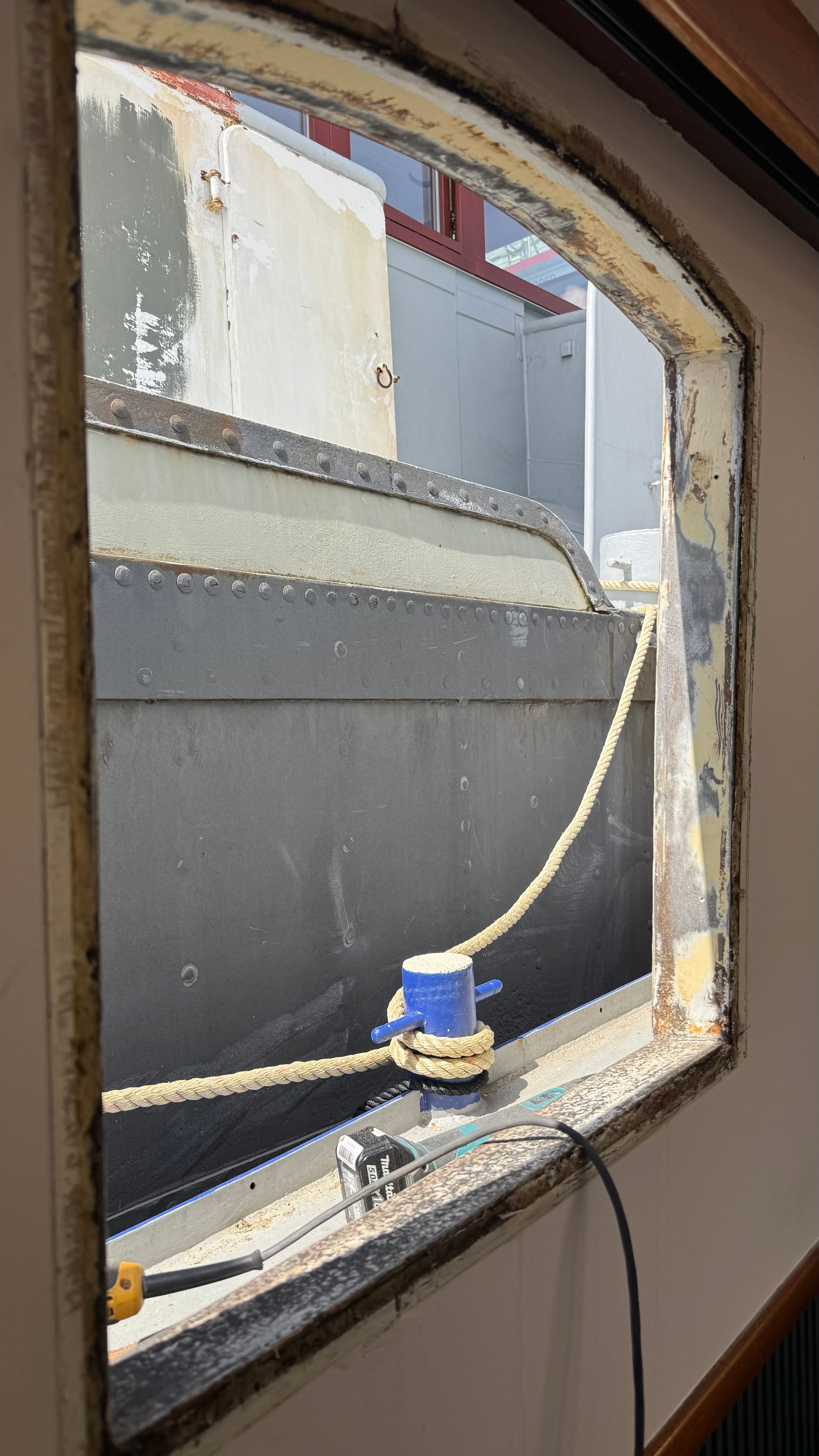 With the stair hatch now refined and improved, Simon was able to fit the last of the windows on the front of the wheelhouse on Saturday. It's wonderful to be able to look out the front again, finally!