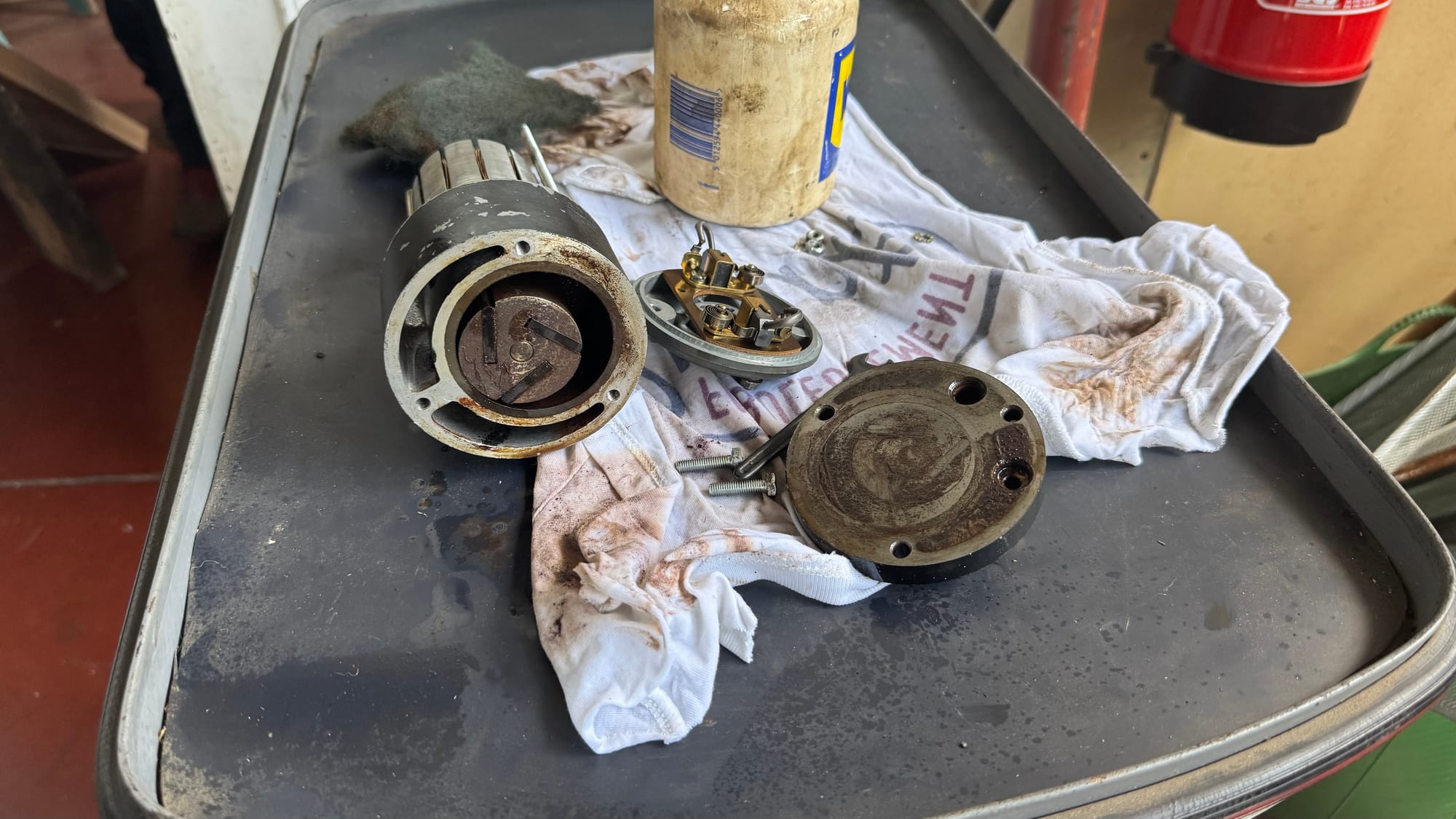 Some are just satisfying, like getting the horn going again. We have an air horn, which has a separate compressor in the engine room. Unfortunately, when I took the horn off last year (before we painted), I didn't immediately protect the end of the hose, and water got into the compressor. That water sat inside over winter and seized up the compressor vanes with rust. A new compressor cost over €1,000, but both Navimar and Martin said it should be possible to repair it.